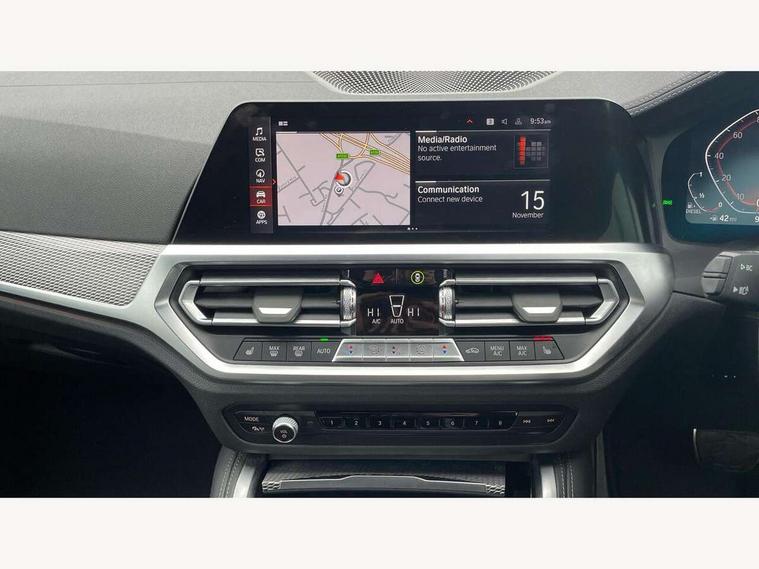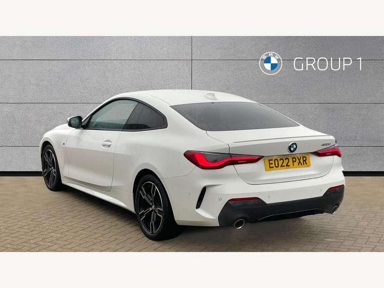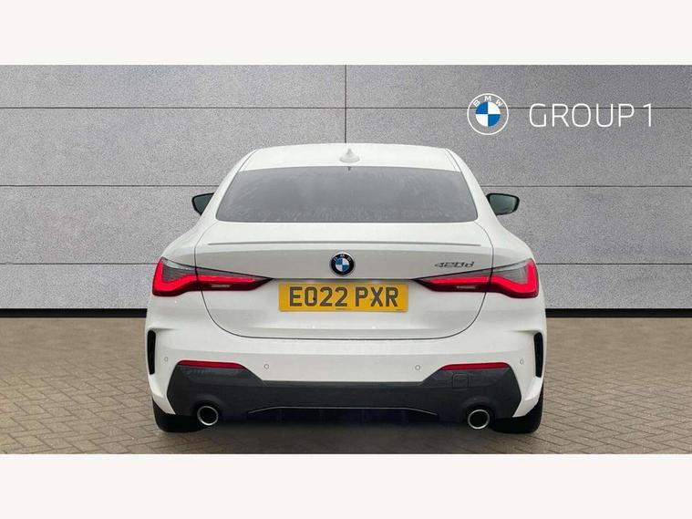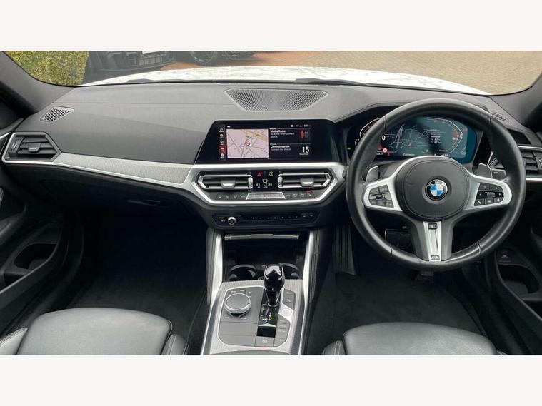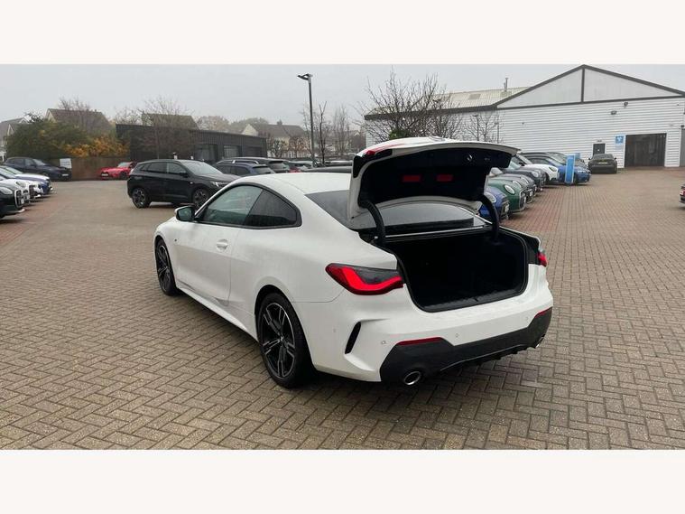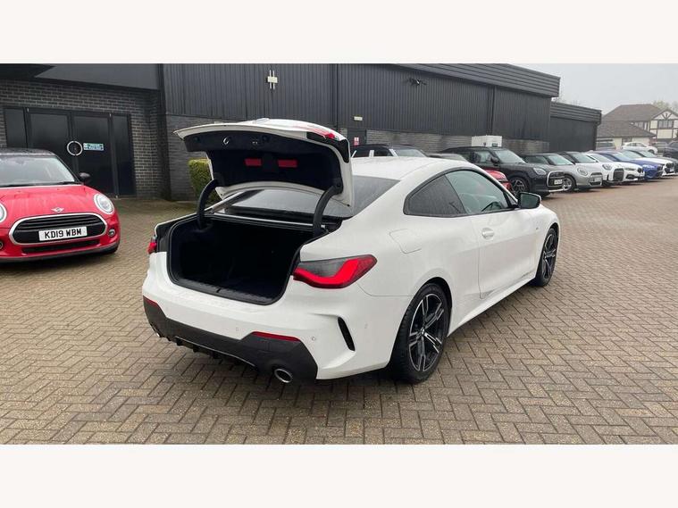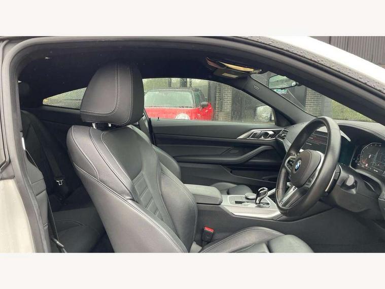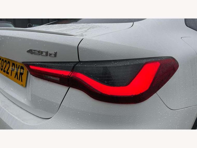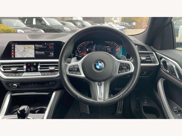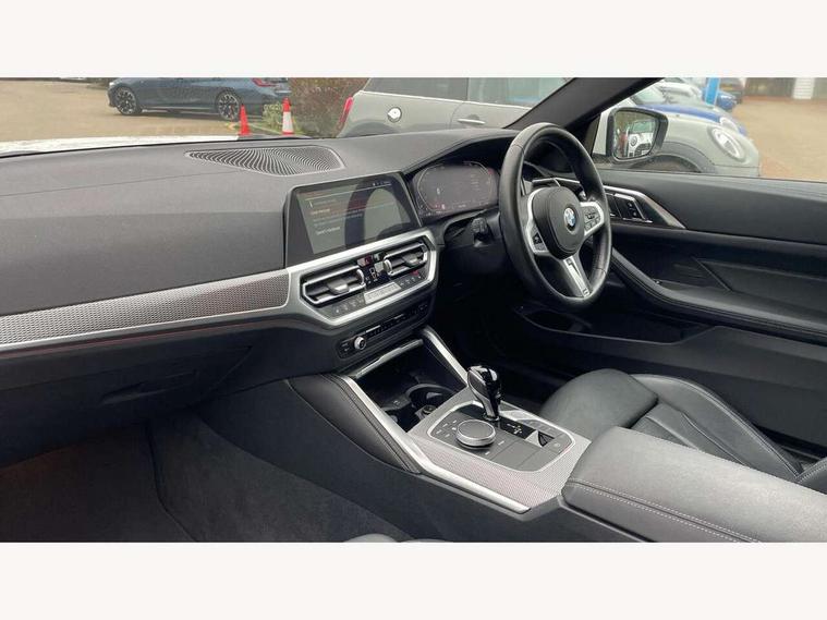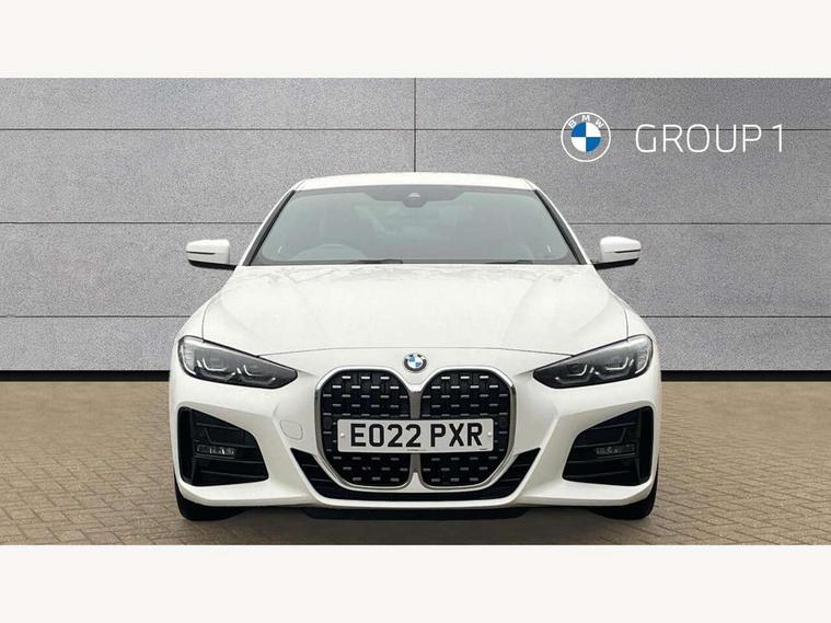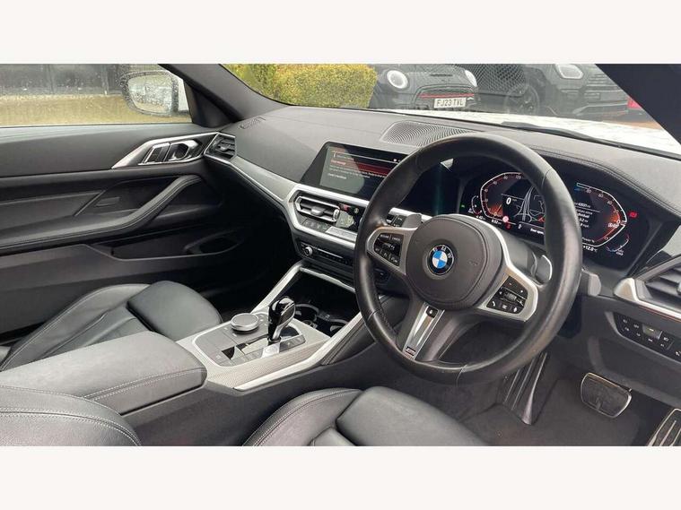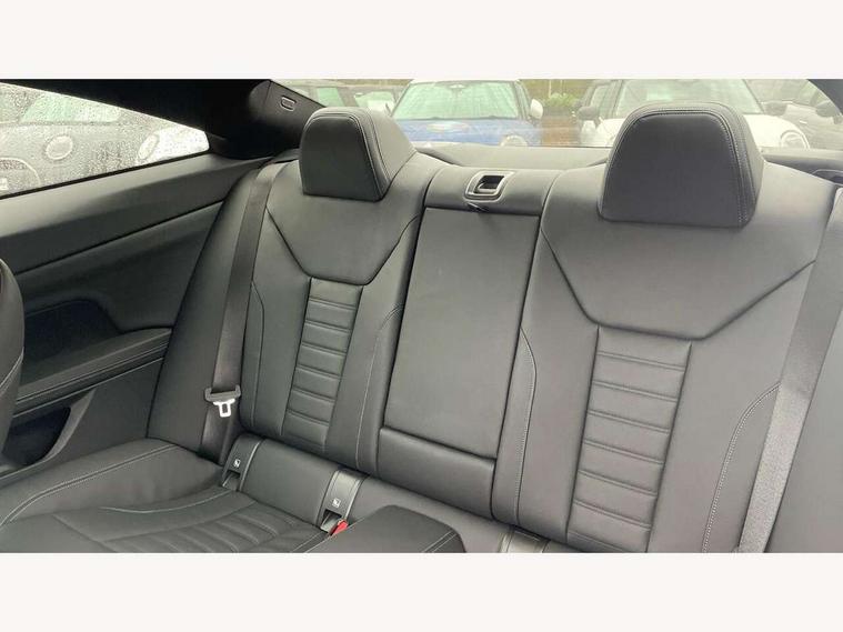 Active guard plus, Attentiveness assist, Auto start-stop, BMW ConnectedDrive online services, BMW iDrive controller on centre console, BMW Live Cockpit Professional Nav with 12.3" instrument display + 10.25" display, Intelligent Voice Assist, BMW OS 7, HDD, 2USB, 4G LTE connect, BMW service history, BMW Teleservices, Brake pad wear indicator in front and rear, Check Control warning system for monitoring of lights and door/luggage compartment open warning, Condition based service, Cruise control with brake assist, Electric power steering with Servotronic steering optimised at all speed ranges, Gearshift time display in manual mode, Instrument cluster with speedometer with mph readout, tachometer, fuel gauge and oil temperature gauge, Integrated owners handbook, Oil sensor for level and grade, warning by check control system, On board computer - average speed, fuel consumption, outside temp display with acoustic warning, clock/date, service interval, odometer/trip meter, Optimum shift indicator, Touch control functionality for BMW Live Cockpit Professional Nav, Variable sport steering, 48V Mild hybrid technology, 8 speed automatic steptronic transmission with gearshift paddles, Balanced 50/50 weight distribution, Diesel particulate filter, Drive performance control - ECO PRO, comfort and sport modes, Incorrect fuelling protection, Low centre of gravity, M sport suspension, Stroke dependent dampers, DAB tuner, Electronic service booklet, 3rd brake light, Acoustic glazing, Automatic headlight beam throw control with load dependent regulating reaction, dynamic compensation of braking dive and acceleration squat, Automatic windscreen wipers and automatic headlight, Automatically dimming electrochromatic rear view mirror, BMW emblem on engine compartment lid and tailgate, BMW kidney grille with mesh grille front side of the nuggets in matt aluminium and frame in chrome high gloss, Body colour fuel filler flap, Body colour M sport rear spoiler, Body colour roof fin, Brushed aluminium inserts in the front door sill finishers with BMW designation, Dynamic brake lights, Electric windows - front and rear, with open/close fingertip control, anti trap facility and comfort closing function all round, Exhaust tailpipe - split left and right, Exterior mirrors - electrically folding with anti-dazzle, Fading support, Front and rear bumper system, Front apron plastic in body colour, Green tinted heat protection glazing, High gloss shadow line exterior trim, Illuminated bow type door handles in body colour drivers side with door lock, Interior rear view electrochromatic mirror with automatic anti dazzle function, LED daytime running lights, LED front fog lights, Licence plate panel integrated into front bumper and tailgate, Lightweight engineering, M designation on front side panels, left and right, Model designation on right side of tailgate, One piece front bumper cover including towing eye cover in body colour, Preparation for high beam assistant, Rear boot, Side frame decorative moulding black matt, Two part LED tailights in L-shape with components in smoked glass, brake light, LED turn indicator and rear fog light, Visible VIN plate, Welcome lights in interior and door handle area, Widened track and increased camber values for max transverse dynamics, agility and steering precision, Window recess cover black high gloss, Windscreen wipers with integrated heated washing jets, 12V power socket in front centre console, 2 front cupholder in centre console with clamping elements and matt black inlay, 2 Rear seat headrests, 2 seat bench in second row, 3 spoke M sport leather multifunction steering wheel, 3 zone automatic air conditioning, 4 pieces lashing eyelets in luggage compartment, 40:20:40 split folding rear seat and rear centre armrest with two cupholders, Ambient lighting with welcome carpet light, Anthracite headlining, Armrest integrated in front and rear door trim + front centre console armrest, Four grab handles integrated in roof lining, Front and rear door exit lighting (left / right), Front and rear door pockets, Front and rear footwell lights, Front and rear reading lights, Front headrests, Front passenger seat, Front seat backrest width adjustment, Front sport seats, Heated driver and front passenger seats, Height adjustable mechanically and infinitely variable steering column, Illuminated armrest storage compartment, Illuminated glove compartment with separate small compartment, Luggage compartment light, Make-up mirror lights, Storage compartment in rear centre console, Sunvisors with vanity mirrors and ticket pocket, Toolkit located in luggage compartment, USB type - C cable charging function in the rear centre console, Velour front floor mats, Vernasca leather upholstery, Connected professional package - 4 Series, M sport exterior styling pack - 4 Series, Park assist pack - 4 Series, 2 x 3-point rear seatbelts, Battery safety cut-off, BMW emergency call, Brake energy regeneration, Braking pre-tensioning, Child seat ISOFIX attachment for the two outer rear seats, Coasting in idle in ECO PRO mode, Cornering brake control (CBC), Crash sensor activating of airbags, Unlocking doors, hazard warning lights, interior light, safety battery terminal, Driver and front passenger side airbags, integrated in the door side seat backrest bolsters for all seat variants, Driver/Front Passenger airbags, Dry braking, Dynamic brake control, Dynamic stability control + (DSC+) - Anti-lock Braking System (ABS) with brake assist and cornering brake control + Automatic Stability Control (ASC), Dynamic Traction Control - DTC, Electric parking brake including automatic hold function and automatic release of the parking brake when driving off, Electronic differential lock control (EDLC), Front and rear ventilated brake disc, Front passenger manual airbag deactivation, Head airbags for all 4 outer seats, Hill start assistant, Seat belt security check for driver and front passenger, Seat belt with belt stopper, pyrotech