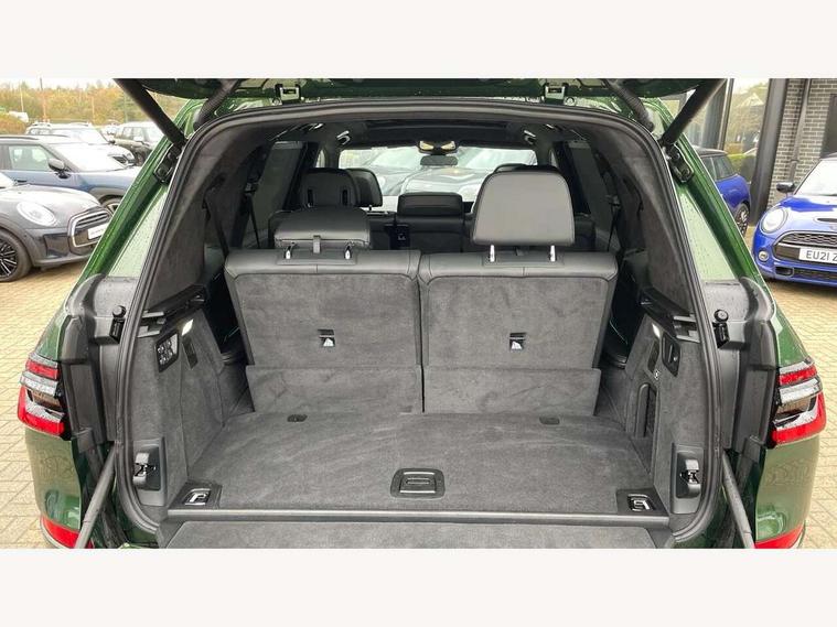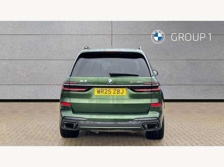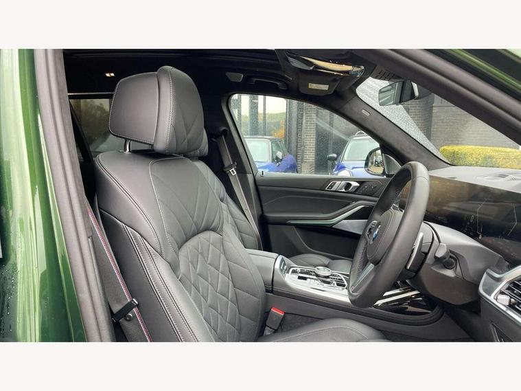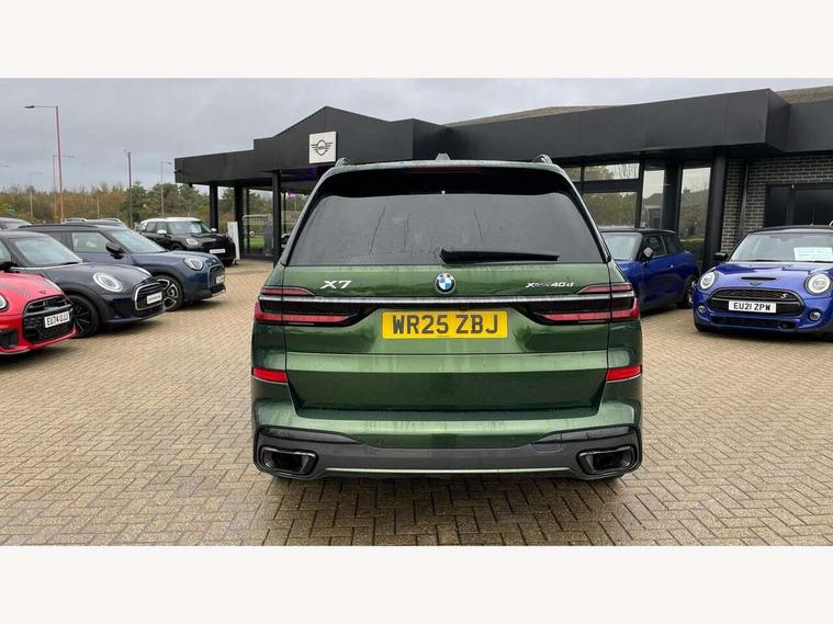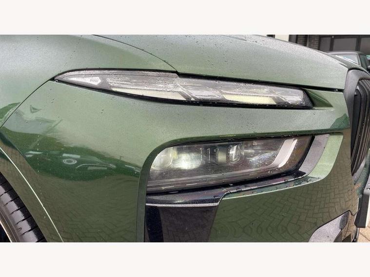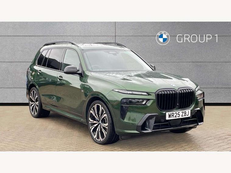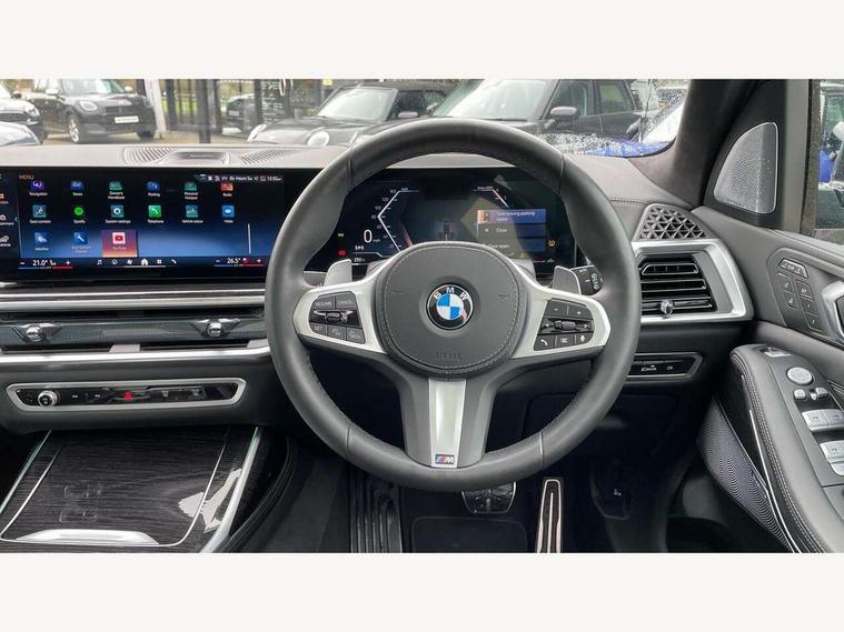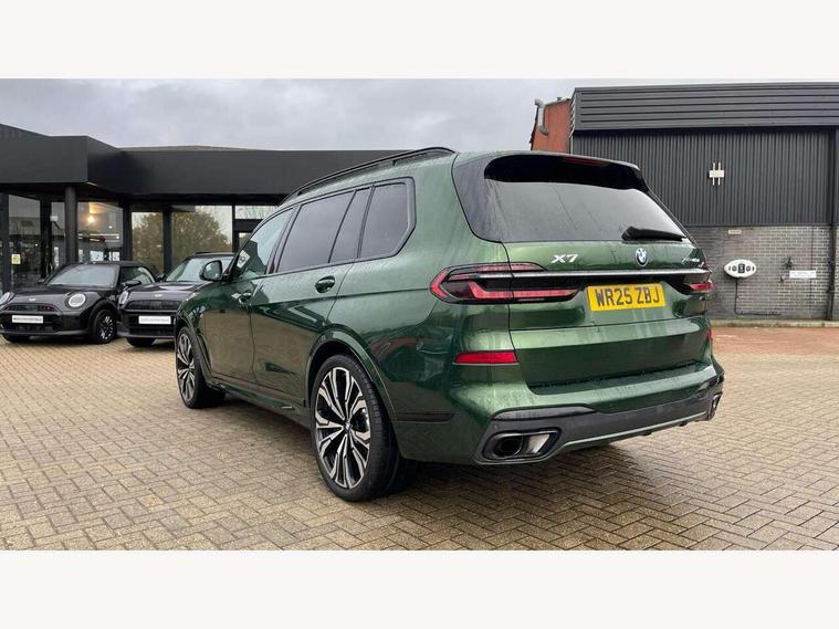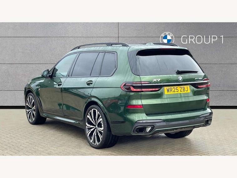 2 rear USB-C ports, Attentiveness assist, Automatic start/stop function, Automatic tailgate operation, BMW ConnectedDrive online services, BMW Drive recorder, BMW gesture control, BMW Teleservices, Brake pad wear indicator in front and rear, Condition based service, Integrated owner's handbook, Live Cockpit Professional with head up display including 12.3" instrument cluster and 14.9" central display, Parking assistant pro including reversing assistant, PDC, lateral parking aid, reversing assist camera, parking drive off monitoring, 48V Mild hybrid technology, 8 speed automatic with steptronic transmission including automatic hold function and gearshift paddles on the steering wheel, Drive experience switch with comfort mode + ECO PRO + sport mode, Permanent all wheel drive, 2x Front USB (1x USB-C, 1x USB-A), DAB radio, Personal eSim, Acoustic glazing, Adaptive air flap control bars in high gloss black, Air breather and door claddings in high gloss chrome, Body coloured wheel arches, Dynamic brake lights with LED technology, Electrically adjustable and heated aspheric folding side mirrors with auto dimming, electric fold in function, automatic parking function, Exterior and central air inlets in front bumper painted pearl chrome, Follow me home headlight function, Frameless interior mirror, Front and rear electric windows, Heated windscreen washer nozzles, High beam assist, High gloss black shadow line roof rails, High gloss black shadowline trim in side/window frame, window recess cover, window guide, B and C pillar, mirror triangle, mirror base, mirror frame, Integrated turn indicators, LED daytime running lights, LED rear lights, LED third brake light in rear spoiler, Rain sensor with automatic headlight activation and windscreen wiper control, Rear side wing doors, Sump guard front and rear painted in silver, Trailer stabilisation logic, 12V - Power sockets with 2x centre console and 1x luggage compartment, 2 seat bench in 3rd row, 2x cupholders in front, rear centre armrest and two in third row seats, 3 seat bench in 2nd row, 3 spoke M leather multifunction steering wheel, 40:20:40 split folding rear seat backrests, Ambient lighting strip in the instrument panel with illuminated, Armrest in front centre console, Compartment in front of cupholder, Driver and front passenger sunvisors with illuminated vanity mirrors and ticket holder, Electrical steering column with adjustable height and length with activation and control on the steering column, Entry sills with illuminated M inscription, Fold down flush into floor of luggage compartment 50:50, Front and rear colour co-ordinated with all standard carpet colours, Front and rear door pockets, Front and rear side armrests integrated into door trim, Front seat back pockets, Grab handles, Height adjustable front headrests, Height adjustable rear headrests, Lockable glove compartment, Nano filter, Single front passenger seat, Soft close doors, Storage tray and compartment with lid in centre console, Wireless charging tray, Additional storage compartment pack - X7, Ambient light interior pack - X7, Connected Package Professional - X7, Interior lighting pack - X7, Luggage compartment pack - X7, M aerodynamics pack - X7, M Sport pack - X7, 3 point seatbelts on all seats, front pyrotechnic belt tensioners, stopper and belt force limiters, front and outer rear seats, Acoustic protection for pedestrians, Active protection, Airbag - Front driver and passenger, side airbags and Head airbags, Anti lock braking system (ABS) with cornering brake control, Automatic Stability Control (ASC), BMW emergency call, Child seat ISOFIX attachment rear outer seats in 2nd row and both seats in 3rd row includes top tether, Comfort access system with digital key, Comfort cushion seats for outer seats in 2nd row, Crash sensor inclu activation of airbags, interior light, safety battery terminal clamp, hazard warn flasher, unlock doors, deactivation of fuel pump, DSC - Dynamic Stability Control, Dynamic Traction Control - DTC, Electromechanical parking brake with automatic drive away release and auto hold function, Front and rear brake discs with interior ventilation, Hill descent control, Integrated braking system, Manual child lock in rear doors, PC iBrake PostCrash approach control warning with light braking function, Tyre pressure monitoring system, Tyre pressure sensors, Variable torque distribution, Warning triangle and first aid kit, Alarm, Central locking including 2 vehicle keys with integrated emergency key, Engine immobiliser, Locking wheel bolts, Galvanic embellisher for controls,
