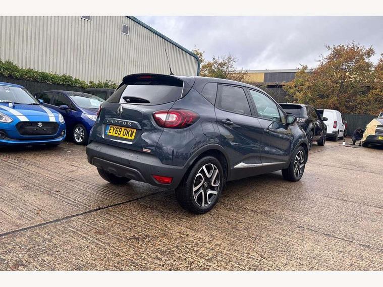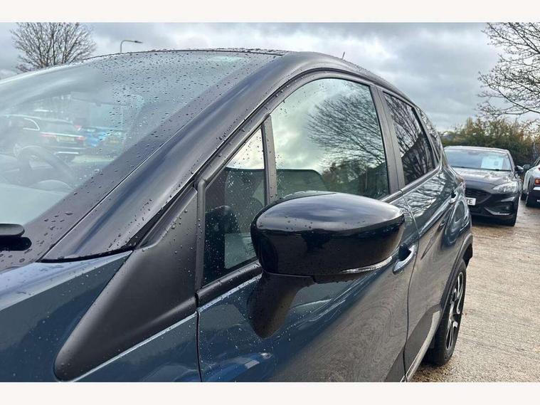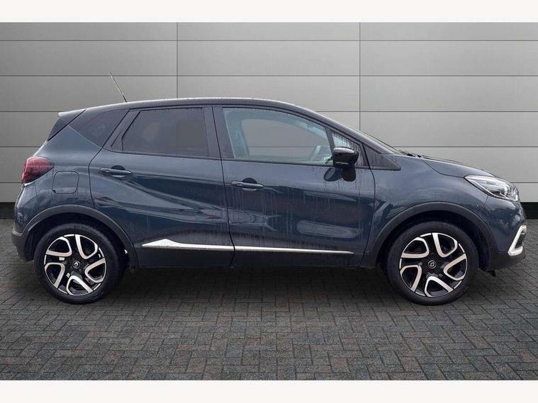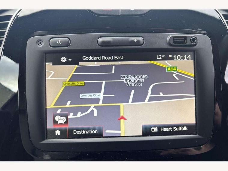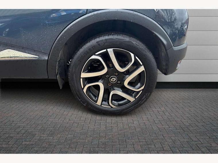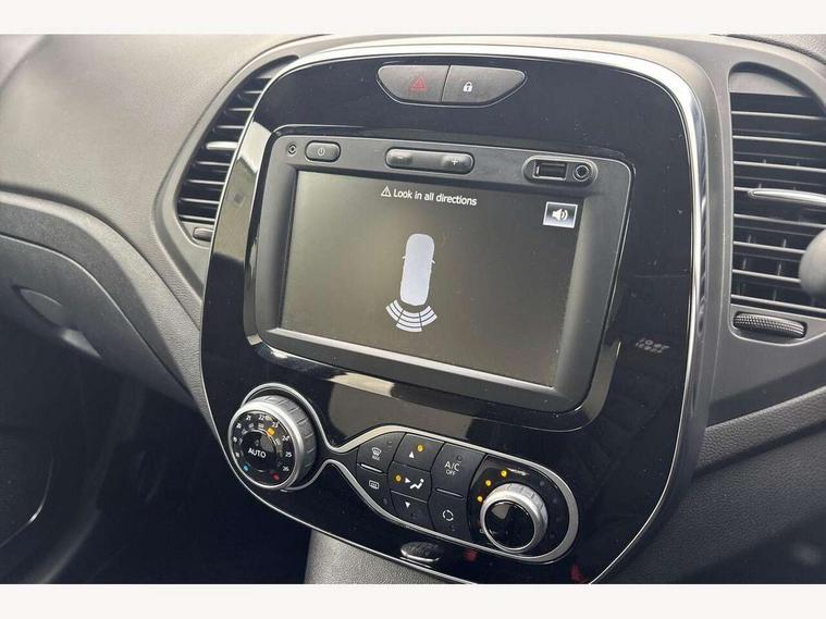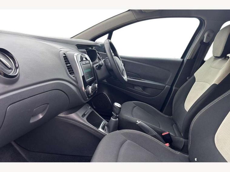 Cruise control + speed limiter, Eco mode, Rear parking sensor, Renault MediaNav with 7" touch screen and Navteq Nav 'n' Go Satellite Navigation, Smartphone cradle, Trip computer, Variable PAS, 4x20W radio with bluetooth hands free and USB, Auxiliary input socket, DAB Digital radio, Fingertip controls for audio system, Body colour door handles, Body coloured bumpers, Electric adjustable heated door mirrors, Electric front windows + one touch + anti-pinch, Electric rear windows, Extra tinted glass in rear windows and tailgate, Front skid plate, LED daytime running lights, LED front fog lights, Rain sensitive wipers + automatic lighting, Rear skid plate, Rear wiper, Variable intermittent front wash/wipe, 12V Accessory socket, 3 rear headrests, 60/40 split folding rear seat bench, Automatic climate control with one touch demist function, Centre console storage tray, Compartment in glovebox, Dark harmony dashboard and door panels, Fixed cloth upholstery, Front cupholder, Front seat backrest storage nets, Heating system with pollen filter, Height adjustable driver's seat, Height adjustable front headrests, Height/reach adjust steering wheel, ISOFIX on front passenger and rear outer seats, Leather steering wheel and gear knob, Removable storage between driver and passenger, Reversible boot floor, Storage area on top of dashboard, Storage compartments in doors, Storage space near handbrake, Variable boot floor, Exterior touch pack Chrome - Captur, Interior touch pack Chrome - Captur, 3 point seatbelts on all rear seats, ABS+EBA, Driver/Front Passenger airbags, ESC - Electronic Stability Control + traction control, Front passenger airbag deactivation, Front side airbags(head+thorax), Hill start assist, Rear door child safety locks, Seatbelt warning, Tyre pressure monitor, Automatic door locking, Deadlocking system, Hands free access with keycard and start button, RAID (Renault Anti-Intruder Device) with automatic door locking, Remote central locking, Thatcham Cat 2 engine immobiliser, 17" Explore alloy wheels with black inserts,