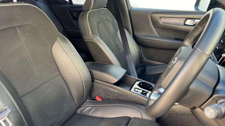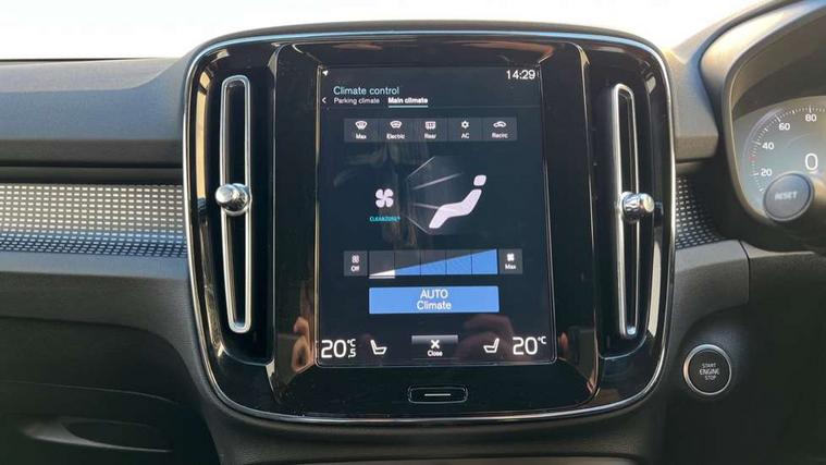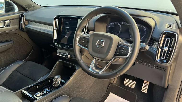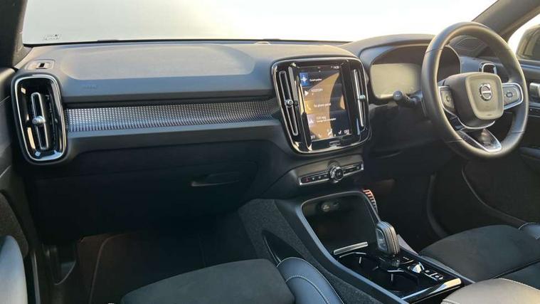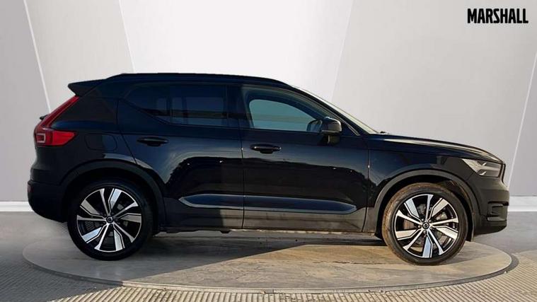 12.3" Active TFT crystal driver's instrument display, 9" centre console portrait touch screen, Adjustable steering wheel force, Bluetooth hands free telephone kit, Drive mode selector, E-call, Lane keep assist with driver alert control, Oncoming Lane Mitigation, Power operated tailgate, Sensus navigation with European mapping and traffic information, Speed limiter, Speed sensitive steering, Voice activated control for key functions, Volvo on call, 7m 10amp charge cable with 3 pin plug and 7m 1 phase 16amp type 2/mode 3 charge cable, Electric front axle drive, Recharging port located in nearside front wing, Sports chassis, DAB Digital radio, Low speed exterior sound speaker, Steering wheel mounted remote controls, Adaptive brake lights with high level LED brake lights, Auto dimming interior mirror, Automatic headlamp levelling, Automatic LED Headlights + Active high beam incorporating daytime running lights, Dark tinted windows for rear door side windows and cargo compartment, Electric adjustable/heated/auto folding door mirrors, Front aluminium tread plates, Front and rear electric windows, Heated front windscreen, High gloss black front and rear skid plate, High gloss black lower front bumper, High gloss black mesh front grille with high gloss black surround, High gloss black sensus surround deco, High gloss black window trim, Home safe and approach lighting, Integrated roof rails in high gloss black, Rain sensor with automatic windscreen wiper activation, Rear side wing doors, Rear wiper, Roof antenna, Roof spoiler, Visible VIN plate, 12V socket in front tunnel console and luggage compartment, 2 zone electronic climate control and rear air vent, 3 seat bench in 2nd row, 60/40 versatile split folding rear seat, A-pillar parking ticket holder, Bright metal luggage threshold, Centre console cupholders and storage, Charcoal headlining, Front footwell illumination, Front headrests, Front reading light and theatre lighting, Front seat cushion extensions, Glovebox bag hook, Heated front seats, Height/reach adjustable steering column, Height/tilt adjustable driver's seat, High gloss centre tunnel deco, Illuminated glovebox, Illuminated luggage compartment, Illuminated vanity mirrors, Isofix attachments on outer rear seats, Leather gearknob, Load protection net, Multi directional lumbar support, Power driver seat with memory + exterior mirrors memory, Rear armrest / integral cup holders / storage tray, Rear coat hook, Single front passenger seat, Sports floor mats, Sports pedals, Sports tailored steering wheel, Underfloor cargo storage, Vanity mirror with ticket holder, Lighting pack - XC40, 3x3 point rear seatbelts, City safety includes pedestrian, cyclist and large animal detection and front collision warning with full auto brake, Drivers knee airbag, Dual stage driver/passenger airbags, Electronic parking brake with auto hold, First aid kit, Front and outer rear seatbelt reminder and pretensioners, Front seats SIPS airbags, Hill descent control, Hill start assist, Inflatable curtain, Passenger airbag cut-off device, Road sign information display, Run off Road Mitigation, Run off Road Protection, SIPS (Side Impact Protection System), Slippery road and hazard light alert, Stability and Traction Control with Spin control, Engine Drag Control and Corner Traction Control, Tyre pressure monitoring system, Vehicle deceleration control with Anti-lock Brake System, Electronic Brake Distribution and Emergency Brake Assist, Warning triangle, WHIPS whiplash protection system - front, Anti-theft alarm including immobiliser/volume sensor + level sensor, Care key with user defined top speed, Key integrated remote control central locking + fuel flap with deadlocking system and auto open/close power windows, Locking wheel nuts, Private locking for tailgate, Cutting edge aluminium inlay, Lower dashboard, tunnel console and door panel in charcoal, 20'' 5 double spoke diamond cut/high gloss black alloy wheels,