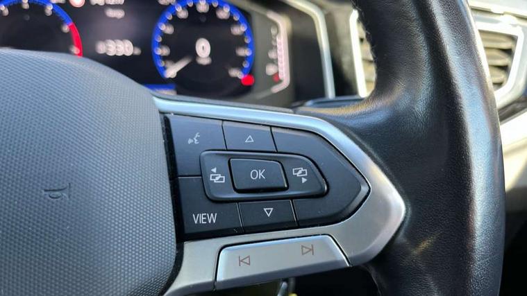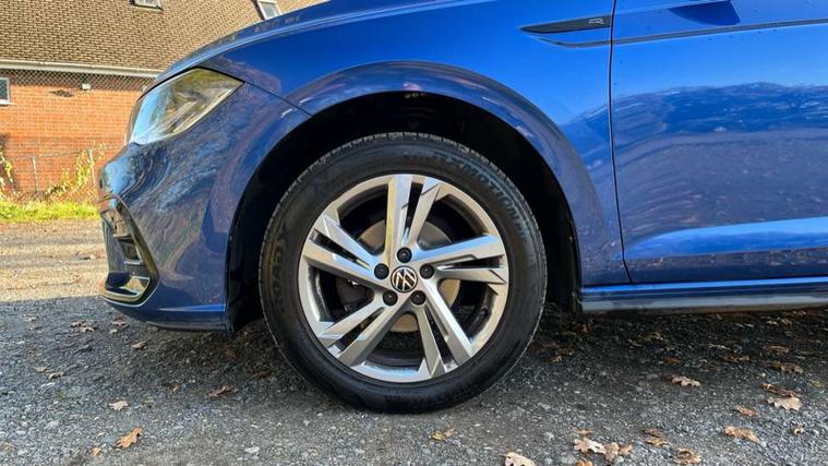 Adaptive cruise control without follow-to-stop and speed limiter, Bluetooth mobile phone interface, Digital Cockpit Pro with 10.25" Display, Driver alert system, Dynamic road sign display, Emergency call service, Power assisted speed sensitive steering, Preparation for We connect and We connect plus, Speedo and rev counter, electronic odometer, trip, service interval display and fuel gauge, Standard rear axle, Travel Assist - Lane keeping system and traffic jam assist, Travel assist including emergency assist, Trip computer, Warning signal and warning light for front and rear seatbelts not fastened, Washer fluid level indicator, Wireless app connect, Front wheel drive, Rear shock absorpion, Start-stop system with battery regeneration (recuperation - energy recovery during braking), DAB Digital radio, Diversity antenna for FM reception, Front and rear 6 speakers, Body colour bumpers, Body colour door handles, Body colour door mirrors, Electric front windows, Front scuff plates with R-Line logo, Heat insulating darkened glass in side and rear windows, Heat insulating glass windscreen, Power folding adjustable/heated exterior mirrors and front passenger exterior mirror lowering function, Rear electric windows, Rear fog light, Rear side wing doors, Rear tinted glass from B-pillar backwards approx 65% tinted, Rear windscreen washer and wiper with interval delay, Third brake light, 12V power socket in centre console, 2 USB-C ports in the front, 2 USB-C charging sockets on the center console in the rear, 3 rear head restraints, 60/40 split folding rear seat and rear seat bench not split, Air care climatronic air conditoning system with active combination filter and 2-zone temperature control, Black roof lining, Ceramique headliner, Chrome plated radiator grille inserts, air vent surrounds and light switch surrounds, Door and side trim panel, Driver and front passenger seat height adjustment, Driver/passenger sunvisors with illuminated vanity mirrors, Front + rear carpet mats, Front centre armrest, Front footwell illumination, Front seat backrest storage pockets, Front sports comfort seats, Handbrake lever handle in leather, Isofix child seat preparation easy-fit (for two outer rear seats, and front passenger seat) compatible with I-size, Karoso artvelours cloth upholstery, Leather trimmed gear knob, LED interior light with switch off delay and dimmer, 2 reading lights front and rear, Luggage compartment cover, Luggage compartment floor, Luggage compartment lighting, Lumbar adjustment for front seats, Multifunction steering wheel, Single front passenger seat, Stainless steel pedals, Standard pedal cluster, Light and sight pack - Polo R-Line/Black Edition, 3 point height adj front seatbelts + pretensioners, 3x3 point rear seatbelts, ABS, Driver and front passenger airbag with front passenger airbag deactivation, Drivers and front passengers safety optimised head restraints, ESC (Electronic stability control) + EDL (Electronic Differntial lock) and ASR (Traction control), Extended and predictive pedestrian/ cyclist protection, Front curtain and side airbags with center airbag, Hill hold control, Manual child lock in rear doors, Single tone horn, Tyre pressure loss indicator, Alarm with interior protection, Anti-theft alarm system with interior monitoring, backup horn, and towing protection, Anti-theft wheel bolts, Electronic engine immobiliser, Chrome applications on rotary light, mirror adjustment, window regulator switches, outlet with frame in black, Dark grey anodised matt decorative inserts in dash and front door panels, Low rolling resistance tyres,