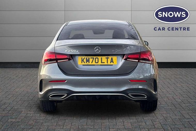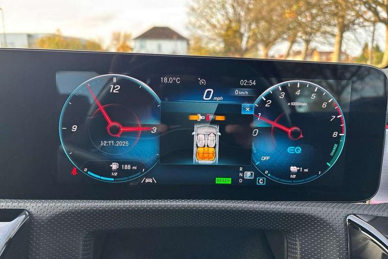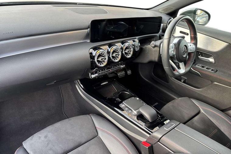 10.25" Digital instrument cluster display screen, 10.25" media display, 180 degree rear view camera with parking guidelines, Acoustic ambient protection, Active lane keep assist, Active park assist with parktronic system including front and rear parking sensors, Attention assist, Brake pad wear indicator warning light, Car wash mode, Cruise control + speed limiter, Direct steering, Dual bluetooth interfaces, DYNAMIC SELECT with a choice of driving modes (ECO, Comfort, Sport and Individual), ECO start/stop function, Fluid level warning indicator for fuel, oil, coolant and washer fluid, Hard-disk navigation, Hey Mercedes Voice activation, Lamp failure indicator, MBUX augmented reality for navigation, Mercedes me connect including emergency call system, accident recovery, breakdown and maintenance management, Outside temperature gauge, Owners manual in English, Pre-installation for private car sharing, Pre-installation for Vehicle Monitoring, Pre-installation for Vehicle Setup, Preinstallation for Mercedes Benz link, Service indicator (ASSYST), Smartphone integration with Apple CarPlay and Android auto, Speed sensitive power steering, Trip computer, Wireless charging, 7.4 kW monophase on board charger, Comfort suspension, Mode 3 charging cable 11 kW, Rear axle multi-link, 10 speakers, 2 USB ports (type C) in rear stowage compartment and one in front of center console, DAB Digital radio, MBUX multimedia system with DAB digital radio and touchpad including satellite navigation, Mercedes-Benz advanced sound system - 225W, 4 Electric Front and Rear windows, Adaptive brake lights, AMG bodystyling - Front apron with splitter in chrome, rear apron with chrome trim and chrome visible trim elements in tailpipe, Black weather strip, Body colour bumpers, Body colour door handles, Body colour side skirt, Body coloured door mirrors, Chrome beltline trim, Diamond radiator grille with chrome pins and silver louvre + chrome insert, Electric adjustable and heated door mirrors with integrated LED side indicators, EQ badging, Exhaust system - Twin visible tailpipes in polished stainless steel, Headlamp assist automatic headlamp activation, Heated glass rear windscreen + timer control, Illuminated front door sill panels with Mercedes-Benz lettering, LED high performance headlamps with integrated LED daytime running lights, LED tail lamp, LED third brake light, Privacy glass, Radio aerial, Rain sensing windscreen wipers with two sensitivity settings, Rear fog lights, Window line trim strip in chrome, 3 Spoke flat bottom leather multi function steering wheel with perforated leather in grip area, 40:20:40 split folding rear seats, Artico man-made leather/Microfibre Dinamica upholstery with red contrast stitching, Auto Mercedes-Benz child seat recognition sensor, Black air vents with surround in silver chrome, Black roof lining, Brushed stainless steel sports pedals with rubber studs, Charging socket, Controller on centre console with chrome surround, Floor mats with stitched edging and AMG lettering, Front centre armrest with storage compartment, Front seat backs luggage nets, Front seat cushion length adjustment, Front sports seats with adjustable head restraints, Galvanished gear shift paddles on steering wheel, Heated front seats, Height/reach adjustable steering column, Interior lighting - 64 colour Ambient lighting, Interior mirror with reading lamps in black and frameless, Manual height adjustable front seats, Pre-entry climate control, Rear armrest with 2 cupholders, Rear head restraints, Seat occupancy sensor for front passenger seat, Stowage compartment in centre console with retractable cover, Sunvisors with illuminated vanity mirrors, Touchpad on center console, Twin front cupholders, Two zone thermotronic luxury automatic climate control, Light and sight pack - A Class, Mirror package - A Class, Seat comfort pack - A Class, 3 rear 3 point seatbelts, ABS with Brake Assist, Active bonnet, Active brake assist includes forward collision warning system with autonomous braking, Adaptive brake assist with hold function and hill start assist, Black seatbelts, Childproof locks manually operated for rear doors and electrically operated for rear power windows, Crash responsive emergency lighting, Driver and passenger head and side airbags, Drivers knee airbag, Dual stage driver/passenger airbags, Electronic parking brake, ESP curve dynamic assist, ESP with ASR, Front and rear seatbelt reminder, Front brake callipers with Mercedes Benz lettering, ISOFIX and top tether child seat fixing points in two outer rear seats, Perforated front brake discs, Radar based regeneration, Tyre pressure monitoring system, Warning triangle and first aid kit, Window airbags, Alarm system/interior protection/immobiliser, Keyless entry lock/unlock, Keyless Go, Remote central locking and crash sensor with emergency opening function, Urban guard vehicle protection system with immobiliser and interior protection, Light aluminium with longitudinal grain interior trim, 18" AMG 5 twin spoke light alloy wheels in titanium grey with highsheen finish, Summer tyres, Tirefit sealant kit,