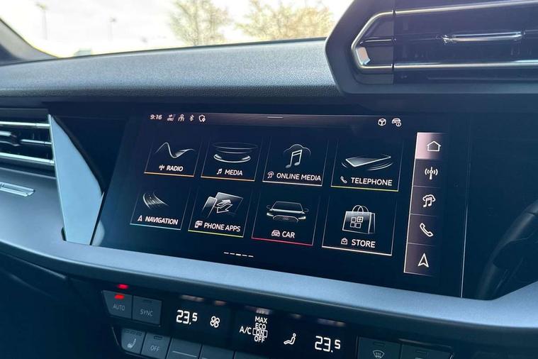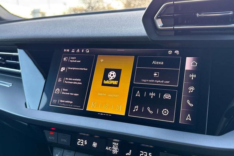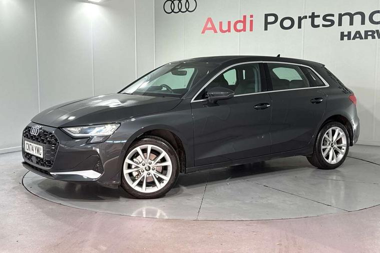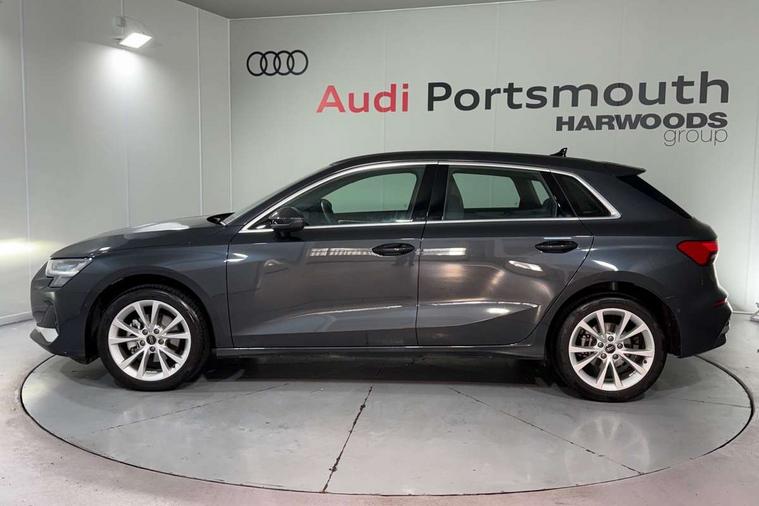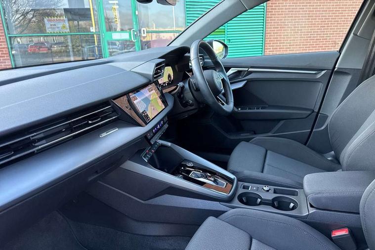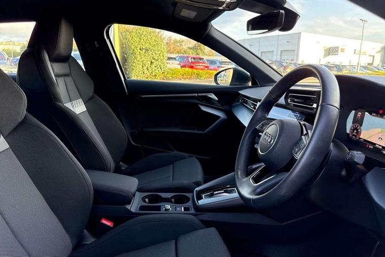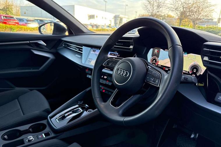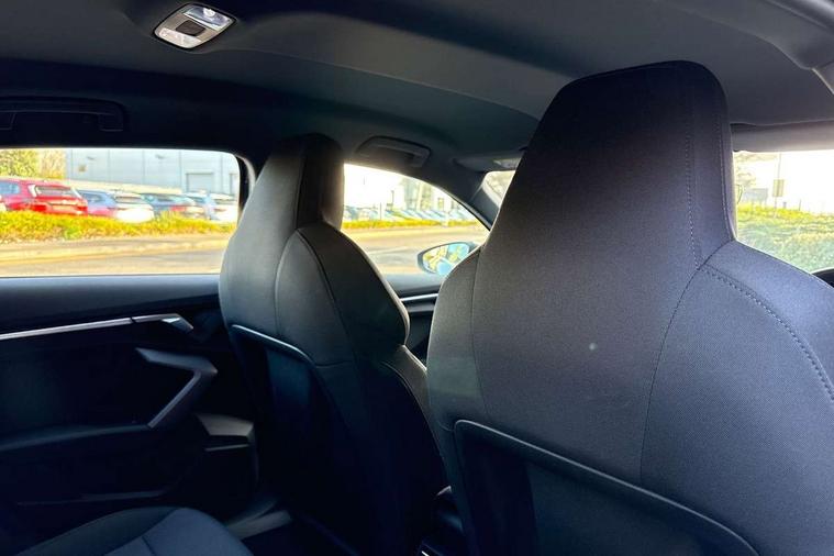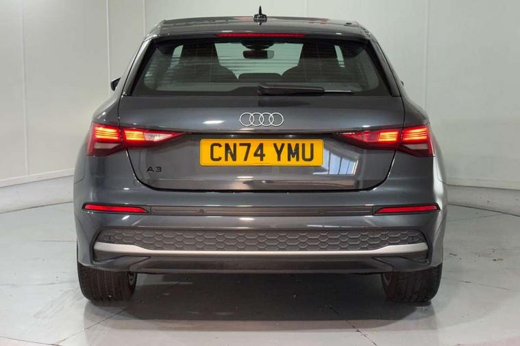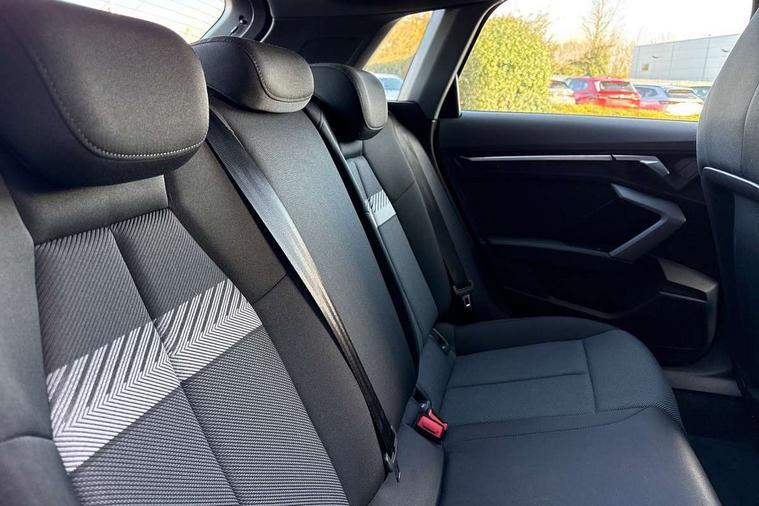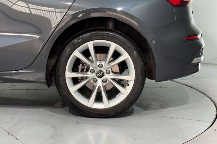 Adjustable speed limiter, Audi drive select, Audi smartphone interface with app store includes wireless Apple carplay, Android auto and Amazon alexa integration, Audi virtual cockpit plus - 12.3" full HD resolution dynamic digital instrument cluster, Automatic start/stop system with recuperation, Bluetooth interface, Camera based traffic sign recognition, Collision avoidance assistant, Cruise control, Distraction and Fatigue warning, e-Call (emergency call), Electromechanical power speed sensitive steering, Lane departure warning system, MMI Navigation Plus with high resolution 10.1" colour touch screen display, Park Assist with parking system Plus, Service indicator, Tailgate, Trip computer, Voice control system with natural language interaction, Standard suspension, Audi Phonebox light with wireless charging, Audi sound system - 10 loudspeakers including centre loudspeaker and subwoofer, DAB Digital radio, USB ports with charging function in the rear, 3rd brake light, Acoustic glass windscreen, Aluminium window trim, Auto dimming frameless rear view mirror, Body colour exterior mirrors, Body colour roof spoiler, Electrically adjustable/heated/folding/auto dimming door mirrors with integrated LED indications + kerb view function for passenger side, Exterior model badging, Front electric windows, Front radiator grill in high gloss dark chrome, Front side air inlets in grained matt black with silver frame, Heat insulating glass windscreen, LED daytime running lights, LED headlights and halogen rear lights, Light and rain sensors, Rear diffuser and grill in grained matt black with silver frame, Rear electric windows, Rear side wing doors, Rear window, rear door windows and rear side windows in clear glass, Rear wiper, 12V socket and storage compartment in front centre console, 3 seat bench in 2nd row, 3 spoke leather multifunction steering wheel with gear shift paddles, 3-zone deluxe automatic air conditioning, 4 way electrically adjustable lumbar support for driver and front passenger, 60/40 split folding rear seat bench, Front and rear headrests, Front centre armrest, Front door sill trims with aluminium inlay, Front/rear floor mats, Heated front seats, Height and reach adjustable steering wheel, Manual boot compartment lid, Manually adjustable front seats, Routine cloth upholstery with front sports seats, Seat side bolsters, Single front passenger seat, Steel grey cloth headlining, Aluminium interior elements pack - A3 Sportback, LED interior lighting pack -A3, 3x3 point rear seat belts, Driver and front passenger airbag with passenger airbag deactivation, Electronic Stabilisation Control (ESC) including ABS, ASR and EDL, First aid kit with warning triangle and 2 safety vests, Front side airbags with head airbags and interaction airbag, Hill hold assist, Pre-sense front with pedestrian and cyclist detection, Seatbelt monitoring, Tyre pressure loss indicator, Anti theft alarm, Anti-theft wheel bolts, Electronically operated child locks, Immobiliser, Remote central locking with safelock, Inlays in volcano grey fine paint finish,