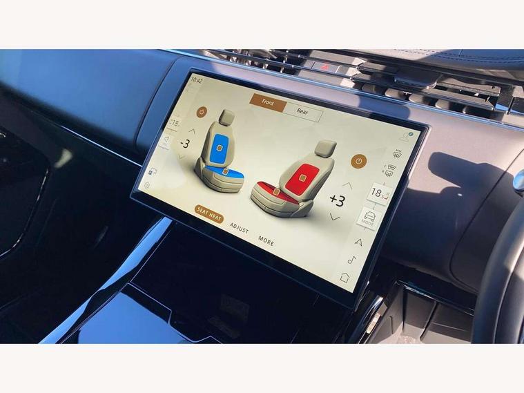 13.1" Touchscreen, 3D 360 degree surround camera with wade sensing, Adaptive cruise control with steering assist, Android Auto, Apple car play, Blind spot assist, Bluetooth connectivity streaming, Driver condition response, Eco mode, Front and rear parking aid, Interactive Driver display instrument cluster, Lane departure warning system, Lane keep assist, Push button start, Rear collision monitor, Rear traffic monitor, Remote, Traffic sign recognition with adaptive speed limiter, Trip computer, Wireless device charging, 8 speed automatic transmission, Adaptive dynamics, All wheel drive system, Automatic access height, Home charging cable, Public charging cable, Terrain Response 2, Twin speed transfer box, DAB Radio (Digital Audio Broadcasting), Incontrol protect - SOS emergency call with automatic collision detection, optimised assistance call and Incontrol remote app essential, Pivi pro connected, USB/aux input socket, Adaptive brake lights, Automatic headlight levelling, Automatic headlights, Centre high mounted stop light, Electric heated/power fold memory door mirrors with approach lights and auto dimming driver side, Electric windows with one touch open/close and anti trap, Flush deployable exterior door handles, Follow me home lighting, Front and rear recovery eyes, Headlight power wash, Heated rear window, Heated washer jets, Heated windscreen, Illuminated aluminium treadplates with Range Rover script, Integrated twin tailpipes, LED tail lights, Metal load space scuff plates, No badges, Rain sensing windscreen wipers, Rear animated directional indicators, Rear fog lights, Rear side wing doors, Rear wash/wipe, Remote window closing, Side repeater indicators in mirror, Trailer stability assist, Winter wiper park position, 3 seat bench in 2nd row, 60:40 seats with power recline and loadthrough, Air quality sensor, Auto air recirculation, Bright metal foot pedals, Centre console with armrest, Customer configurable single point entry, Driver's footrest, Easy boot loading, Ebony console door armrests and seatbelts, Electric adjustable steering column, Front and rear cupholders, Front door storage space, Front head restraints, Front map lights, Front seat back map pockets, Front stowage pocket, Front/rear passenger grab handles, Gearshift paddles, Heated steering wheel, Isofix child seat preparation, Loadspace cover, Loadspace Hook, Loadspace light, Loadspace mounting provisions, Lockable glovebox, Luggage tie-downs in loadspace, Multifunction steering wheel, Pollen filter, Power socket, Rear centre armrest, Rear head restraints, Rear ISOFIX, Single front passenger seat, Three 12V accessory power outlets, Upper secondary glovebox, Online pack with data plan - Range Rover Sport, 3 point seatbelts on all seats, Anti-lock braking system (ABS), Brake pre-fill technology, Configurable autolock, Cornering brake control (CBC), DSC - Dynamic Stability Control, EBD - Electronic brakeforce distribution, Electric parking brake, Electronic traction control, Emergency braking, Front seatbelt pretensioners, Front side airbags, Height adjustable front seatbelts, Hill descent control, Hill launch assist, Low traction launch, Occupant protection assist, Passenger seat occupant detector with front airbags, Power operated child locks, Roll stability control, Seatbelt warning, TPMS (Tyre pressure monitoring system), Immobiliser, Intrusion sensor, Keyless entry, Locking wheel nuts, Perimetric and volumetric anti theft alarm, Remote locking,