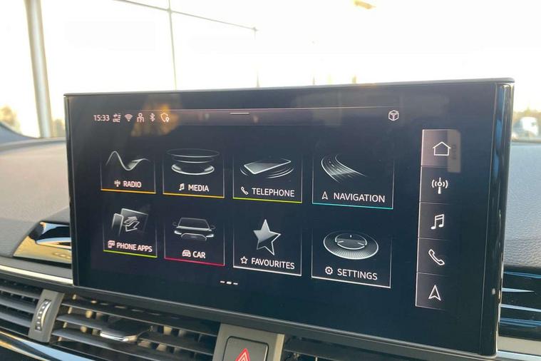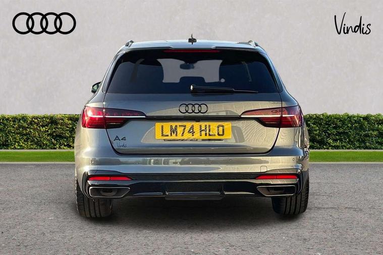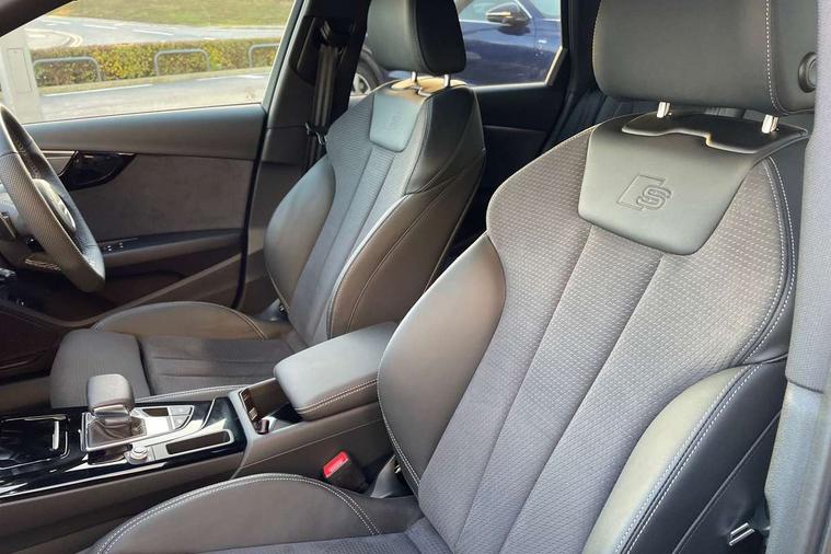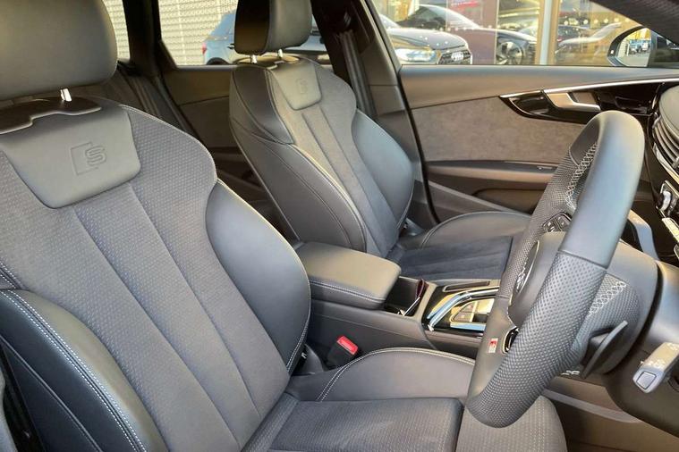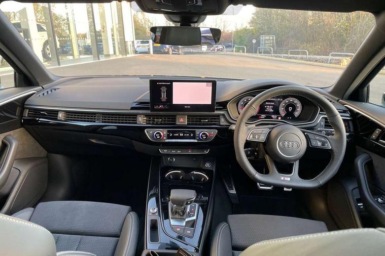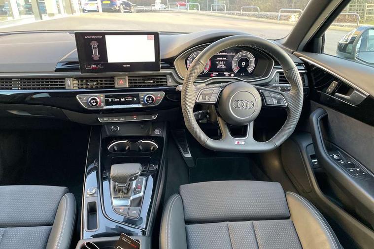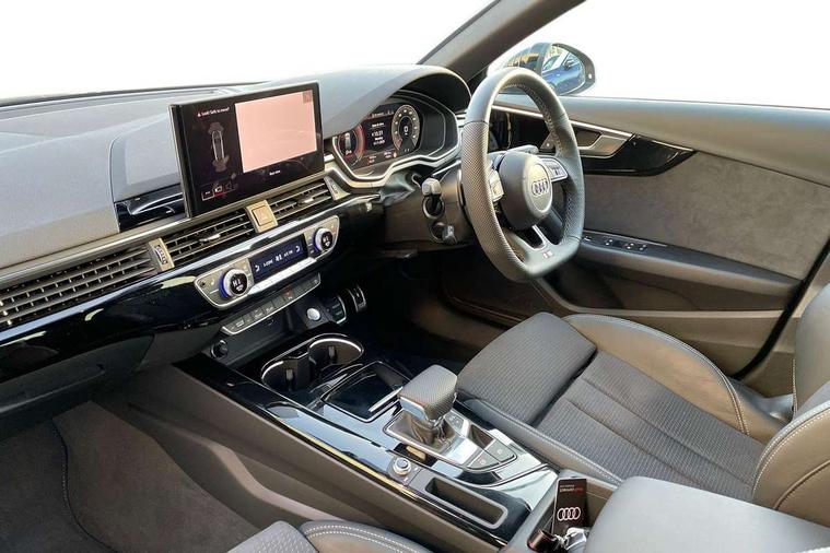 Audi connect safety and service (e-call), Audi drive select, Audi smartphone interface, Audi virtual cockpit, Automatic start-stop system with coasting functionality and efficiency programme, Bluetooth interface, Camera based traffic sign recognition, Electromechanical power steering, Email, calendar and text messages displayed via MMI, Front and rear parking sensors, Lane departure warning, MMI Navigation plus with MMI touch includes 10.1" high resolution colour MMI display, 3D map, Power operated tailgate, Rear view camera, Voice control system, 54 litre fuel tank, Sports suspension lowered by 23mm, 2 USB charging ports, 8 passive loudspeakers, DAB digital radio reception, Audi beam uses LEDs to project the audi logo onto the ground as you exit your A4, Auto dimming rear view mirror, Black Audi rings and black badging (with removed engine badging), Body colour door handles, Body colour front spoiler lip, Body colour side sill trim, Electric adjustable/heated/folding door mirrors with auto dimming, Exhaust tailpipes in dark chrome, Grained matt black side air inlets with matt aluminium silver inlay, High beam assistant, High gloss black B pillar trims and triangular rear door trim, LED headlights with LED rear lights + dynamic rear indicators + headlight adjustment and high beam, turning light + LED daytime running lights, LED third brake light, Privacy glass, Rain and light sensors, Rear diffuser in matt black with trim strip in matt aluminium silver, Rear side wing doors, Rear wiper, RS4 rear spoiler in body colour, S Line roof edge spoiler, Sport front and rear bumpers with side skirts, Variable intermittent front wash/wipe, Windscreen with acoustic glazing, 4 way electric lumbar support for driver and front passenger, 40/20/40 split folding 3 rear seat bench in 3 parts with rear centre armrest, Black carpets, Black cloth headlining, Black perforated leather gearknob, Contrast stitching on seats, steering wheel and gear lever gaiter, Deluxe 3 zone electronic climate control, Electric load area cover, Front and rear head restraints, Front centre armrest, Heated front seats, Illuminated door sill trims with S logo, ISOFIX child seat mounting and top tether, Manual seat adjustment, Single front passenger seat, Stainless steel pedals and foot rest, Black styling pack - A4 Avant, LED Interior light pack - A4/S4, 3 rear seatbelts, 6 airbags - Driver, front passenger, curtain and side windows, Attention and drowsiness assist, Electronic Stabilisation Control (ESC) including ABS, ASR and EDL, Hill hold assist, Multi collision brake assist, Pop-up bonnet for pedestrian protection, Pre sense city, Rear door child safety locks, Seatbelt monitoring, Warning triangle and first aid kit, Anti theft alarm, Anti theft wheel bolts, Central locking, Keyless Go, Piano black finish inlay, Tool kit, Tyre repair kit,