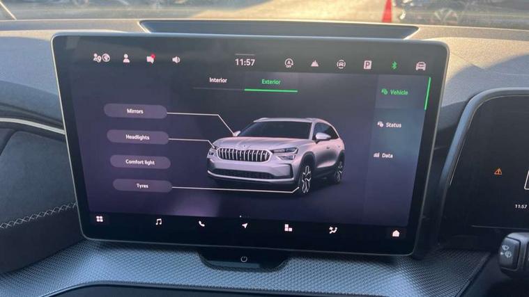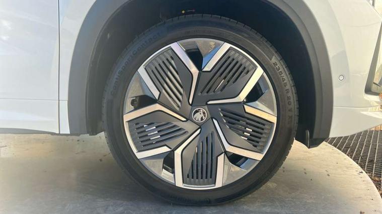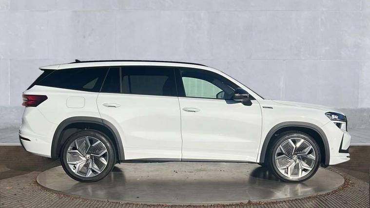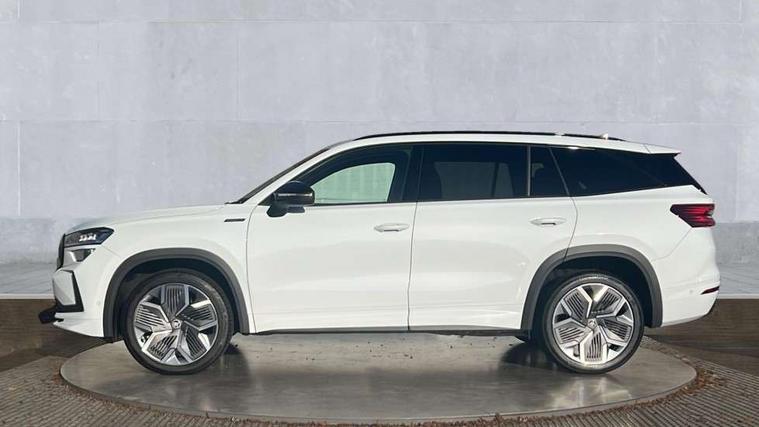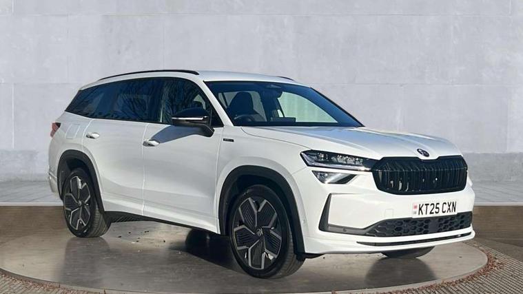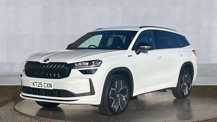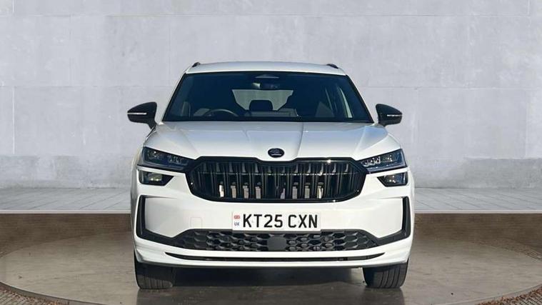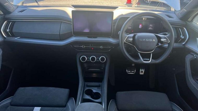 13" satellite navigation touchscreen display, Blind spot detection with door exit warning, Bluetooth system, ChatGPT functionality, Driver alert - Fatigue and drowsiness monitor, Dry display cleaner, Emergency call, Front and rear parking sensors, Front cross traffic assist, Lane assist, Off road modes, PAS, Rear traffic assist, Tailgate unlocking from outside, Traffic sign recognition, USB C Port x 2 in front centre console, Virtual Cockpit - 10.25" digital display, Voice control system, Wireless charging for two smartphones (15W) with cooling function, Wireless SmartLink for Apple CarPlay and Android Auto, Stop/start function, 2x USB-C in the rear, DAB Digital radio, Aero front windscreen wipers with intermittent function, Auto dimming rear view mirror, AWL (all weather lighting) and all weather light with cornering function, Black diffuser and decorative tailpipe with a unique dark chrome finish, Black roof rails, Black sports styling including front grille and window surrounds, Black wheel arch surrounds, Body colour door handles, Cornering light and poor weather light, Electric folding /adjustable/separted heated/folding door mirrors, auto dimming with boarding sports and memory function, Electric front and rear windows, Exterior black decorative trims, Front and rear sports bumpers including lower rear chrome strip, Gloss black door mirrors, Gloss black window frame and D pillar, Heat insulating glass in windshield, Heated rear window, Ice scraper in fuel tank cap, LED daytime running lights, LED third brake light in rear spoiler, Light assistant with automatic headlight control and coming home feature, Logo projection in door mirrors, Privacy glass, Rear roof spoiler, Rear side wing doors, Rear window wiper, Red decorative strip between rear LED lights, Safety reflectors on front and rear doors, Sportline badge on front fenders, Tailgate lettering in Black, Unique dark chrome design logo on alloy wheels, Window control switches with black trim, Windscreen wipers with rain sensor, Without engine designation, 1.5l bottle holder points in all door, 1x centre rear reading light, 2 seat bench in 3rd row, 3 configurable smart dials with 32mm coloured display, 3 seat bench in 2nd row, 4 foldable roof handles with rear coat hooks, Aluminium pedals, Ambient interior lighting - Dashboard, front-door stowage compartments, front and rear door panels and footwell lighting, Automatic gear selector on steering column, Chrome interior door handles, Driver/front passenger reading lights, Fabric headlining, Fixed bench 40:60:40 split folding backrests, Front and rear floor mats, Front centre armrest with jumbo box storage compartment, cup holder and 12V socket, Front sport seats, Height adjustable front headrests, Interior black decorative trims, Isofix child seat fittings in outer middle row rear seats and front passenger with top tether, Manually adjustable steering column, Pollen filter, Rear centre armrest with cupholders, Rear seat boot backrest release, Single front passenger seat, Skoda lettering on steering wheel, Storage pocket including mobile phone pockets on the backs of the front seats, Sunvisors with illuminated vanity mirrors, Three rear height adjustable headrests, Ticket holder on A Pillar, Tri zone climate control, Umbrella in door panel x1 made from sustainable materials, Upper and lower glovebox with card holder and coin compartment, USB C port by rear view mirror for charging only (15W), Acoustic package - Kodiaq, Performance package - Kodiaq, Sportline design selection pack - Kodiaq, Auto door release and activation of warning lights in the event of an accident, Driver and front passenger airbag with knee airbag and front passenger airbag deactivation, Electric child locks, Electronic parking brake, ESC (incl. ABS+EMD+MSR+ASR+EDL+HBA+DSR+RBS+ESBS+MCB+TSA+XDS), Front assist with braking reaction to vehicles, pedestrians and cyclists, Front disc brakes, Fuel cut off safety device, Height adjustable front 3 point seatbelts + pretensioners, Hill hold assist, Junction assist with automatic emergency braking, Rear disc brakes, Safety vest holder in door, Seat belt reminder for all seats, Three point rear seat belts, Two tone horn, Tyre pressure monitor, Alarm with interior monitoring and tilt sensor with safe function, Anti-theft wheel bolts, Immobiliser, Remote central locking with 2 keys, 20" Rila anthacite polished alloy wheel with black matte aero covers,