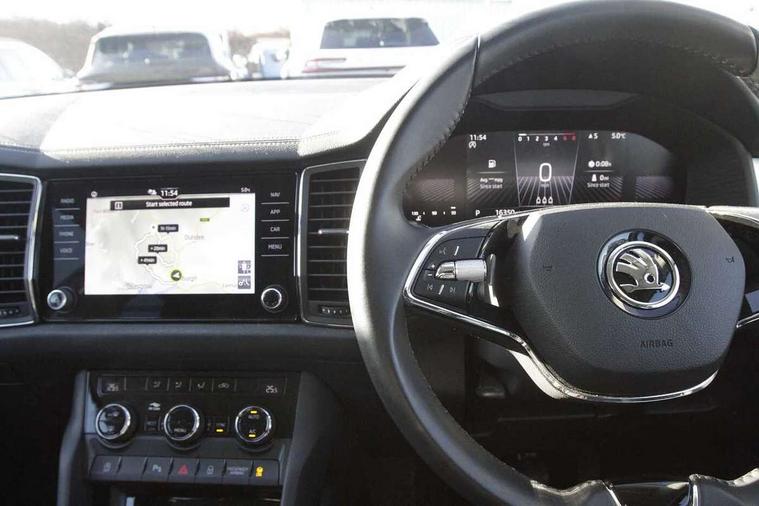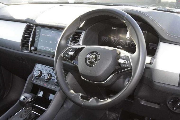 8" Digital display, Amundsen satellite navigation with 8" touchscreen, integrated Wi-Fi, web radio, Bluetooth system, Digital voice enhancement, e call+, ECO Stop/start function, Exterior temperature indicator, Power assist steering, Rear view camera, Smartlink wireless for apple carplay and wired for android auto, Speed limiter, Tailgate unlocking from outside, USB C Port x 2 in front centre console, 8 Speakers, DAB Digital radio, Aero front windscreen wipers with intermittent function, Aero rear window wiper, Auto dimming rear view mirror, Black wheel arch surrounds, Body colour bumpers, Body colour door mirrors and handles, Electric front and rear windows, Extended rear spoiler with finlets in gloss black, Front fog lights, Headlight washers, Heated rear window, Invisible tailpipe, LED rear fog light, LED third brake light in rear spoiler, Light assistant (coming/leaving home/tunnel light), Off-road style lower front bumper element, Privacy glass, Radiator grille frame in matt black with chrome strip, Rain and light sensors, Rear LED lights (high functionality) with welcome effect and dynamic indicators, Rear side wing doors, Safety reflectors on front and rear doors, Window control switches with black trim, 12V socket in boot, 2 rails with 2 hooks, 2 spoke multi-function leather steering wheel with paddle shift, 3 seat bench in 2nd row, 4 foldable roof handles with rear coat hooks, 60:40 foldable rear seat with sliding adjustment and backrest angle adjustment, Bottle holders in door panel in the 1.5 litre front and 1 litre rear, Chrome interior door handles, Cloth upholstery, Coat hooks on B pillar, Covered storage compartment on driver side, Dual zone automatic air conditioning with humidity sensor and control, Front and rear door armrest with black adductor trim, Front centre armrest with storage compartment, cup holder and 12V socket, Gear shift lever with chrome frame and black gloss insert, Grey headlining, Grey stitching in front and rear armrests and door armrests + door inserts, Height adjustable front headrests, Height adjustable front seats, Illuminated glovebox, Illuminated luggage compartment, Isofix child seat fittings in outer rear seats with top tether, Manually adjustable steering column, Net programme in boot (1x horizontal Net, 2x vertical Nets), Overhead glasses storage compartment, Pollen filter, Rear centre armrest with cupholders, Single front passenger seat, Sliding trunk cover, Small Bags on the inner sides of the front backrests, Sunvisors with illuminated vanity mirrors, Three rear height adjustable headrests, Ticket holder on A Pillar, Umbrella in door panel, Auto door release and activation of warning lights in the event of an accident, Driver and front passenger airbag with knee airbag and front passenger airbag deactivation, Electronic parking brake with hill start assist, Emergency rear braking signal, ESC (incl. ABS+MSR+ASR+EDS+HBA+DSR+RBS+MKB), Front assist with autonomous emergency braking, Front side airbags with curtain airbags, Fuel cut off safety device, Height adjustable front 3 point seatbelts + pretensioners, Hill hold control, Rear disc brakes, Safety vest holder in door, Seat belt reminder for all seats, Three point rear seat belts, Two tone horn, Tyre pressure monitor, Alarm with interior monitoring and tilt sensor with safe function, Anti-theft wheel bolts, Immobiliser, Keyless entry and start system (KESSY), Remote central locking with 2 keys, Grey stitching in dashboard,