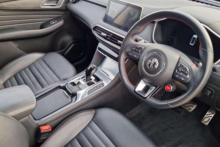 10.1" colour touchscreen, Adaptive cruise control, Android Auto, Apple CarPlay, Blind spot detection, Bluetooth connectivity, Driving modes, Emergency call service, Full digital driver information display, Intelligent speed limit assist, Lane keep assist system (LAS) with Lane departure warning system (LDWS), PAS, Power tailgate, Rear cross traffic alert, Rear parking camera, Rear parking sensors, Satellite navigation system, Tailgate, Traffic jam assist, Trip computer, USB mobile phone charging function, 4 USB ports 2 front and 2 rear, 6 speaker audio system, DAB audio, Auto dimming rear view mirror, Automatic headlights, Body colour electric adjustable heated door mirrors, Electric folding door mirrors, Follow me home headlights, Front and rear aero wiper, Front and rear electric windows with one-touch up/down, Intelligent high beam, LED Bi-Function headlights, LED centre brake light, LED daytime running lights, LED front and rear sequential indicators, Rain sensing wipers, Rear privacy glass, Rear side wing doors, Silver roof rails, 12V power sockets, 2nd row 60/40 split fold seat, 2nd row seat with 2 stage incline adjustment, 3 rear headrests, 3 seat bench in 2nd row, 4 way electric adjustable passenger seat, 6 way electric adjustable drivers seat + lumbar support, Ambient lighting (adjustable colour), Dual zone automatic air conditioning, Front centre sliding armrest with storage compartment, Front headrests, Heated front seats, Height and reach adjustable steering wheel, ISOFIX restraints on outer rear seats x2, Leather steering wheel, Metal sports pedals, Single passenger seat, Sports Style Front Seats with One-Piece Back, Steering wheel paddle shift, 3x3 point rear seatbelts, ABS/EBD, Active emergency braking with pedestrian/Bicycle detection, Anti rolling protection, Cornering brake control (CBC), Drivers seatbelt reminder, Dual front airbags, Electric parking brake with auto hold function, ESP, Front and rear passenger seat belt reminder, Front passenger airbag deactivation switch, Front seat belt height adjuster, Front seatbelts (3-point + pretensioner + load limiter), Front side airbags, Hill descent control, Hill launch assist, Manual rear child locks, Rear outer seatbelt pretensioner and load limiter, Side curtain airbags, Tyre pressure monitoring system, Alarm system and engine immobiliser, Keyless entry and push button start system, Remote central locking, Speed sensing door locks, 18" Diamond cut alloy wheels, Tyre repair kit,