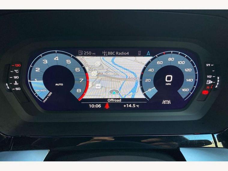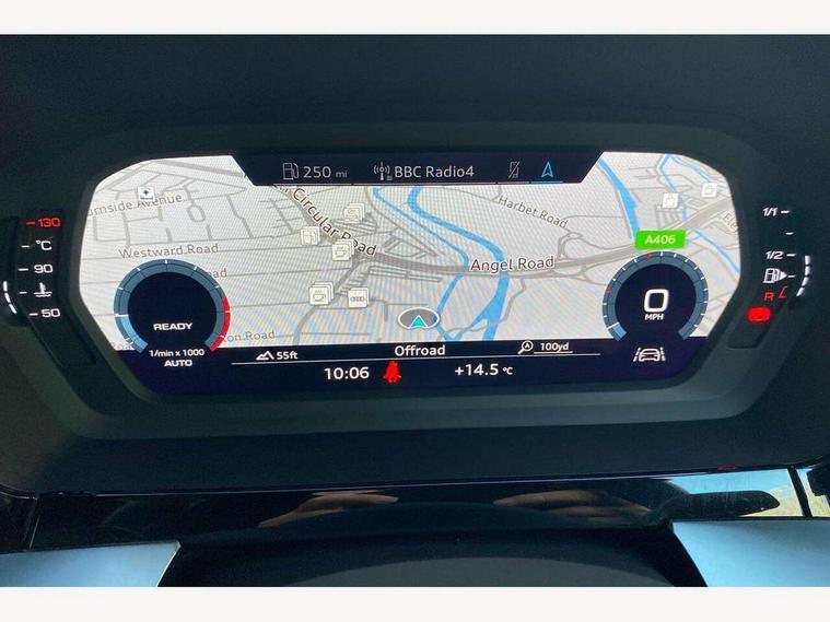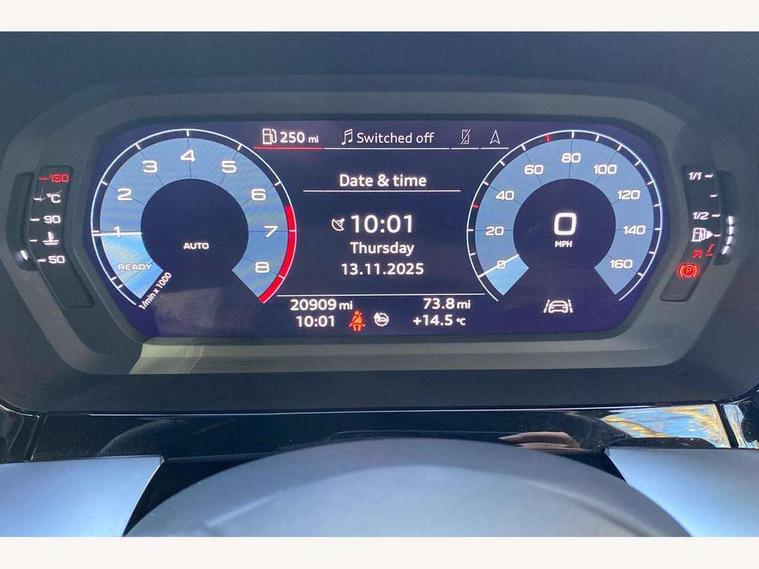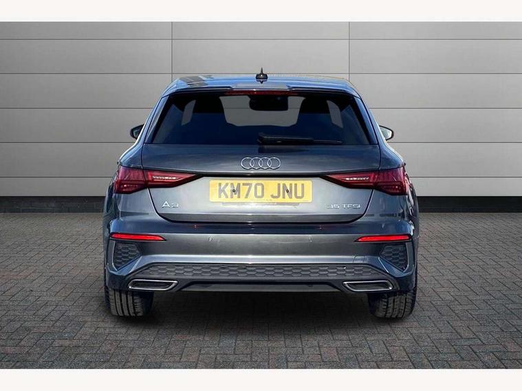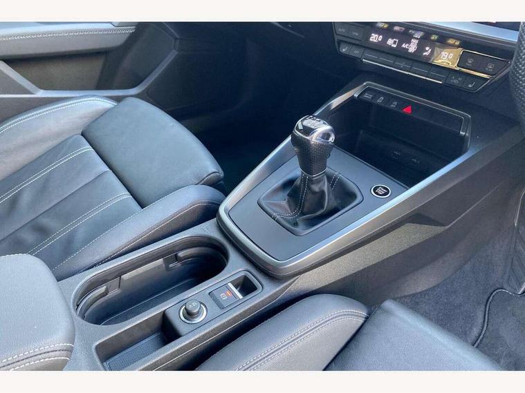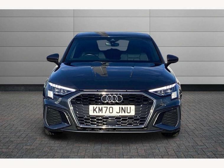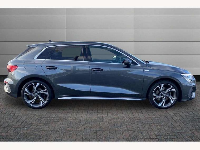Audi connect emergency call and service, Audi drive select (Auto, Comfort, Dynamic, Efficiency and Individual), Audi smartphone interface, Audi Virtual Cockpit - 10.25" digital and colour instrument cluster, Automatic start/stop system with recuperation, Bluetooth interface, Collision avoidance assistant, Cruise control, Electromechanical power speed sensitive steering, Lane departure warning system, MMI Navigation Plus with high resolution 10.1" colour touch screen display, Rear parking sensors, Service indicator, Trip computer, Voice control system with natural language interaction, 1xUSB-A and 1xUSB-C connection, 6 passive loudspeakers, DAB Digital radio, Acoustic glass windscreen, Aluminium window trim, Auto dimming frameless rear view mirror, Body colour exterior mirrors, Electrically adjustable/heated/folding/dimming door mirrors with kerb view includes integrated LED indications + kerb view function for passenger side, Front electric windows, Illuminated aluminium inserts front door sills with S logo, LED daytime running lights, Light and rain sensors, Privacy glass - dark tinted rear window, rear door and side windows, Rear electric windows, Rear side air outlets in grained matt black, Rear wiper, S line bumpers, S roof spoiler, 12V socket and storage compartment in front centre console, 40/20/40 split folding rear seat bench with cupholder, Black cloth headlining, Dual zone electronic climate control, Front and rear centre armrest in leather, Front and rear headrests, Front/rear floor mats, Height and reach adjustable steering wheel, Interior lighting - glove compartment light and right hand side, Luggage compartment floor covering, Manual boot compartment lid, Manually adjustable front seats, Seat side bolsters, Stainless steel pedals and front footrest, Twin leather upholstery with front sports seats S embossed logo, Aluminium interior elements pack - A3 Sportback, S line styling pack - A3 Sportback, 3x3 point rear seat belts, Driver and front passenger airbag with passenger airbag deactivation, Electronic Stabilisation Control (ESC) including ABS, ASR and EDL, First aid kit with warning triangle and 2 safety vests, Hill hold assist, Pre-sense front with pedestrian and cyclist detection, Seatbelt monitoring, Tyre pressure loss indicator, Anti theft alarm, Anti-theft wheel bolts, Electronically operated child lock, Immobiliser, Remote control central locking, Accent surfaces in the dashboard and centre console in platinum grey silk effect paint finish, Dark spectrum aluminium inlays,