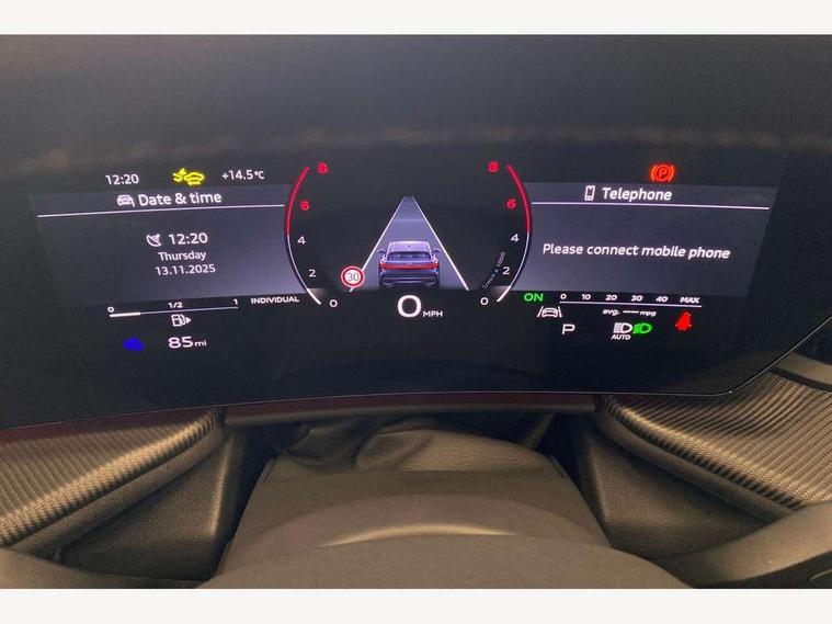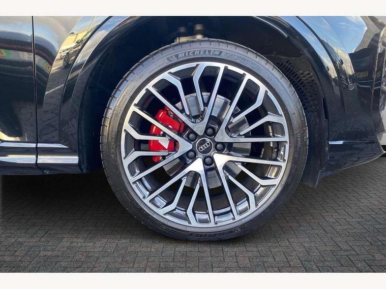 Adaptive cruise assist plus with steering intervention, Advanced driver attention alert, Audi application store, Audi connect emergency call and service, Audi digital key, Audi drive select, Audi smartphone interface, Audi virtual cockpit plus with 11.9" OLED colour display, Camera based traffic sign recognition, Fatigue monitor, Front cross traffic intersection assist, Garage door opener, Lane change assistant with exit warning system, rear cross traffic alert and rear turn assist, Lane departure warning with emergency assist, MMI 10.9" front passenger touch display, MMI navigation plus with high resolution 14.5" OLED touchscreen colour display, Park assist plus, Parking system plus with 360 display, PAS, Reversing camera, Swerve assist and turn assist, Top view camera, Traffic sign based speed limiter, S adaptive air suspension, 2 USB-C ports in both the front and rear, DAB Digital radio, Smartphone compartment with wireless charging, Acoustic glass for front door windows, Active digital light signatures - Six additional combinations of active daytime running light signature, Auto dimming rear view mirror, Black door mirrors, Black roof rails, Coming/leaving home lighting function, Contrast bumpers in mythos black metallic paint finish, Digital OLED tail lights including communication light, Electrically adjustable heated and folding + automatically dimming exterior mirrors, Entry LED with red and white rhombus S logo projection, Exhaust tailpipes in dark chrome, Front and rear electric windows, Front door sill trims with aluminium inlays, illuminated with 'S' logo, Headlight cleaning system, Heated rear window, High beam assist, High gloss window surrounds, Inlay and front air inlets in matt anthracite chrome, Logo projection light in exterior mirrors, Matrix LED headlights, Memory function for door mirrors, Privacy glass, Projection light for rear window, Radiator grille in phantom black, Rear and side windows with heat insulating glass, Rear honeycombe grille in matt black with inlay in matt anthracite chrome, Rear side wing doors, Rear wash/wipe, Red S rhombus badging with 'S' lettering on rear, S exterior styling, Towbar preparation, Windscreen with acoustic glazing, 3 rear head restraints, 3 seat bench in 2nd row, 3 spoke leather steering wheel with multi-function buttons with touch control, flattened on top and bottom, with S badging and contrast stitching, 40:20:40 split folding rear seat bench with centre armrest and cup holders, Comfort centre armrest, Deluxe 3 zone electronic climate control, Electric steering wheel adjustment, Electrically adjustable front seats with memory function for driver's side, Front and rear floor mats, Front seat ventilation, Front sport seats with integrated head reastrains, Headlining in black cloth, Heated front seats, Heated outer rear seats, Heated steering wheel, i-Size child seat mounting on the front passenger side and outer rear seats, i-Size and top tether on the outer rear seats, Interior trim in aluminium look, Luggage compartment lid, electrically opening and closing, Perforated fine nappa leather with diamond stitching incl. ventilation and massage function for front seats, Pneumatically adjustable lumbar support with massage function for front seats, Single front passenger seat, Softwrap in Dinamica, Stainless steel pedals and footrest, Steering wheel grips in perforated leather and shift paddles, Ambient lighting package plus - Q5, Black styling package plus - Q5, Sound and Vision pack - Q5, Storage and luggage compartment pack - Q5, Vanadium pack - Q5, 3x3 point rear seatbelts, ABS, Acoustic vehicle alerting system, Convenience key with safelock, Driver and front passenger airbag with passenger airbag deactivation, Electric child safety locks, First aid kit with warning triangle and high visibility vests, Front emergency brake assist, Front side airbags with head airbag system and front interaction airbag, Hill hold assist, Occupant detection in rear seat area, Proactive passenger protection system for front, sides and rear, Red brake calipers, Side airbags in front and rear with head airbag system and front interaction airbag, Tyre pressure loss indicator, Anti theft alarm, Anti-theft wheel bolts, Remote control key with SAFELOCK and keyless go, Black dashboard with contrast stitching, Carbon micro twill structure inlay, Steel grey seat stitching, Upper and lower interior elements in dinamica microfiber, 21" 5 arm slit black metallic, gloss turned finish Audi Sport alloy wheels, Tyre repair kit,