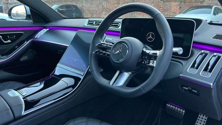 12.3" 3D driver display, 12.8" OLED central display, 5G Communications module, Acoustic ambient protection, Apple car play/Android Auto, Attention assist, Bluetooth connection, Crosswind Assist, Direct steering, DYNAMIC SELECT with a choice of driving modes, ECO start/stop function, Extended MBUX functions, Fingerprint scanner, Hands-free access for boot lid, Hard disc navigation, Intelligent parking pilot, MBUX augmented reality for navigation, MBUX augmented reality head-up display, MBUX interior assist - front and rear, MBUX navigation premium, MBUX rear tablet, Mercedes-Benz emergency call, Power closing aid for doors and boot lid, Pre-installation for private car sharing, Preinstallation for Navigation Services, Rear belt status indication in the instrument display, Remote and charging services plus, Remote boot lid release and closing, Service indicator (ASSYST), Wireless charging system for mobile devices in the front, Wireless charging system for mobile devices in the rear, Wireless smartphone integration, 76 litre fuel tank, 9G TRONIC 9 speed automatic transmission, Airmatic air suspension, Alternating current charging system (AC charging), Charging cable for domestic socket, 5 m, straight, Charging cable for wallbox and public charging stations, 4 m, straight, Direct current charging system (DC charging), Burmester 3D surround sound system, DAB Digital radio, Front 2x USB type-C ports, Rear 2x USB type-C ports, Sound personalisation, Adaptive brake lights, AMG front apron in A-wing design with large air intakes and fins in chrome plus front splitter in chrome, AMG rear apron with diffuser and trim element in chrome, Automatic headlights, Automatically dimming rear view mirror, Digital light - LED headlight, adaptive highbeam, cornering and active light, enhanced fog light, city, country road mode, weather and LED rear lamp, Electrically adjustable, heated and automatic dimming driver side exterior mirrors with kerb/parking function, Exterior mirror - Ambient lighting with projection of brand logo, Front and rear electric windows, Heat-insulating, dark-tinted glass, Heated windscreen, Illuminated door sill panels with Mercedes-Benz lettering, LED daytime running lights, LED third brake light, Magic vision control, Panoramic sliding sunroof, Privacy glass, Radiator grille with chrome surround and three horizontal cross struts in chrome with inserts in high-gloss black, Rear boot, Rear side wing doors, Shoulderline trim strip in chrome, Side sill panels with chrome insert, Visible tailpipe trim elements in chrome, 12V socket in boot, 12V socket in rear centre console plus in the front passenger footwell, 3 seat bench in 2nd row, 3 twin spoke flattened bottom multifunction sports steering wheel in nappa leather with silver chrome shift paddles, 4 way electrically adjustable lumbar support for driver and front passenger, Active ambient lighting 64 colours with 10 colour schemes, Adaptive rear compartment lighting, AMG floor mats, AMG pedals in brushed stainless steel with rubber studs, Automatic child seat recognition sensor, Belt feeders in the rear, Centre console in black crystal look finish, Charging socket, Climatised front seats, Climatised rear seats, Double sun visors with pivoting section to cover the side window, Driver and front passenger seat heating plus, EASY ADJUST luxury head restraints with additional cushion for driver and front passenger, foldable and removable on front passenger side, Easy entry system for driver, Electric rear window sunblinds, Electric sunblinds in rear doors, left and right, Electrically adjustable rear seats including memory function, Energizing Air Control - Air quality and fine particle sensor, Fabric roof liner, Front passenger side seat electrically adjustable from the rear, Luxury rear head restraints with extra cushion, Rear centre armrest with double cup holder and trim element, Seat heating plus for outer rear seats, Single front passenger seat, Steering column gear selector, Steering wheel heating, Thermotronic automatic 4 zone climate control, Through loading system, Two bag hooks, Active multicontour seat pack - S Class, Chauffeur pack - S Class, Driving assistance package - S Class, Memory pack - S Class, Parking package with 360 degree camera - S Class, USB pack plus - S Class, Warmth comfort package - S Class, Anti lock braking system (ABS) with brake assist, Brake pad wear indicator front brakes, Centre airbag, Child locks on rear doors, Driver/Front Passenger airbags, Electric parking brake, Electronic stability programme with acceleration skid control, First aid kit, Forward facing rear airbags, Front and rear illuminated designer belt buckles, Front large compound brake discs 390x36mm internally ventilated and perforated, Front side airbags, Grey painted brake callipers with Mercedes-Benz lettering at the front, grey logo badge at the rear, i-Size and ISOFIX rear child restraint system, Pedestrian protection, Pre-safe system including pre-safe sound, Rear larger compound brake discs 360x26mm internally ventilated and perforated, Rear side airbags, Three 3 point rear seatbelts, Tyre pressure loss warning system, Window airbags, Dashcam, Guard 360 degree vehicle protection plus, Increased anti-theft protection, KEYLESS-GO starting function with seamless door handles, Locking wheel nuts, Remote central locking, 20" AMG multispoke alloy wheels in himalaya grey with high-sheen finish, Noise reduced tyre with foam absorber, Summer tyres, Tyrefit tyre sealant kit,