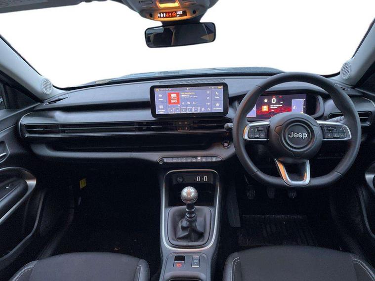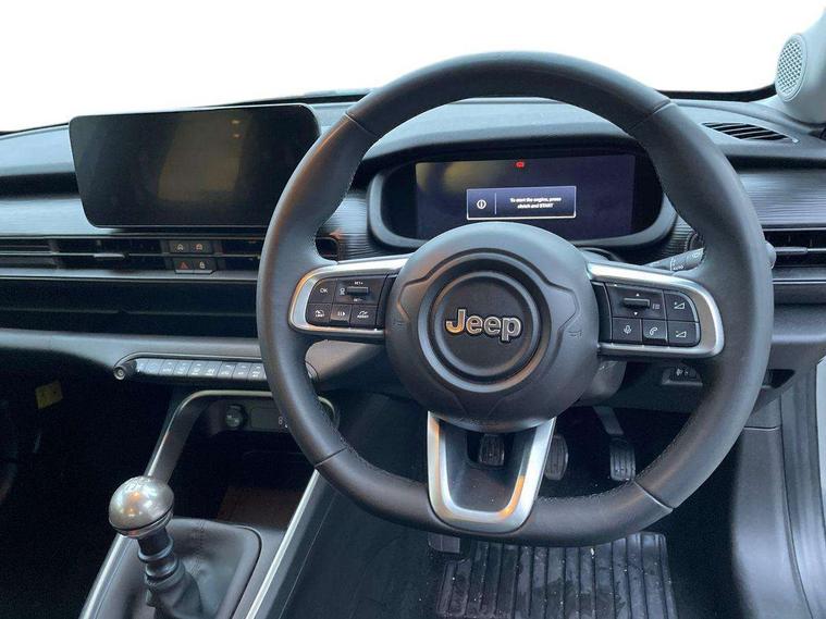 (AEB) Autonomous Emergency Braking with pedestrian and cyclist recognition, 10.25" Full TFT reconfigurable colour cluster, All-Terrain Mode Selector, Apple Carplay/Android Auto with wireless mirroring, BSRF connectivity box, Connectivity services, Drowsy driver detection system, eCall emergency call system, Keyless Start/Engine On Button, Lane keep assist, Odometer, PAS, Quick Guide English, Traffic sign recognition, Warranty Booklet - UK, Battery default, High efficiency alternator, Rear USB port with type-C charging, 3rd brake light, All power windows express Up/Down, Automatic headlights, Body colour exterior door handles, Day time running light, Gloss black mirror caps, Rain sensor, Rear side wing doors, Rear wiper, Silver skid plates, Wiring preperation for towing group by Mopar, 3 rear headrests, 3 seat bench in 2nd row, Automatic A/C (1 Zone), Cargo Flex Kit - Flat floor on trunk area, height adjustable cargo floor, double face carpet/scratch resistant and washable, Central console dividers x2, Driver and front passenger sunvisor with vanity mirror, Foldable second row seats 40/60 - Fix and Fold, Front central armrest with storage, Front head restraints, Front passenger grab handle, Front passenger isofix child seat attachment, Front seat backrest pocket, I am Jeep label, Single front passenger seat, Synthetic leather gear lever knob, Synthetic leather steering wheel, Anti-lock braking system (ABS), Child locks on rear doors, Electric parking brake with auto hold function, ESC - Electronic Stability Control + traction control, Hill descent control, Kit fix and go predisposition/housing only, Rear seat ISOFIX, Three 3 point rear seatbelts, Vulnerable road user recognition - Pedestrian/Cyclist incl. AEB, Volumetric anti theft alarm, Black dashboard, Fix and go puncture repair kit,