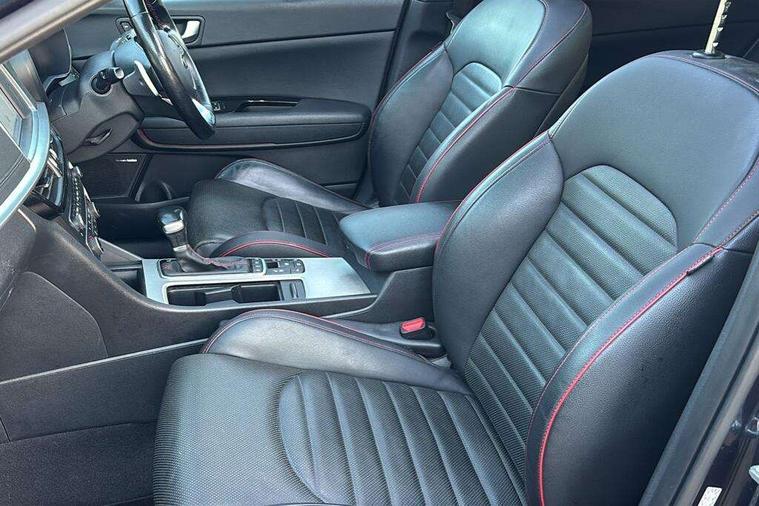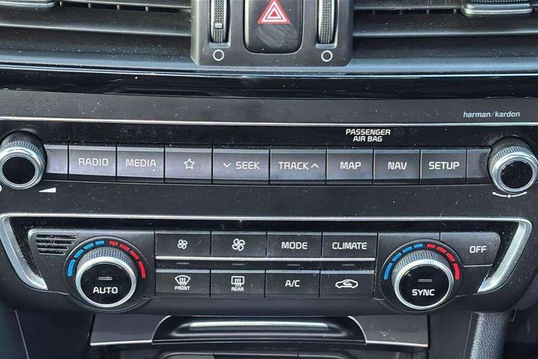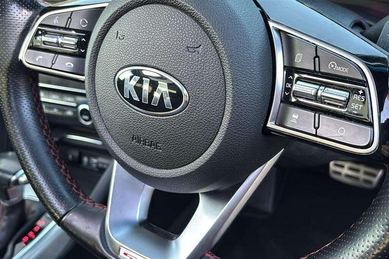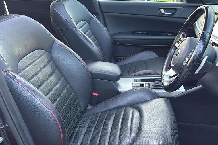 8" touch screen, Active park assist with parallel/perpendicular system, Adaptive cruise control, Apple car play/Android Auto, Around View Monitor, Blind spot assist, Bluetooth connectivity with voice control, Digital clock, Drive mode selector, Driver attention warning, Emergency stop signalling system, Engine start/stop button, Forward collision warning, Front and rear parking sensors, Kia connected services, Lane keep assist, LCD TFT Colour Display, Low washer fluid warning light, Navigation system, Power Steering, Power tailgate, Rear cross traffic alert, Remote fuel cap release, Reversing camera, Speed limit display, Trip computer, Wireless Smartphone charger, Diesel particulate filter, Intelligent Stop and Go, Bluetooth audio streaming, DAB Radio with MP3, Harman/Kardon Premium sound system with 8 Speakers, Rear USB port, Steering wheel mounted controls, USB and auxiliary socket, Auto dimming rear view mirror, Automatic defog system, Automatic headlight control system, Automatic headlight levelling, Black high gloss/chrome front fender garnish, Body colour door handles with chrome trim, Body colour door mirrors, Body coloured bumpers, Dark grey mesh grille, Dynamic cornering light, Electric adjustable/heated/folding door mirrors, Exterior grab door handles, Follow me home headlights, Heated rear window with timer, High beam assist, High gloss black trimmed side sill mouldings, High level LED brake light, LED daytime running lights, LED front fog lights, LED Headlights, LED indicators in door mirrors, LED rear lights, Metal Boot lip trim, One touch electric front/rear windows, Panoramic sunroof with tilt/slide function and automatic electric roll blinds, Privacy glass, Rain sensing front wipers, Rear diffuser, Rear fog lights, Rear side window blinds, Remote window closing, Roof rails, Satin chrome roof line trim, Shark fin antenna, Single twin chrome tipped exhausts, Speed sensitive front wipers, Tinted glass, Towing preparation, UV-reducing solar glass, Visible VIN plate, Welcome home function, 12V socket in front and rear, 12V socket in luggage compartment, 4 way electrically adjustable lumbar support for drivers seat, 40:20:40 split folding rear bench seat, 8 way electric adjustable drivers seat, 8 way electrically adjustable passenger seat with height, reach, till and backrest, Air filter, Alloy pedals, Ambient lighting, Assist grips, Black headlining, Centre console storage box/armrest, Centre fascia storage tray, Cupholders in centre console, Driver's seat memory, Dual zone automatic air conditioning, Faux leather centre console armrest, Faux leather trimmed door armrests, Front and rear door pockets with bottle holders, Front door courtesy lamps, Front LED map light with sunglasses case, Front seat and rear pockets, Gloss Black finish electric window switch panels, Heated front seats, Heated outer rear seats, Heated steering wheel, Height adjustable headrests, Illuminated glovebox with lock, ISOFIX top tethers and lower anchor points, Leather steering wheel with red stitching, Leather trimmed gearshift, Leather upholstery, LED rear reading lights, Load area cover, Luggage area lamp, Luggage area rail system, Luggage net with hooks, Luggage partition net, One touch fold flat handle for rear seats, Paddle shift controls, Passenger seat lumbar adjust, Rear air vents, Rear centre armrest with cupholder, Rear coat hooks, Rheostat dimmer switch, Satin chrome interior door handles, Stainless Steel Scuff Plates, Sunvisors with illuminated vanity mirrors, Tilt/telescopic adjustable steering wheel, Touchscreen satin chrome bezel trim, Ventilated front seats, 3 point seatbelts on all seats, ABS/EBD, Automatic unlocking of doors in case of impact, Autonomous emergency braking, Curtain airbags, Dual front airbags, Dual Side airbags, Electronic parking brake, ESC + BAS + VSM + HAC, Front passenger airbag deactivation, Front seatbelt pretensioners + load limiters, Height adjustable front seatbelts, Hill start assist, Rear door child safety locks, Seatbelt warning, Traction control, Tyre pressure monitoring system, Anti theft alarm, Anti-drill door locks, Deadlocks, Immobiliser, Locking wheel nuts, Smart key entry system, Speed sensitive auto door locking, Aluminium finish to centre console, 18" Alloy wheels, Tyre mobility system,