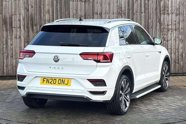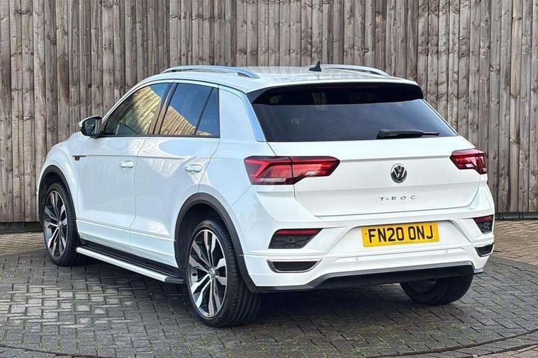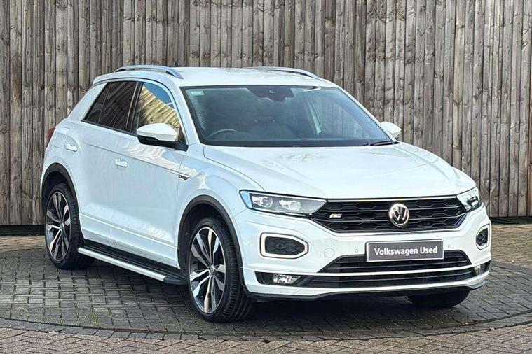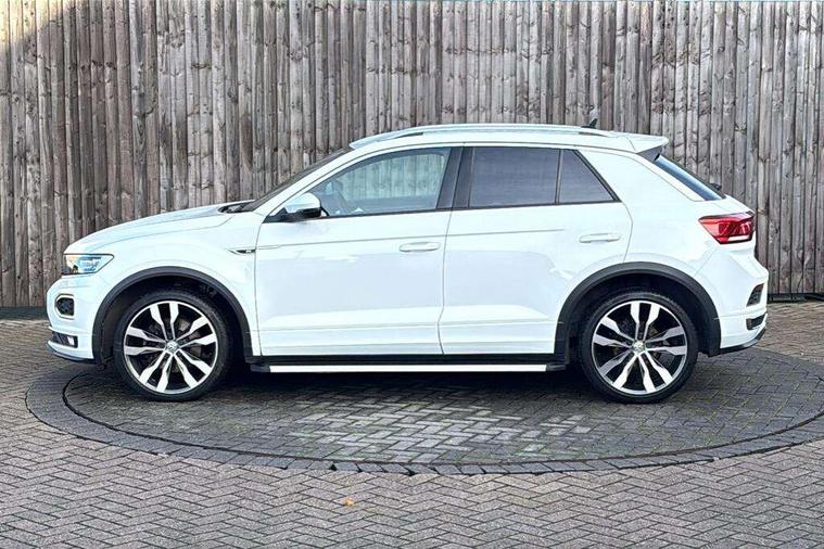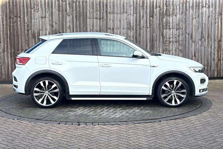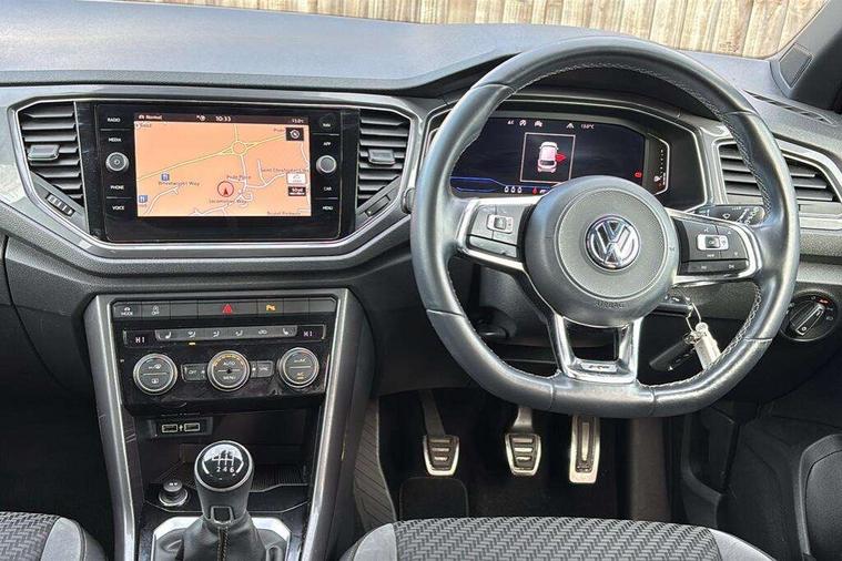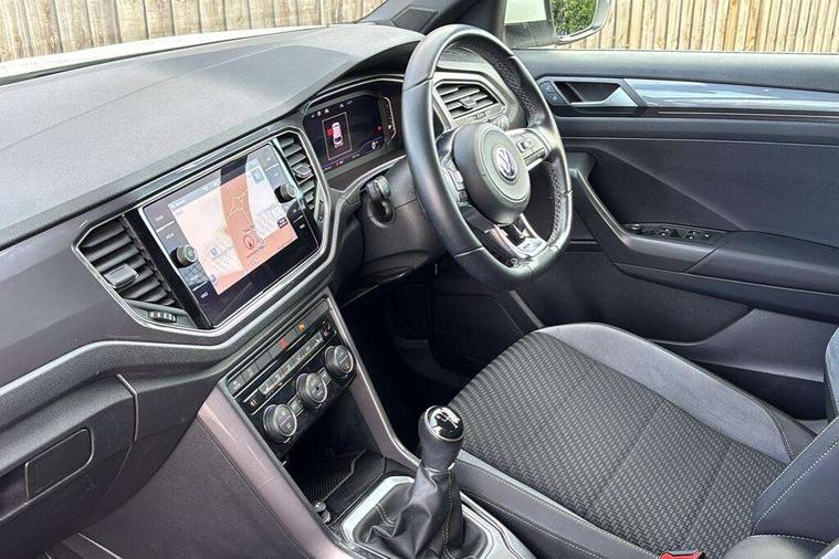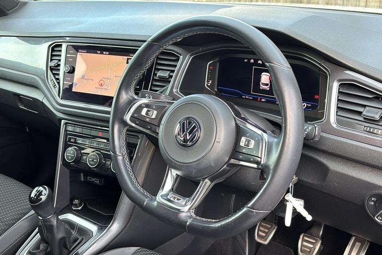 App-Connect, 'Lights On' Reminder warning buzzer, 2 USB connection charging sockets, Active Info Display, 10.3" high resolution TFT dash display screen with customised information, Adaptive cruise control with front assist, radar sensor controlled distance monitoring, city emergency braking, Automatic start/stop system, Bluetooth telephone and audio connection for compatible devices, Car information display, Car-Net Security and Service, Discover navigation, 8" touch screen navigation/infotainment system with Car-Net, European map, CD/radio, 2D/3D map and speed limiter, Driver alert system with audible and visual fatigue detection system, Driver tips and journey analysis, Driving profile selection - Eco, normal, sport or individual modes with Individual mode allows for steering, drive and air conditioning settings, Dusk sensor, Lane assist, Multifunction computer with visual gear change recommendation for fuel consumption, Service interval indicator, Think blue trainer driver tips and journey analysis, Voice activation, Warning sound and light for doors and tailgate open, Warning sound and light for front seatbelts unfastened, Battery regeneration during braking, DAB Digital radio, Dynamic navigation based on TMC+, Multi device interface (MDI) with USB connection, Music playback - MP3, WMA and AAC files, Premium USB cable in choice of either Apple or Android smartphone compatibility, SD card slot, Simultaneous pairing of 2 compatible mobile devices, SMS functionality - read, compose and send SMS messages using touch-screen display, Three route options - Fast, Short, Eco, Title and cover art display, Auto dimming interior rear view mirror, Automatic hazard lights activation under emergency braking, Black grained lower door protectors, Body colour door handles, Body colour rear roof spoiler, Chrome effect left and right trapezoid exhaust tailpipe fascia surround, Chrome trim on upper and lower radiator grille, Electrically foldable, adjustable and heated door mirrors with puddle lights and reverse activated kerb-view adjustment on passenger's door mirror, Front and rear electric windows, Front fog lights with static cornering function, Front windscreen wiper with intermittent wipe and 4 position delay, Fully galvanised body, Heated rear window, High level 3rd brake light, LED darkened rear light clusters, LED dipped and main beam headlights with automatic range adjustment including signature LED daytime running lights, LED rear number plate lights, Manual coming/automatic leaving home lighting function, Rain sensor, Rear tinted glass from B-pillar backwards approx 65% tinted, Rear wash/wipe with intermittent wipe setting, 12V socket in centre console storage area, 2 Front and rear reading lights incorporating LED technology, 3 rear head restraints, 4 load lashing points in luggage compartment, Aluminium pedals, Ambient lighting in front footwell and light strips below trim in front doors, Black roof lining and sun visors, Branded points of interest, Carbon flag cloth upholstery, Climate control - 2 zone electronic air conditioning with automatic air recirculation and allergy filter, Drawer under drivers seat, Front and rear carpet mats with contrast stitching, Front centre armrest with storage compartment, longitudinal and height adjustable and two rear air vents, Front cupholders x 2, Front footwell illumination, Front seat back storage pockets, Front sports seats with R-Line logo on seat backrest, Glovebox, Height adjustable front seats, Height/reach adjust steering wheel, Illuminated vanity mirrors, Instrument lighting, white adjustable panel illumination, Interior light delay, Isofix easy fit child seat preparation for 2 outer rear seats, Load through provision with single cup holder when folded down, Luggage compartment cover, removable, Luggage compartment lighting, R Line badge, Split folding rear seat backrests with centre armrest, Storage compartment in left and right luggage area, Storage compartment in rear doors, Storage compartments in driver and front passenger doors, Three spoke multi function leather trimmed steering wheel including gear knob with contrast stitching and aluminium inserts and R Line logo, Unique R Line door sill protectors, R line styling pack - T-Roc, Winter pack - T-Roc, 3 rear three point seatbelts, ABS, Curtain airbags, Driver and front passenger safety-optimised head restraints, Drivers and front passengers airbags with passengers deactivation switch, Electronic parking brake with auto hold, Electronic stability control (ESC) includes ASR, EDL, EDTC and trailer stabilisation function, Front seat side impact airbags, Predictive pedestrian protection, Rigid safety cell with front and rear crumple zones, Three point height adjust front seatbelts + pretensioners, Tyre pressure loss indicator, Ventilated front and rear disc brakes, Volkswagen roadside assistance, Alarm with interior protection and deactivation via infotainment system, Electronic engine immobiliser, Remote central locking with 2 remote folding keys, Shadow steel decorative inserts in dash and door panel, 19" Suzuka alloy wheels with low rolling resistance tyres and anti wheel bolts, Space and weight saver spare wheel,