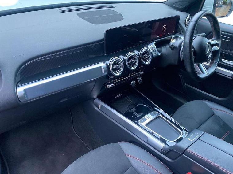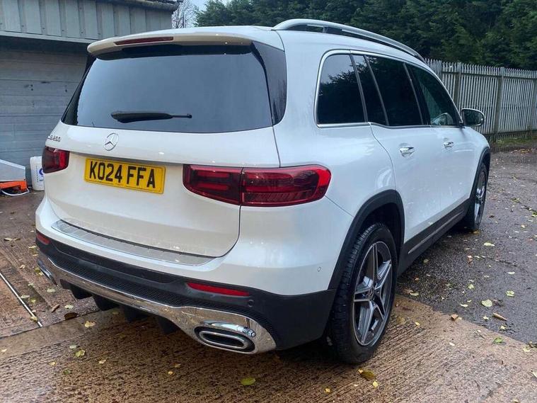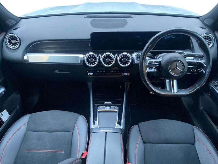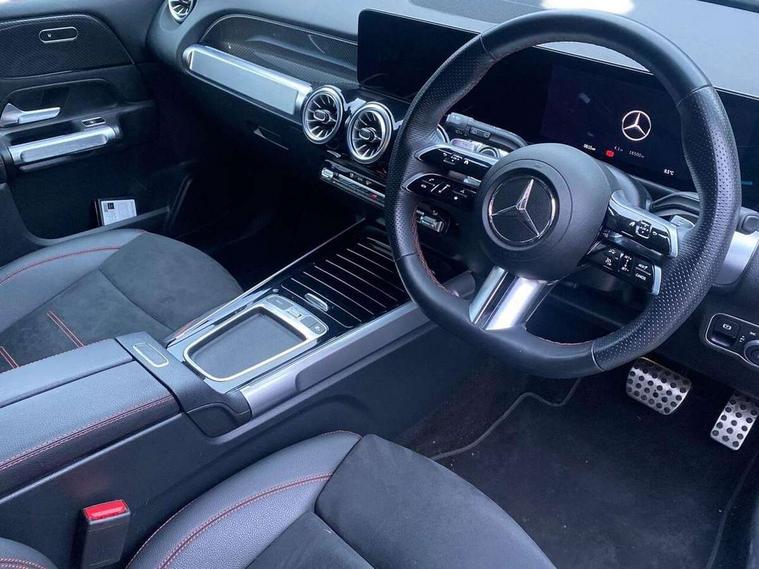 10.25 inch touchscreen central media display, 10.25" Digital instrument cluster display screen, 12 ultrasonic sensors in front and rear bumpers, 180 degree reversing camera with parking guidelines, Assisted parking: reversing backwards into perpendicular and parallel parking spaces, Attention assist - Monitors steering behaviour and long journey fatigue, Bluetooth connection, Brake pad wear indicator warning light, Car wash mode, Convenience opening and closing, Direct steering, DYNAMIC SELECT with a choice of driving modes (ECO, Comfort, Sport and Individual), ECO start/stop function, Engine start/stop button, Fluid level warning indicator for fuel, oil, coolant and washer fluid, Hard disk navigation, Hey Mercedes Voice activation, Lamp failure indicator, Lane keep assist, MBUX navigation premium, Mercedes me connect including emergency call system, accident recovery, breakdown and maintenance management, Mercedes me remote services, Outside temperature gauge, Owners manual and service booklet in English, Pre-installation of private car share, Preinstallation for parking damage notification, Radio aerial integrated into front and rear windshields, Remote boot closing, Service indicator (ASSYST), Smartphone integration with Apple CarPlay and Android auto, Speed limit assist, Tailgate, Trip computer in multifunction display with current consumption indicator, Ultrasound sensors - positioned in the handle of the tailgate, Wireless charging, Comfort suspension with ride height lowering, Rear axle multi-link, 1 USB-C port in the oddments compartment (Charge + Data transfer), 2 USB-C ports for the rear on the centre armrest (Charge only), 2 USB-C ports under the front centre armrest (Charge + Data transfer), DAB digital radio tuner, MBUX multimedia system, Mercedes Benz sound system (100 W) with 6 speakers, Pre installation for Mercedes Benz Link, Adaptive brake lights, Adaptive high beam assist, AMG front apron with front splitter in the colour of the vehicle with chrome trim element, AMG rear apron with visible tailpipe trim and chrome trim element, AMG specific/dual flow exhaust pipes in chrome (non-functional), Auto dimming rear view mirror, Beltline trim and window line trim strip in high gloss aluminium, Black grained side sill trim with chrome inlay, Body coloured door handles, Electric adjustable and heated door mirrors with integrated LED side indicators, Electric folding door mirrors, Front and rear electric windows, Headlamp assist automatic headlamp activation, Heat insulating dark-tinted glass starting from B-pillar, Heated glass rear windscreen + timer control, High level LED third brake light, Interior mirror with black reading lamps and frameless, LED high performance headlamps with integrated LED daytime running lights, LED tail lamp, Polished aluminium roof rails, Radiator grille as a diamond grille with chrome pins and central Mercedes star, Rain sensor windscreen wipers, Rear fog lamp, Rear side wing doors, Rear wiper, Single louvre in matt grey with chrome inserts and black highlights, Two visible tailpipe trim elements exhaust, Ultrasonic sensors - positioned in the front and rear bumpers, Wheel arch liners in the colour of the vehicle, 12V socket in the oddments compartment, 3 seat bench in 2nd row, 3 twin spoke flattened multifunction steering wheel in nappa leather - horizontal twin spoke in high gloss black, vertical twin spoke in silver chrome, 4 way adjustable lumbar support, 40:20:40 split folding rear seats, Air vents with silver chrome surrounds, AMG floor mats, AMG sports pedals with brushed stainless steel surfaces and black rubber studs, Automatic child seat recognition sensor, Black roof lining, Door handles with chrome inserts, Fluorescent jacket, Front and rear headrests, Front centre armrest with stowage, Galvanised steering wheel gearshift paddles in silver chrome, Handle recess lighting, Heated front seats, Height adjustable head restraints, Height/reach adjustable steering column, Interior lighting - 64 colour Ambient lighting, Luggage net on driver/front passenger seat backrest, Single front passenger seat, Sports seats, Stowage compartment with retractable cover, Sun visors with illuminated vanity mirrors, THERMATIC automatic climate control, Third row of seats for two people on rear seat, Twin front cup holders, Two outer rear seat isofix and top tether child seat fixing points, Easy pack tailgate, Interior lighting with light and sight pack - GLB, Seat comfort package - GLB, 3 rear 3 point seatbelts, Active bonnet pedestrain safety measure which detects an impact and raises bonnet by 65mm, Active brake assist includes forward collision warning system with autonomous braking, Adaptive brake assist with hold function and hill start assist, Airbags - kneebag for driver, Anti-lock braking system (ABS) with brake assist, Black seatbelts, Bonnet with power domes, Childproof locks manually operated for rear doors and electrically operated for rear power windows, Crash responsive emergency lighting, Curve dynamic assist, Driver and front passenger head and sidebags, Driver and front passenger windowbags, Dual stage driver and front passenger airbags, Electric parking brake, Electronic stability programme with acceleration skid control, Front and rear seatbelt reminder, Front brake callipers with Mercedes Benz lettering, Front passenger seat occupancy sensor, Perforated front brake discs, Tyre pressure monitoring system, Warning triangle and first aid kit, Guard 360 degree vehicle protection - Anti theft alarm system, tow away protection with visual, acoustic warning and alarm, Interior monitoring system, Keyless Go Access and drive authorisation system, KEYLESS-GO starting function, Remote central locking and crash sensor with emergency opening function, Thatcham category 1 alarm system with immobiliser and interior protection, Vehicle key with KEYLESS GO functionality, Carbon structure trim, 19" AMG 5 twin spoke light alloy wheels aerodynamically optimise