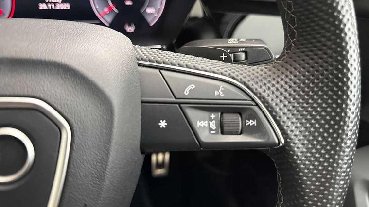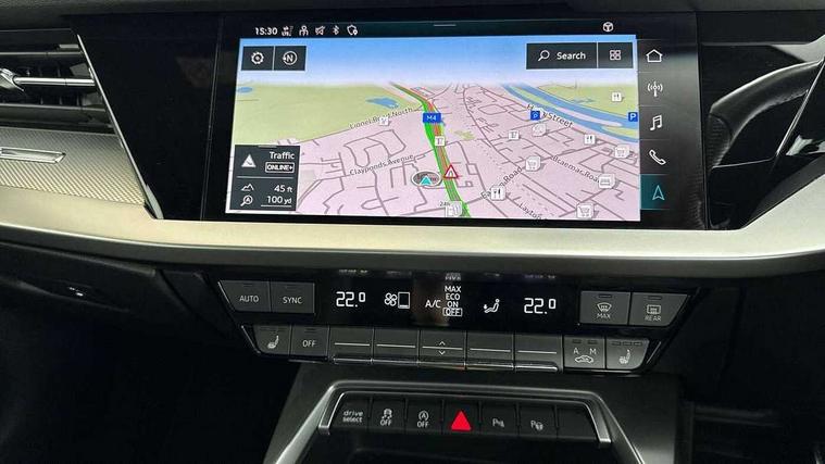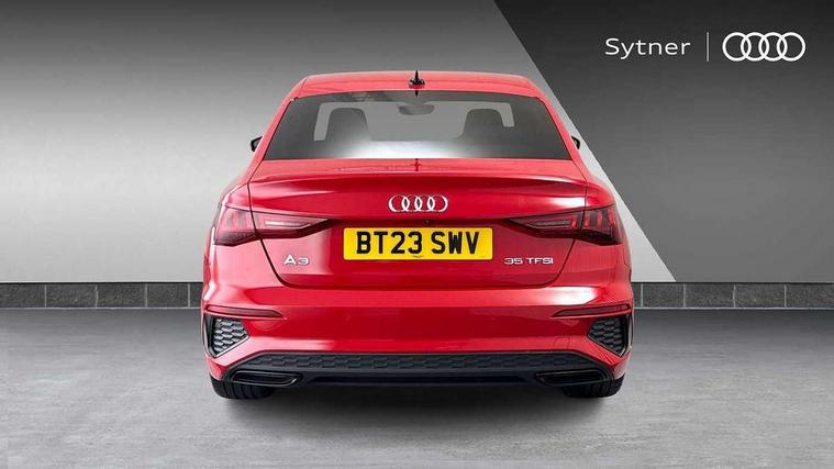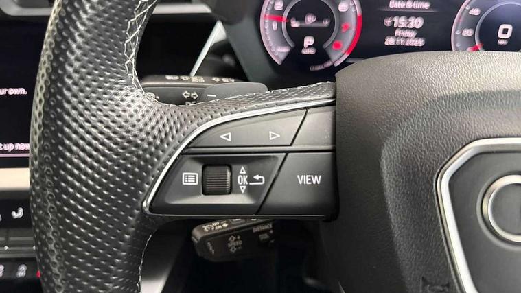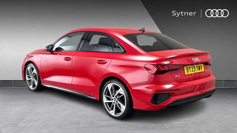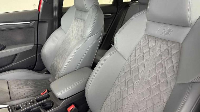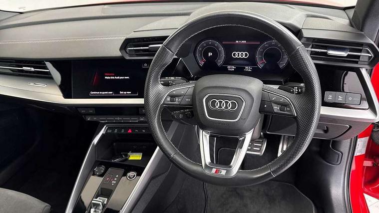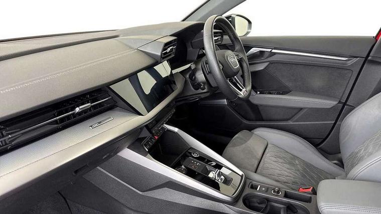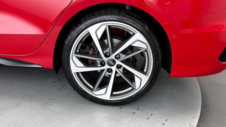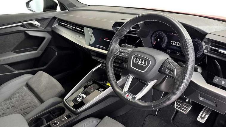 Audi connect emergency call and service, Audi drive select (Auto, Comfort, Dynamic, Efficiency and Individual), Audi smartphone interface, Audi virtual cockpit plus - 12.3" dynamic digital instrument cluster, Automatic start/stop system with recuperation, Bluetooth interface, Collision avoidance assistant, Electromechanical power speed sensitive steering, Lane departure warning system, MMI Navigation Plus with high resolution 10.1" colour touch screen display, Service indicator, Voice control system with natural language interaction, Sports suspension, 2x USB Type C ports (for charging and data transfer), 6 passive loudspeakers, CD player, DAB Digital radio, 3rd brake light, Acoustic glass windscreen, Audi matrix LED headlights, LED rear lights, dynamic front and rear indicators and headlight cleaning system, Auto dimming frameless rear view mirror, Electrically adj heated/folding + automatically dimming exterior mirrors + automatic kerb side function for passenger side exterior mirror, Front electric windows, Illuminated door sills with aluminium inserts at the front with S logo, Integrated LED indicators in door mirrors, LED daytime running lights, Light and rain sensors, Model and engine designation badges at rear, Privacy glass - dark tinted rear window, rear door and side windows, Rear boot, Rear electric windows, Rear side wing doors, S roof spoiler, 12V socket and storage compartment in front centre console, 3 seat bench in 2nd row, 4 way electrically adjustable lumbar support for driver and front passenger, 40/20/40 split folding rear seat bench with cupholder, Black cloth headlining, Dual zone electronic climate control, Electrically adjustable front seats, Front and rear centre armrest in leather, Front and rear headrests, Front/rear floor mats, Heated front seats, Height and reach adjustable steering wheel, Illuminated vanity mirror, Interior lighting - glove compartment light and right hand side, Luggage compartment floor covering, Manual boot compartment lid, Single front passenger seat, Stainless steel pedals and front footrest in black, Aluminium interior elements pack - A3, Black styling pack - A3/S3, Dinamica microfibre/mono.pur 550 artificial leather pack - A3 Saloon, Extended ambient lighting pack - A3/S3 Saloon, LED interior lighting pack - A3 Saloon, 3x3 point rear seat belts, Driver and front passenger airbag with passenger airbag deactivation, Electronic Stabilisation Control (ESC) including ABS, ASR and EDL, First aid kit with warning triangle and 2 safety vests, Front side airbags with head airbags and interaction airbag, Hill hold assist, Pre-sense front with pedestrian and cyclist detection, Seatbelt monitoring, Tyre pressure loss indicator, Anti theft alarm, Anti-theft wheel bolts, Electronically operated child locks, Immobiliser, Remote control central locking, Aluminium air vent surrounds, Aluminium trim elements, Dark spectrum aluminium inlays, accent surfaces in the dashboard and centre console in platinum grey silk effect paint finish, 19" 5 arm trapezoid design alloy wheels in matt grey with diamond cut finish,