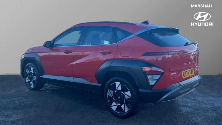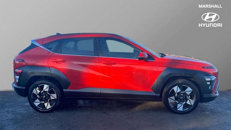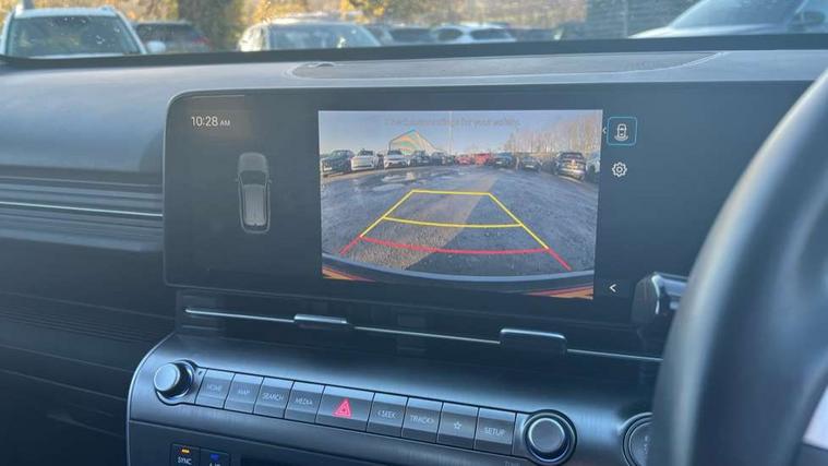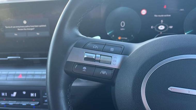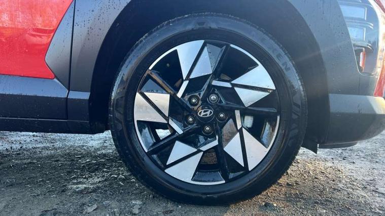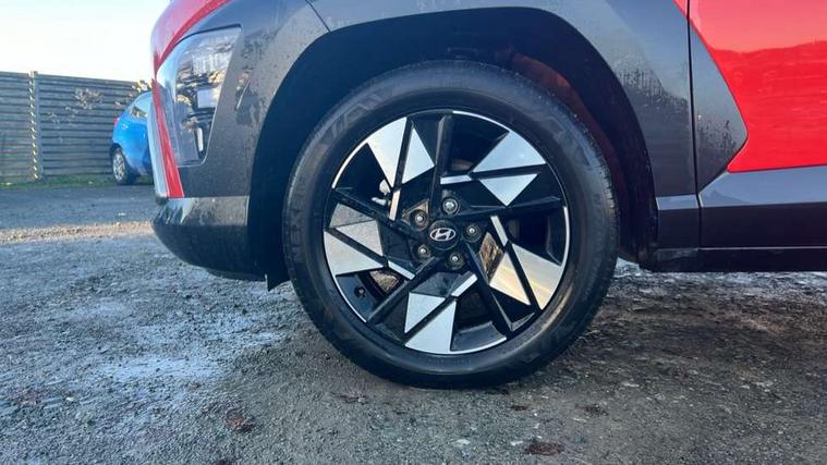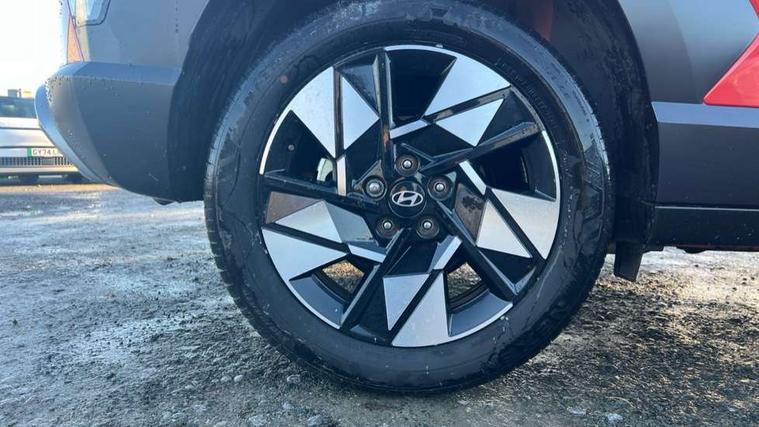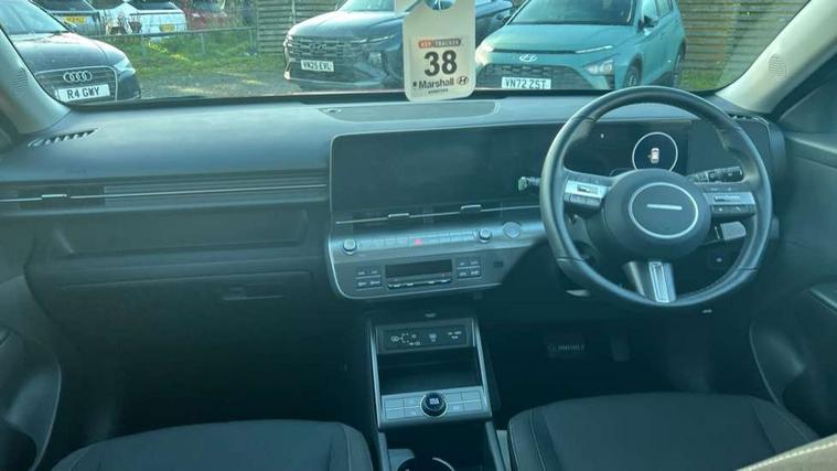 12.25" digital instrument cluster, 12.3" touchscreen centre console display satellite navigation with bluelink, live services and mapcare, Bluetooth connectivity with voice recognition, Driver status monitor (DSM), Driver supervision instrument cluster with 12.3" LCD display, eCall emergency call system, Feature on demand - Enabled, Forward collision avoidance assist (FCA 1.5) - Car, pededstrian, cycle and junction turning, Front parking sensor, HDA - Highway Drive Assist Level 1.5, Intelligent speed limit assist, Lane follow assist, Lane keep assist, Leading vehicle departure alert (LVDA), Parking system with rear camera and guidance system, PAS, Rear parking sensor, Rear view camera with dynamic guidelines, Roadside assistance, Smart cruise control with stop and go functionality, Wireless Smartphone Integration includes Apple CarPlay and Android auto, 2 front USB C and 2 rear USB C charging points, DAB Digital radio, Speakers - Front, rear and tweeters, Steering wheel audio, phone and cruise controls, Auto dimming rear view mirror, Automatic headlights with dusk sensor, Automatic windscreen wipers with rain sensor, Black painted wheel arch inserts, Body colour exterior door handles, Body coloured door mirrors, Door mirror LED indicator lights, Electric front windows with anti-trap mechanism and one touch control, Electric rear windows, Electrically adjustable and heated door mirrors, Full LED MFR headlights, LED daytime running lights, LED taillights, LED upper and lower rear lights, Power folding door mirrors, Rear roof spoiler with integrated LED brake light, Rear side wing doors, Rear skid plate - silver, Rear wiper, Roof rails, Tinted glass in front and rear doors, Windscreen auto defog function, 12V power outlet in front console, 2 zone climate control, 3 seat bench in 2nd row, Adjustable head restraints, Cloth upholstery, Driver and passenger front seat pockets, Driver's seat lumbar support, Driver/passenger manual seat height adjustment, Driver/passenger sunvisors and illuminated vanity mirrors, Floor mats, Height/reach adjustable steering column, Leather steering wheel, LED centre interior light, LED front interior light, Luggage compartment LED lighting, Luggage shelf, Metal paint effect interior door handles, Rear centre armrest with cupholders, Shift by wire SBW, Single front passenger seat, Vertical adjustment rear head restraints, Trailer wiring package - Kona, Airbag - front, front side, curtain and centre front airbag, Anti-lock brake system (ABS), Childproof rear door locks, Downhill brake control, Electric parking brake, Electronic stability control, Fixed 3 point for second row centre passenger seatbelt, Hill start assist control (HAC), Rear seat alert, Tyre pressure monitoring system, Alarm/immobiliser, Rear occupant alert, Remote central locking, Smart key with keyless entry and start/stop button, Five year annual vehicle health checks, 18" Alloy wheels, Temporary mobility kit (TMK),