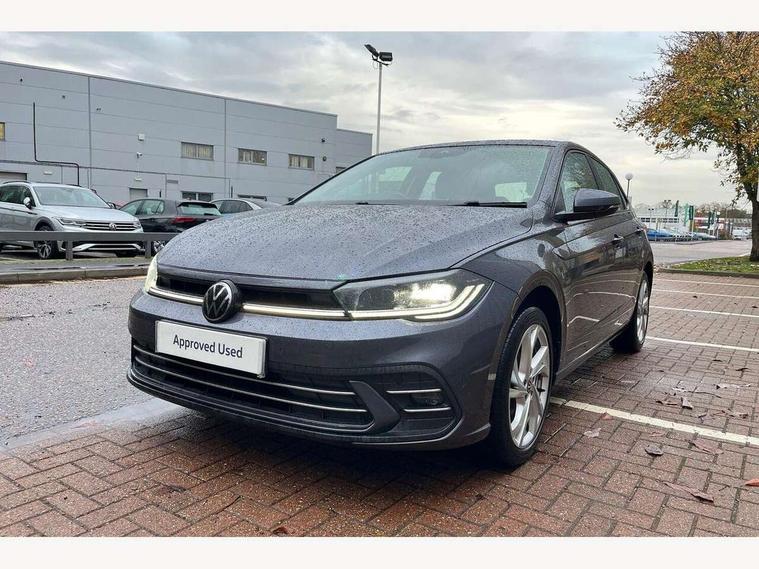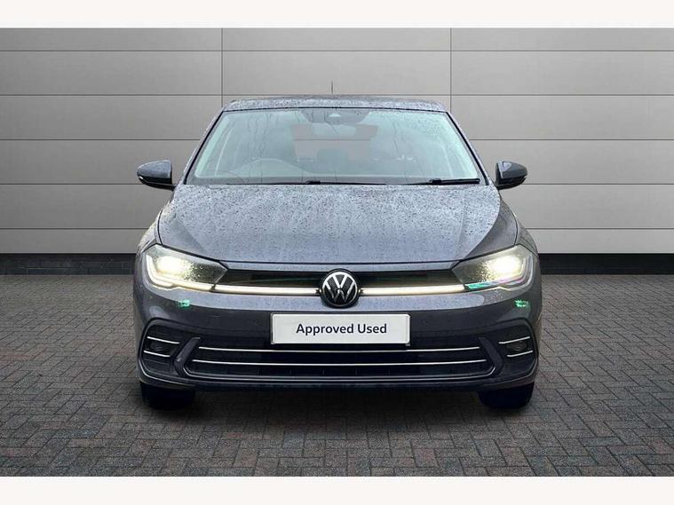 Adaptive cruise control without follow-to-stop and speed limiter, Bluetooth mobile phone interface, Digital Cockpit Pro with 10.25" Display, Driver alert system, Dynamic road sign display, Emergency call service, Power assisted speed sensitive steering, Preparation for We connect and We connect plus, Speedo and rev counter, electronic odometer, trip, service interval display and fuel gauge, Standard rear axle, Travel Assist - Lane keeping system and traffic jam assist, Travel assist including emergency assist, Trip computer, Warning signal and warning light for front and rear seatbelts not fastened, Washer fluid level indicator, Wireless app connect, Front wheel drive, Rear shock absorpion, Start-stop system with battery regeneration (recuperation - energy recovery during braking), DAB Digital radio, Diversity antenna for FM reception, Front and rear 6 speakers, Automatic dimming interior rear view mirror, Automatic headlights, Body colour door handles, Body coloured bumpers and radiator grille with chrome trims, Electric front windows, Heat insulating darkened glass in side and rear windows, Heat insulating glass windscreen, LED separate daytime running lights with coming/leaving home function, Power folding adjustable/heated exterior mirrors and front passenger exterior mirror lowering function, Rain sensor, Rear electric windows, Rear fog light, Rear side wing doors, Rear windscreen washer and wiper with interval delay, Third brake light, 12V power socket in centre console, 2 USB-C ports in the front, 2 USB-C charging sockets on the center console in the rear, 3 rear head restraints, 60/40 split folding rear seat and rear seat bench not split, Air care climatronic air conditoning system with active combination filter and 2-zone temperature control, Ambient lighting, Ceramique headliner, Chrome plated radiator grille inserts, air vent surrounds and light switch surrounds, Door and side trim panel, Driver and front passenger seat height adjustment, Driver/passenger sunvisors with illuminated vanity mirrors, Front + rear carpet mats, Front centre armrest, Front footwell illumination, Front seat backrest storage pockets, Front sports comfort seats, Handbrake lever handle in leather, Isofix child seat preparation easy-fit (for two outer rear seats, and front passenger seat) compatible with I-size, Leather trimmed gear knob, LED interior light with switch off delay and dimmer, 2 reading lights front and rear, Luggage compartment cover, Luggage compartment floor, Luggage compartment lighting, Lumbar adjustment for front seats, Multifunction steering wheel, Single front passenger seat, Standard pedal cluster, IQ LED matrix headlights pack - Polo, Light and vision pack - Polo, 3 point height adj front seatbelts + pretensioners, 3x3 point rear seatbelts, ABS, Driver and front passenger airbag with front passenger airbag deactivation, Drivers and front passengers safety optimised head restraints, ESC (Electronic stability control) + EDL (Electronic Differntial lock) and ASR (Traction control), Extended and predictive pedestrian/ cyclist protection, Front curtain and side airbags with center airbag, Front disc brakes, Hill hold control, Manual child lock in rear doors, Rear drum brakes, Single tone horn, Tyre pressure loss indicator, Alarm with interior protection, Anti-theft alarm system with interior monitoring, backup horn, and towing protection, Anti-theft wheel bolts, Electronic engine immobiliser, Chrome applications on rotary light, mirror adjustment, window regulator switches, outlet with frame in black, Deep iron gloss decorative inserts in dash and front door panels, Low rolling resistance tyres,