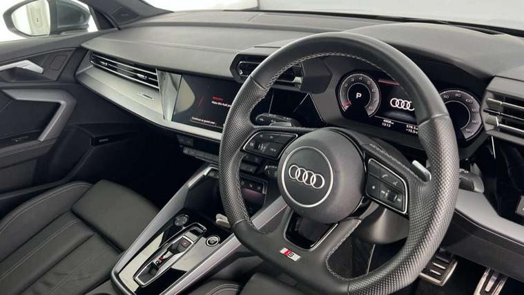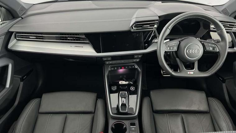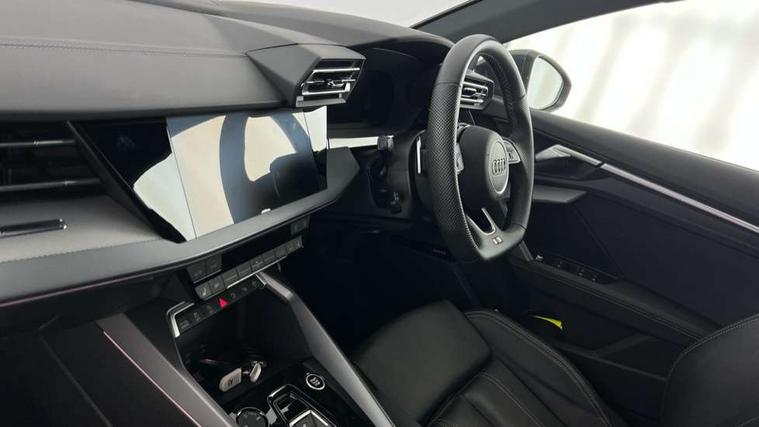 Adjustable speed limiter, Audi drive select, Audi smartphone interface with app store includes wireless Apple carplay, Android auto and Amazon alexa integration, Audi virtual cockpit plus - 12.3" full HD resolution dynamic digital instrument cluster, Automatic start/stop system with recuperation, Bluetooth interface, Camera based traffic sign recognition, Collision avoidance assistant, Cruise control, Distraction and Fatigue warning, e-Call (emergency call), Electromechanical power speed sensitive steering, Emergency assist, Lane departure warning system, MMI Navigation Plus with high resolution 10.1" colour touch screen display, Park Assist with parking system Plus, Service indicator, Trip computer, Voice control system with natural language interaction, Sports suspension, Audi Phonebox light with wireless charging, Audi sound system - 10 loudspeakers including centre loudspeaker and subwoofer, DAB Digital radio, USB ports with charging function in the rear, Acoustic glass windscreen, All weather light, Aluminium window trim, Auto dimming frameless rear view mirror, Automatic dynamic range control, Body colour exterior mirrors, Chrome exhaust tailpipes, Dipped beam, main beam, position light and turning light, Electrically adjustable/heated/folding/auto dimming door mirrors with integrated LED indications + kerb view function for passenger side, Exterior model badging, Front and rear side air inlets in grained matt black with dark liquid chrome frame, Front electric windows, Front radiator grill in high gloss dark chrome, Heat insulating glass windscreen, Illuminated door sills with aluminium inserts at the front with S logo, Intersection light, LED 3rd brake light, LED brake lights, LED daytime running x3, LED headlights with LED rear lights and dynamic rear indicators, LED rear number plate lights, LED reverse light, LED tail lights, Light and rain sensors, Manoeuvring light, Motorway light, Privacy glass - dark tinted rear window, rear door and side windows, Rear boot, Rear diffuser and grill in grained matt black with inlay in dark liquid chrome, Rear electric windows, Rear side wing doors, S line bumpers, Side S line emblems on front wings, Side sill trim in dark liquid chrome, Static Cornering lights, 12V socket and storage compartment in front centre console, 3 seat bench in 2nd row, 3 spoke flat bottomed leather multifunction sport steering wheel with gear shift paddles, 3-zone deluxe automatic air conditioning, 4 way electrically adjustable lumbar support for driver and front passenger, 40/20/40 split folding rear seat bench, Black cloth headlining, Black front and rear floor mats, Front and rear centre armrest in artificial leather with contrasting stitching on armrests and instrument panel, Front and rear headrests, Heated front seats, Height and reach adjustable steering wheel, Manual boot compartment lid, Manually adjustable front seats, Rear centre armrest with cupholder, S badging on the steering wheel, Seat side bolsters, Single front passenger seat, Stainless steel pedals and front footrest in black, Twin leather upholstery with front sports seats S embossed logo, Aluminium interior elements pack - A3, Multi-coloured LED interior lighting package with Multi-coloured contour lighting of instrument panel - A3, 3x3 point rear seat belts, Driver and front passenger airbag with passenger airbag deactivation, Electronic Stabilisation Control (ESC) including ABS, ASR and EDL, First aid kit with warning triangle and 2 safety vests, Front side airbags with head airbags and interaction airbag, Hill hold assist, Pre-sense front with pedestrian and cyclist detection, Seatbelt monitoring, Tyre pressure loss indicator, Anti theft alarm, Anti-theft wheel bolts, Electronically operated child locks, Immobiliser, Remote central locking with safelock, Black dashboard, Inlay in dark aluminium spectrum,