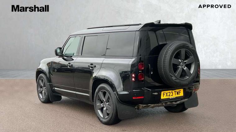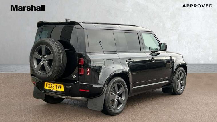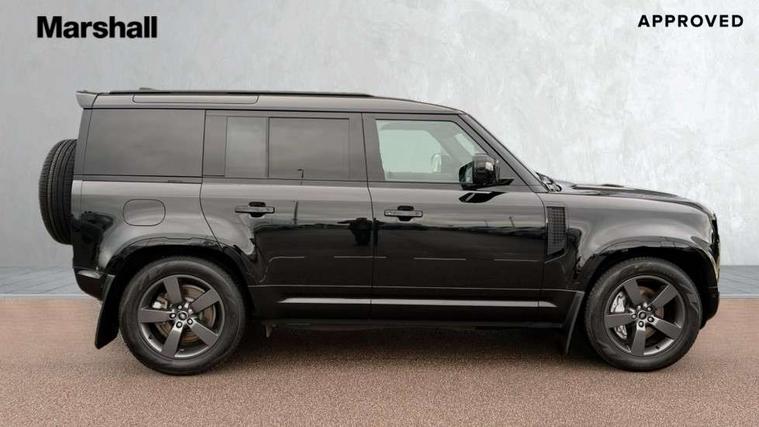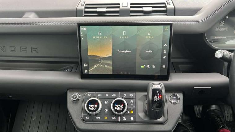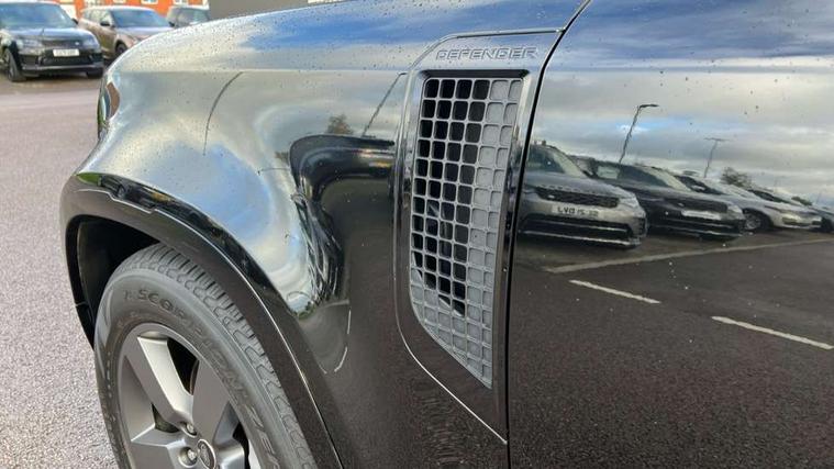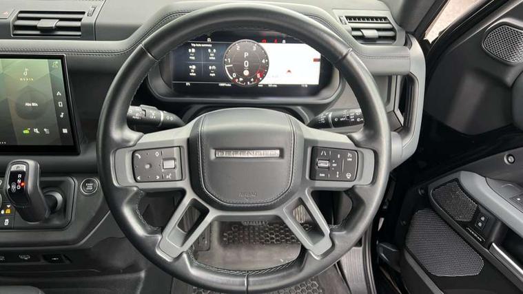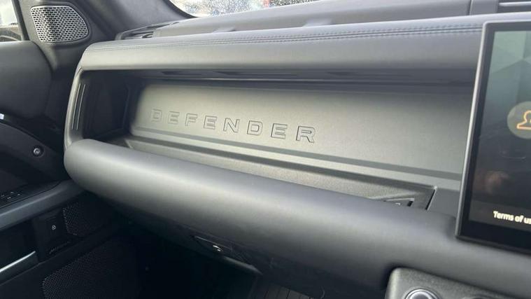 Customer Configurable Autolock, 11.4" touchscreen, 360 parking aid, 3D Surround Camera with 360 View, 180 Rear View, Front Traffic Detection, Forward Vehicle Guidance, Tow Hitch Assist and clear sight Ground View, Adaptive cruise control, Blind spot assist, Brake Hold, Driver condition monitor, Electric power assisted steering (EPAS), Lane keep assist, Low traction launch, Pivi pro connected, Rear collision monitor, Rear traffic monitor, Traffic sign recognition adaptive speed limiter, Trip computer, Tyre pressure monitor, Wade Sensing, Android Auto, Apple CarPlay, DAB Radio (Digital Audio Broadcasting), Meridian 280W sound audio system with 7 speakers with subwoofer, Alpine lights, Assisted tailgate, Auto High Beam Assist, Automatic headlight levelling, Automatic headlights and rain sensitive front wipers, Body coloured exterior Utility Panel, Centre high mounted stop light, ClearSight interior rear view mirror, Electric heated/power fold door mirrors with approach lights and auto dimming driver side, Electric windows with one touch open/close and anti-trap, Follow me home lighting, Front fog lights, Heated rear window with timer, Heated windscreen, LED tail light, Privacy glass, Puddle lights, Rear fog lights, Rear wash wiper, Side-hinged tailgate, Standard roof, X-Dynamic Badge, X-Dynamic Treadplate, 14 way heated and cooled electric adjustable memory front seats with 4 way manual headrests, Additional lashing points, Black exposed rear recovery eyes, Dual zone climate control, Durable rubber cabin flooring, Electric adjustable steering column, Footwell lights, Front jump seat and folding front centre armrest, Front passenger seat ISOFIX points, Full height bulkhead behind row 1 seats, Glovebox storage, High sided rubber mats, Loadspace cover, Loadspace hooks, Loadspace rubber mat, Lockable and illuminated underfloor storage compartment (x1 under boot floor and x1 accessible via rear doors), Overhead stowage for sunglasses, Premium cabin lighting, Rear centre headrest, Rear reading light, Signature graphic, Standard seating configuration, Sunvisors with illuminated vanity mirrors, Twin front cupholders with cover, Upgraded loadspace LED lighting, Online pack - Defender with data plan, Brake pad wear indicator, Electronic traction control, Emergency braking, Front airbags, with passenger seat occupant detector, Power operated child locks, Remote for (e-Call, Optimised assistance call, InControl app, Climate, beep and flash and door), Seat belt reminder, Intrusion sensor, Keyless entry system, Locking wheel nuts, 8 speed automatic transmission, ABS and EBA, All wheel drive, CBC - (Cornering brake control), Dynamic stability control, Electronic brake force distribution, Electronic park brake, Gradient acceleration control, Hill Descent Control, Hill start assist, Particulate filter (DPF), Push button start, Roll stability control, Trailer stability assist, Twin speed transfer box (high/low range), Extended leather upgrade,