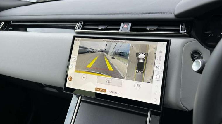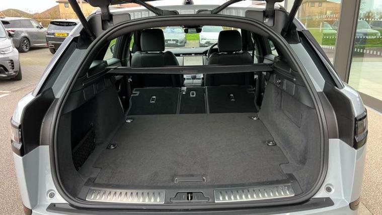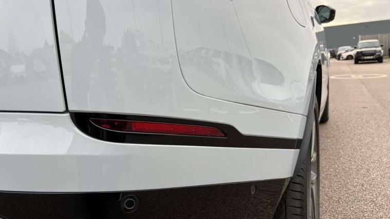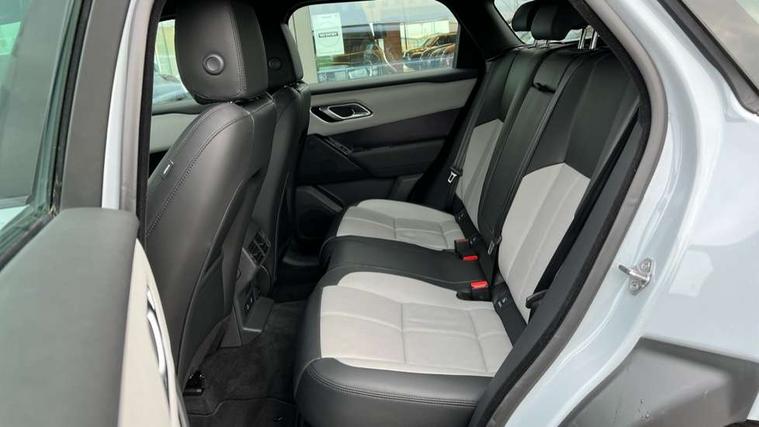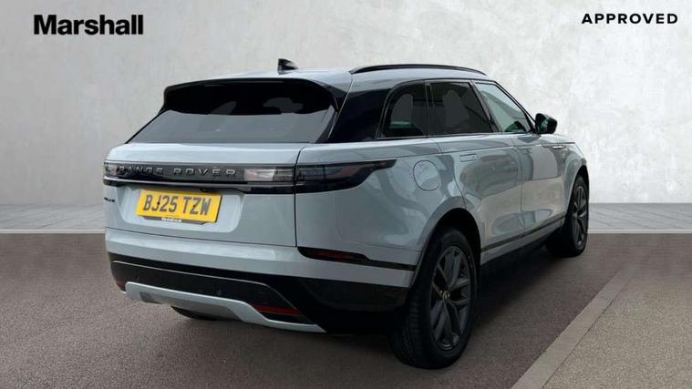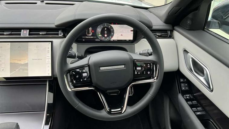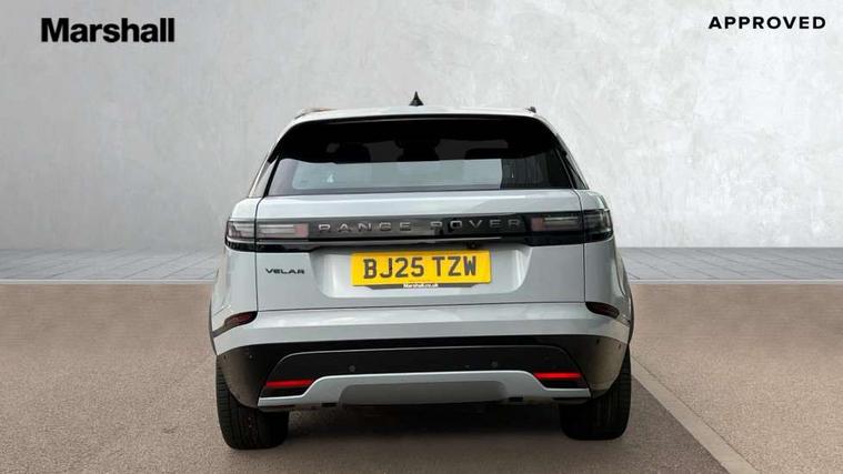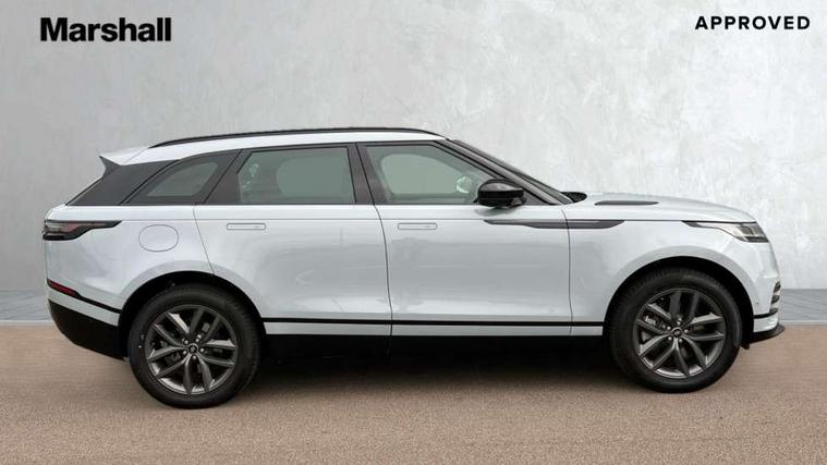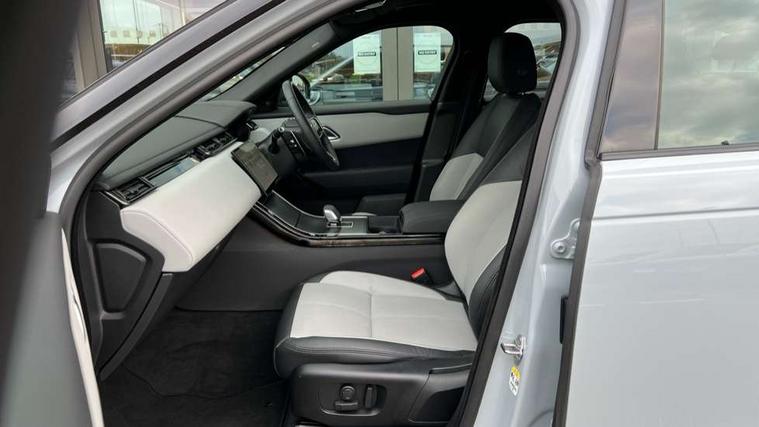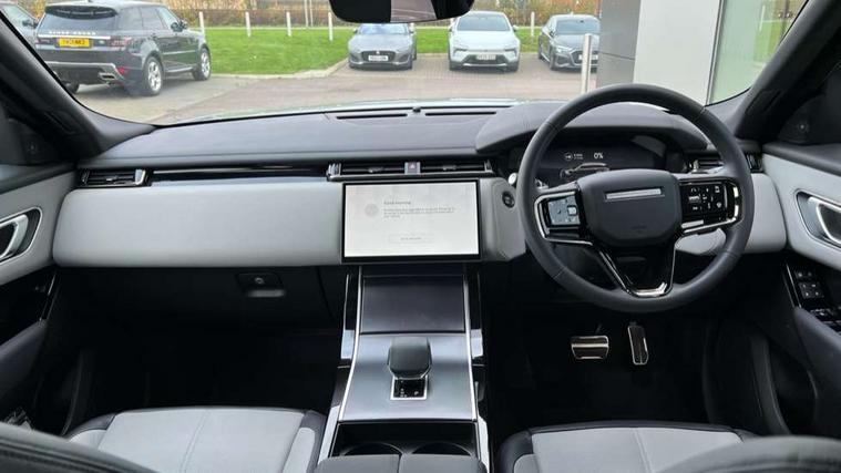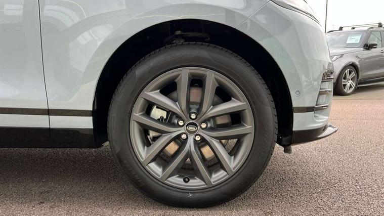 3D surround camera includes forward traffic detection and vehicle guidance, Android Auto, Apple CarPlay, Blind spot assist, Bluetooth connectivity, Brake pad wear indicator warning light, Driver condition monitor, eCall emergency call system, Front and rear parking aid, InControl remote, Land Rover InControl apps, Lane keep assist, Pivi pro with connected navigation, Rear traffic monitor, Service indicator, Speed proportional electronic power assisted steering (EPAS), Traffic sign recognition with adaptive speed limiter, Trip computer, Voice control system, Wade Sensing, Wireless device charging, 7kw on board charger, 8 speed automatic transmission, AC/DC charging, Adaptive dynamics, All terrain progress control, Coil suspension system, Home charging cable, Open differential with torque vectoring by braking, Public charging cable, Single speed transfer box, DAB radio, Steering wheel mounted controls, 3rd brake light, Acoustic laminated windscreen, Auto dimming interior rear view mirror, Auto high beam assist, Automatic headlamp levelling, Automatic headlights, Body coloured bumpers, Boot protection plate, Electric windows with one touch open/close and anti trap, Flush deployable exterior door handles, Follow me home headlights, Heated rear window with timer, Heated washer jets, Heated windscreen, LED headlights with signature DRL, Metal front tread plates, Metal load space scuff plates, Power fold, auto-dimming, heated door mirrors with memory and approach lights, Rain sensor windscreen wipers, Rear animated directional indicators, Rear fog lights, Rear side wing doors, Rear wash/wipe, Tailgate/boot lid spoiler, Trailer stability assist, Velar badge, 14 way electrically adjustable front seats with driver's memory function, 3 seat bench in 2nd row, Ambient lighting, Bright metal pedals, Carpet mats, Driver/passenger sunvisors with illuminated vanity mirrors, Ebony morzine headlining, Electrically adjustable steering column, Heated steering wheel, Isofix system on outer rear seats, Loadspace cover, Overhead lighting console, Overhead stowage for sunglasses, Passive front headrests, Rear air vents, Rear centre headrest, Single front passenger seat, Twin front cupholders, Twin sliding front centre armrest, Online pack with data plan - Velar, Power socket pack 2 - Velar, 380mm front brakes and 325mm rear brakes, 3x3 point rear seatbelts, Anti-lock braking system (ABS), Cornering brake control, Curtain airbags, Customer configurable autolock, Door side intrusion beams, Driver airbag, DSC - Dynamic Stability Control, Electronic brake force distribution, Electronic parking brake, Electronic traction control, Emergency braking, Front and rear seatbelt reminder, Hill descent control, Hill launch assist, Low traction launch, Passenger airbag, Power operated child locks, Rear airbags, Roll stability control, Side airbags, Tyre pressure monitoring system (TPMS), Global lock and unlock switch on driver door, Immobiliser, Intrusion sensor, Keyless entry, Lock only switch on front passenger door, Locking wheel nuts, Perimetric alarm, Remote central locking, All season tyres,