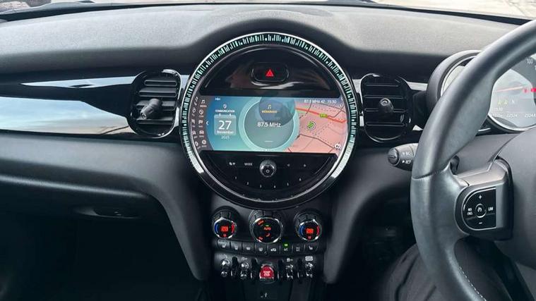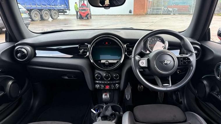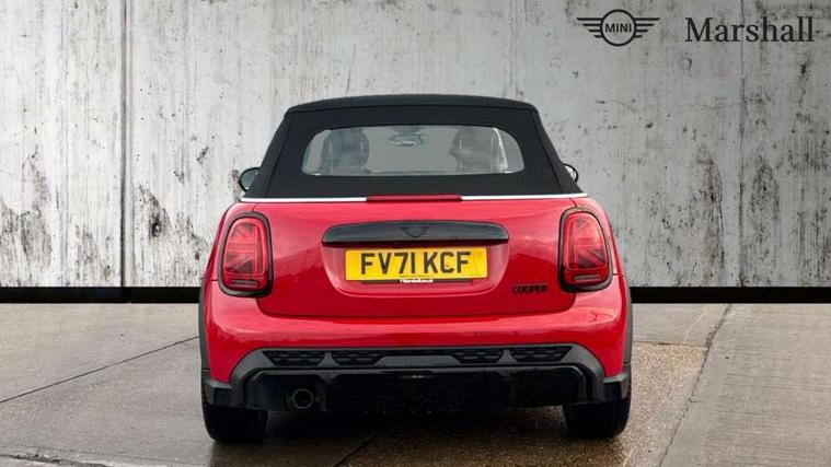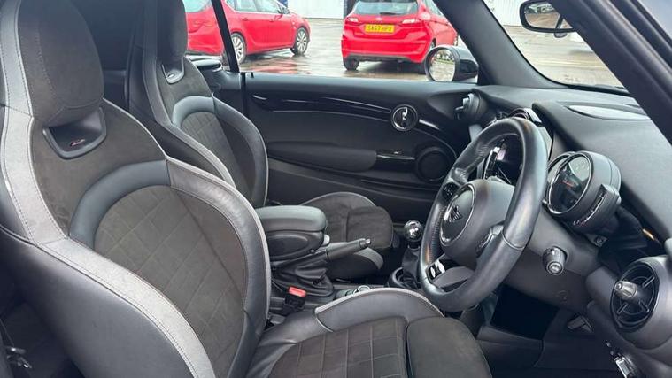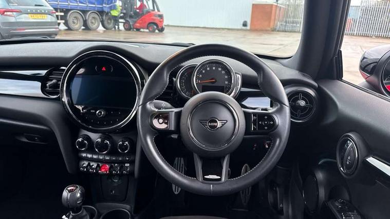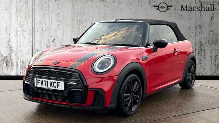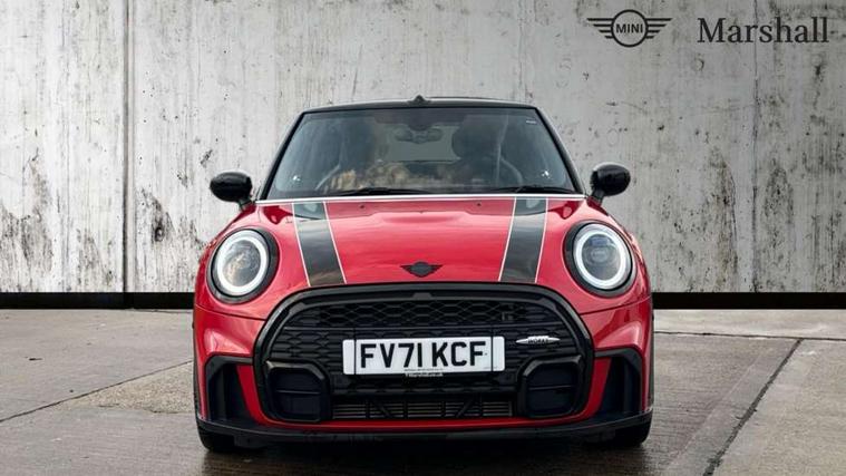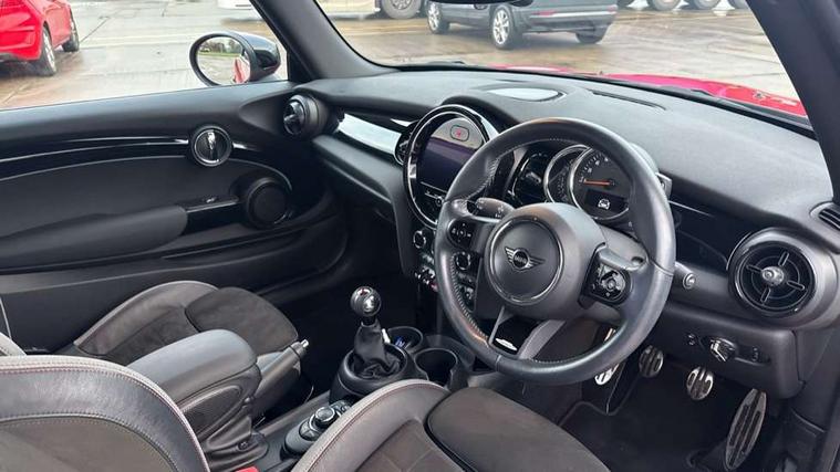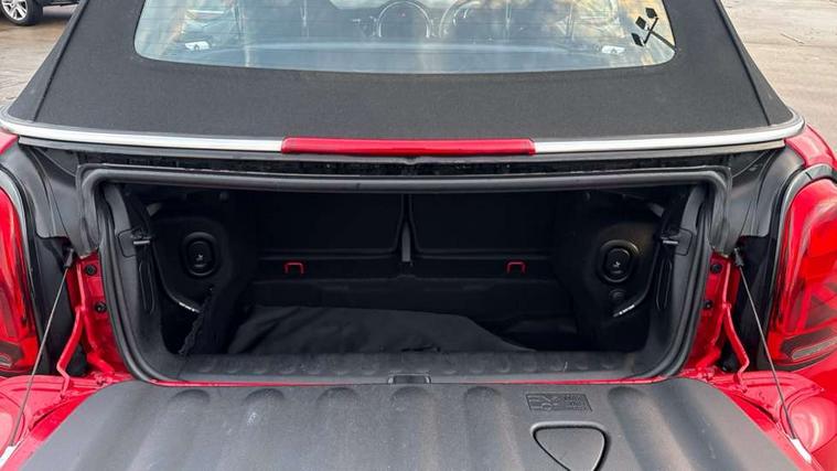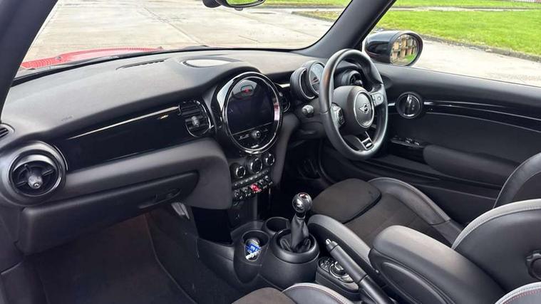 Apple CarPlay, Automatic start/stop function with brake energy recuperation, Compatible mobile phone bluetooth with audio streaming, Cruise control with brake assist, Electro-mechanical speed dependant steering assistance, Instrument cluster, MINI Driving Modes - centre toggle switch to control driving setting (sport, mid and green), Mini E-call, MINI TeleServices, On board computer, Rear park distance control, Service interval indicator, 6 Speed manual transmission including gear change indicator display, Adaptive suspension, Double Vanos system, Fully variable valve control, High precision injection, Performance Control, 8.8" touchscreen with LED ring, FM tuner and DAB digital radio, Automatic headlight activation switch, Body colour fuel filler cap, Chrome border high gloss black slats radiator grille, Dynamic brake lights, Electric windows, Fully electric black softtop with integrated sunroof functionality, Heated rear window, Heated windscreen washer jets, John Cooper Works - aerodynamic kit (front and rear apron, spoiler), front and rear sport bumpers and part-painted side sills with door sill finishers, LED headlight with closed ring and daytime driving lights, Left exhaust tailpipe with chrome finisher, Metal door sill strips with MINI imprint, Model logo Cooper on right of tailgate, Rain sensor window wipers, Rear fog lights, Rear LED lights with union jack design, Side scuttle panel with integrated indicator, Sun/heat protection glass, White indicator lenses, 12V Accessory socket in centre console, 4 lashing eyes in luggage compartment, 50/50 split folding rear seats, Chrome interior highlights, Colour line - Carbon black, Cupholders, Easy Load boot handles, Front and rear isofix with front passenger airbag deactivation, Glove compartment, Height and length steering column adjustment, Interior lighting with 12 different colours running across the dashboard, underneath door bezel illuminated laser engraved design on central display, John Cooper Works walk nappa leather steering wheel with grey seam and John Cooper Works badge on piano black lower steering wheel spoke, Leather gearshift lever and handbrake gaiters, Leatherette integrated headrest, adjustable thigh support with john cooper works logo, LED reading lights, vanity mirror lights, front foot well light and spotlight on front seats, Manual air conditioning, Mechanical seat adjustment, driver seat height adjust, forward/back and front seats backrest, Multifunction steering wheel, Rear head restraints, Sports steering wheel, Storage compartments in doors, Sunvisors with vanity mirrors, Velour floor mats, Convertible pack with comfort access - Mini Convertible, Piano black exterior pack - Mini Convertible, 3 point seatbelts on all four seats, 6 Airbags - front, side and seat belt tensioners, Active rollover protection, Anti-lock braking system (ABS), DSC - Dynamic Stability Control, Front and rear disc brakes, Hill start assist, Single tone fanfare horn, Tyre pressure monitoring system, Alarm system with tilt sensor, monitoring doors, bonnet interior and tailgate, Electronic vehicle immobiliser, Keyless Go, Piano black interior trim, Tool kit,