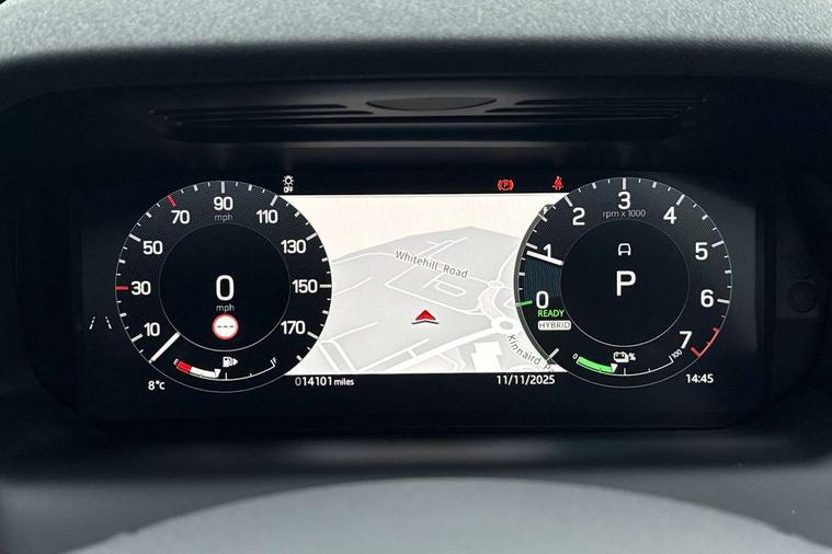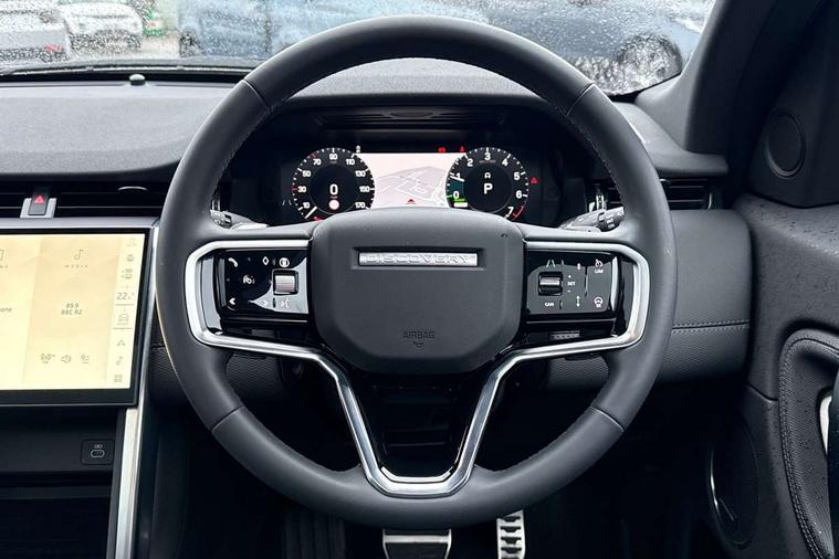 11.4" touch screen, Adaptive cruise control, Android Auto, Apple CarPlay, Driver condition monitor, eCall emergency call system, Front and rear parking aid, InControl remote premium, Interactive driver display, Lane keep assist, Locking fuel flap, PAS, Pivi Pro connected navigation system with upgraded Infotainment, Powered tailgate/boot lid, Push button start, Service interval indicator, Traffic sign recognition with adaptive speed limiter, Trip computer, Wireless device charging, 7 kW onboard charger, All terrain progress control, Coil suspension system, Dynamic stability control, Home charging cable, Public charging cable, Terrain Response 2, Bluetooth connectivity including audio streaming, Digital Audio Broadcast radio-DAB, Steering wheel mounted audio controls, 3rd brake light, Auto high beam assist, Automatic headlight levelling, Automatic headlights, Dynamic Exterior Styling, Electric front/rear windows, Electric heated/power fold door mirrors with approach lights and auto dimming driver side, Front and rear recovery eyes, Heated rear window, Heated windscreen including heated washer jets, LED headlights with signature DRL, front and rear animated directional indicators, Metal tread plates with brand name script, P300e badge, Privacy glass, Rain sensing windscreen wipers, Rear fog lights, Rear side wing doors, Rear wing door, Rear wiper, 5 standard seating configuration, Bright metal pedals, Carpet mats, Centre console with armrest, Ebony morzine headlining, Fixed rear seats, Footwell lights, Front and rear 12V with front USB, Front and rear grab handles, Front passenger isofix child seat attachment, Heated front seats, Loadspace cover, Loadspace light, Manually adjustable steering column, Overhead lighting console, Overhead stowage for sunglasses, Rear headrests, Row 2 USB x 2 and row 3 USB x 1, Satin chrome gearshift paddles, Sunvisors with illuminated vanity mirrors, Twin front cupholders with cover, Online pack with data plan - Discovery, 3 point seatbelts on all seats, ABS, Brake hold function, Child locks on rear doors, Collision mitigation braking system, Cornering brake control (CBC), Driver/Front Passenger airbags, Drivers knee airbag, Electronic brake force distribution, Electronic parking brake, Emergency brake assist, ESP + traction control, Hill descent control, Hill launch assist, Pedestrian airbag system, Rear seat ISOFIX, Roll stability control, Side and curtain airbags for front and 2nd row seats, Trailer stability control, Tyre pressure monitoring system, Battery Back Up System (BBUS) with tilt sensor, Global lock and unlock switch on driver door, Intrusion sensor, Keyless entry, Locking wheel nuts, Centre stack rails in noble chrome,