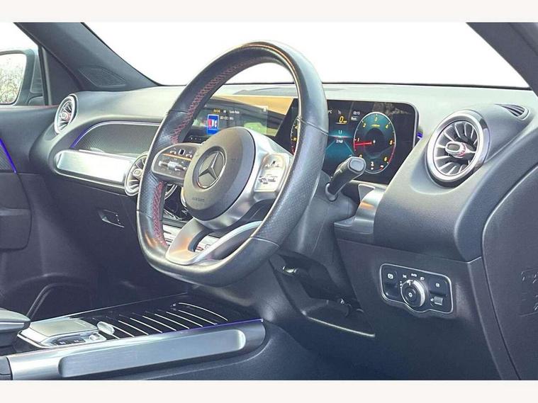 10.25" Digital instrument cluster display screen, 10.25" Digital media screen display, Active lane keeping assist, Attention assist - Monitors steering behaviour and long journey fatigue, Brake pad wear indicator warning light, Car wash mode, Cruise control with limiter, DYNAMIC SELECT with a choice of driving modes (ECO, Comfort, Sport and Individual), Easy-pack tailgate, ECO start/stop function, Fluid level warning indicator for fuel, oil, coolant and washer fluid, Hard disk navigation, Hey Mercedes Voice activation, Lamp failure indicator, MBUX augmented reality for navigation, MBUX multimedia system with DAB digital radio and touchpad including satellite navigation, Mercedes me connect including emergency call system, accident recovery, breakdown management and maintenance, Outside temperature gauge, Owners manual and service booklet in English, Parameter steering system, Pre-installation for Vehicle Monitoring, Pre-installation for Vehicle set up, Pre-installation of private car share, Radio aerial integrated into front and rear windshields, Service indicator (ASSYST), Smartphone integration with Apple CarPlay and Android auto, Speed limit assist, Trip computer in multifunction display with current consumption indicator, Wireless charging, 23.8 litre AdBlue fuel tank, 60 litre fuel tank, Comfort suspension, Rear axle multi-link, DAB digital radio tuner, Mercedes Benz advanced sound system (225 W) with 10 speakers, 1 central speaker, speakers on doors, a tweeter on door, one sub woofer + boost amplifier, Pre installation for Mercedes Benz Link, USB (type C) port in front stowage compartment, USB (type C) ports (2) in stowage compartment, Adaptive brake lights, Aerial for GPS, AMG bodystyling door panels black grained with chrome plated inserts, AMG bodystyling front apron with chrome splitter, AMG bodystyling rear apron with diffuser optics and chrome trim element, AMG specific front and rear bumper including underride guard in high gloss chrome, Beltline strips and weather strip in chrome, Body coloured door handles with chrome insert for keyless entry, Body coloured door mirror caps, Electric adjustable and heated door mirrors with integrated LED side indicators, Exhaust system with dual flow exhaust pipes (non-functional), Front and rear electric windows, Headlamp assist automatic headlamp activation, Heated glass rear windscreen + timer control, High level LED third brake light, Interior mirror with black reading lamps and frameless, LED high performance headlamps with integrated LED daytime running lights, LED tail lamp, Polished aluminium roof rails, Pre-installation for trailer coupling, Privacy glass with dark tinting on rear side windows and rear window, Radiator grille with pins in chrome and single louvre with chrome insert, Rain sensor windscreen wipers, Rear fog lamp, Two visible tailpipe trim elements exhaust, 3 spoke multifunction sport steering wheel in nappa leather, Air conditioning - Two zone thermotronic luxury automatic climate control with display, AMG sports pedals with brushed stainless steel surfaces and black rubber studs, Artico man-made leather/Microfibre Dinamica upholstery with red contrast stitching, Automatic child seat recognition sensor, Black floor mats with AMG lettering, Black roof lining, Fore/aft adjustment rear seats, Freight packaging with tie-down hooks, Front centre armrest with stowage, Front door sills with illuminated Mercedes lettering, Front passenger grab handle with brushed side silver chrome, Galvanished gear shift paddles on steering wheel, Heated front seats, Height/reach adjustable steering column, Interior lighting - 64 colour Ambient lighting, Luggage net on driver/front passenger seat backrest, Net in front passenger footwell, Rear armrest with two integral cup holders for drinks, Sports seats with adjustable head restraints, Stowage compartment in centre console, Stowage compartment with retractable cover, Third row of seats for two people on rear seat, Third row of seats with isofix and top tether child seat fixing points, Touchpad on center console, Twin front cup holders, Two outer rear seat isofix and top tether child seat fixing points, Interior lighting with light and sight pack - GLB, Keyless Go comfort pack - GLB, Mirror pack - GLB, Off-road engineering package - GLB, Parking pack - GLB, Seat comfort pack - GLB, 3 rear 3 point seatbelts, Active bonnet pedestrain safety measure which detects an impact and raises bonnet by 65mm, Active brake assist includes forward collision warning system with autonomous braking, Adaptive brake assist with hold function and hill start assist, Airbags - kneebag for driver, Anti-lock braking system (ABS) with brake assist, Childproof locks manually operated for rear doors and electrically operated for rear power windows, Crash responsive emergency lighting, Driver and front passenger head and sidebags, Driver and front passenger windowbags, Dual stage driver and front passenger airbags, Electronic parking brake, Electronic stability programme with acceleration skid control, ESP curve dynamic assist, Front and rear seatbelt reminder, Front brake callipers with Mercedes Benz lettering, Front passenger seat occupancy sensor, Perforated and ventilated front brake discs, Tyre pressure monitoring system, Warning triangle and first aid kit, Remote central locking and crash sensor with emergency opening function, Urban guard vehicle protection - Anti theft alarm system, tow away protection with visual and acoustic warning and alarm siren, Vehicle key with decorative surround in chrome, Black air vents with chrome surround, Carbon structure trim, 19" AMG 5 twin spoke light alloy wheels painted in tantalite grey with high sheen finish, Summer tyres, Tirefit tyre sealant kit,