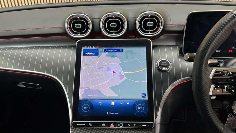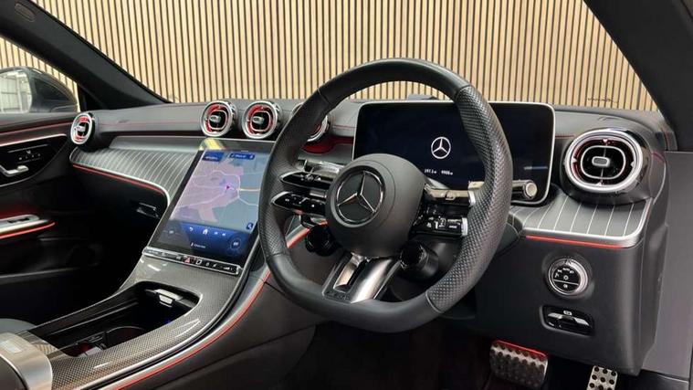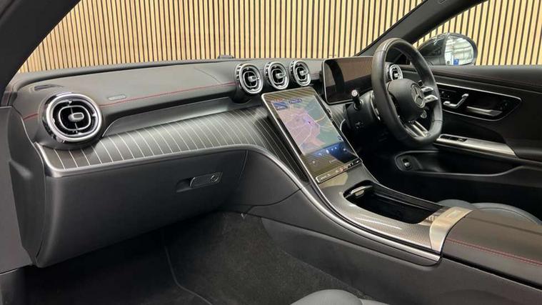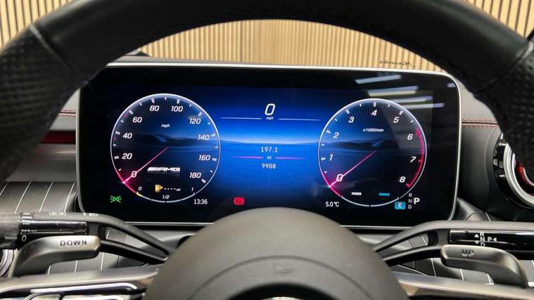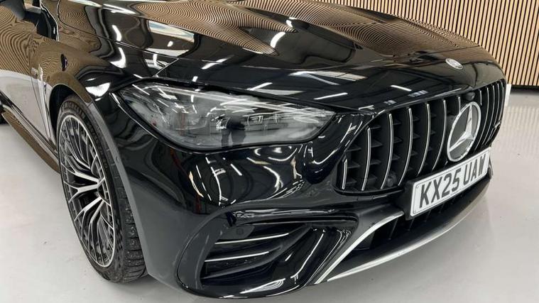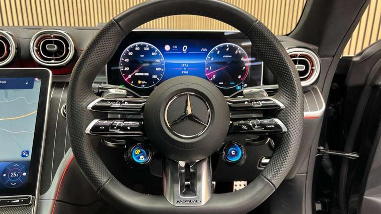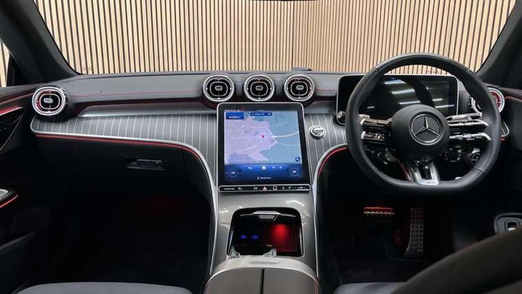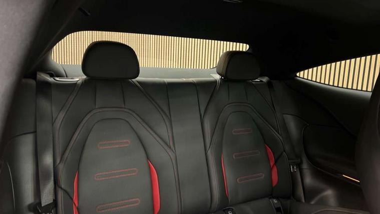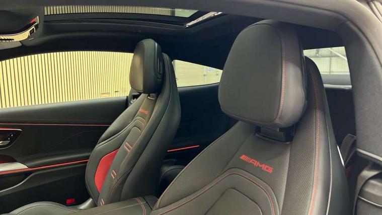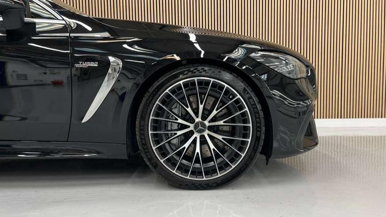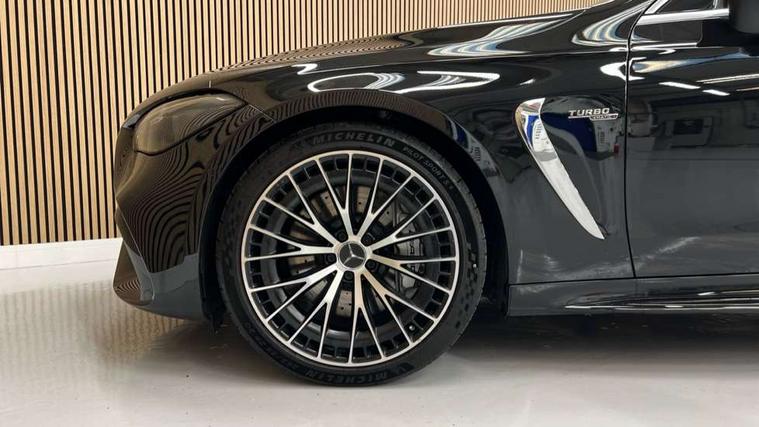 5G Communications module, Active lane keeping assist, Attention assist, Blind spot assist, Bluetooth connection, Boot lid convenience closing via button on boot lid, Car wash mode, eCall emergency call system, Evasive manoeuvre support, Fingerprint scanner, Fluorescent jacket for driver, Fully digital 12.3" driver display screen, Hard-disk navigation, Hey Mercedes Voice activation, High-resolution 11.9" multimedia colour display, MBUX augmented reality for navigation, MBUX navigation premium, PAS, Passive person presence reminder, Rear axle steering, Remote services, Service indicator assist, Smartphone integration with Apple CarPlay and Android auto, Speed limit assist, SPEEDTRONIC cruise control with variable speed limiter, Traffic sign assist, Wireless charging system for mobile devices in the front, 66 litre fuel tank, 9G TRONIC plus automatic transmission, AMG Ride Control suspension with adjustable damping, Integrated starter generator Gen 2, Petrol Particulate Filter (PPF), Digital radio, MBUX extended functions, MBUX multimedia system, Adaptive brake lights, AMG bodystyling, AMG fuel cap, AMG Real Performance Sound, AMG specific radiator grille with vertical struts in high gloss chrome and AMG logo, Auto headlights, Electric windows, Flared wheel arches, Heat insulating dark tinted glass, LED 3rd brake light, LED Day time running light, LED digital light with adaptive highbeam assist plus, LED tail lights, Mercedes AMG exterior, Panoramic sliding sunroof, Rain sensor windscreen wipers, Rear boot, Variable front intermittent wipers, 2 individual rear seats, 2 rear head restraints, 4 way lumbar support, Ambient lighting premium, Ambient lighting with projection of brand logo, AMG floor mats, AMG illuminated door sills with 'AMG' lettering and exchangeable cover, Automatic child seat recognition sensor, Belt feeder, Black fabric roof liner, Folding rear seat backrests, Front headrests, Instrument panel and beltlines in ARTICO manmade leather in nappa look, Mercedes AMG interior, Single front passenger seat, Steering - Sport direct-steer system with speed sensitive steering, THERMATIC automatic climate control, Interior light pack - CLE, Keyless-Go comfort package - CLE, Mirror pack - CLE, Parking package with 360 degree camera - CLE, Stowage space package - CLE, USB package plus - CLE, Active bonnet, Active braking assist, Adaptive brake system with hold function and brake drying function, Anti-lock braking system (ABS), Automatic front passenger airbag deactivation, Braking system with larger brake discs on the front axle, Centre airbag, Driver knee airbag, Driver window airbag, Drivers pelvis airbag, Dual front airbags, Electric parking brake, Electronic Stability Programme (ESP), First aid kit and warning triangle, Front and rear seatbelt reminder, Front side airbags, Hill start assist, ISOFIX child seat attachment points with top tether in rear, Pedestrian protection, Pre Safe system, Rear side airbags, Seat occupancy sensor for rear seats, Tyre pressure monitoring system, Central locking with interior switch, automatic locking and crash sensor with emergency opening function, Dashcam, Guard 360 degree vehicle protection plus, Increased anti-theft protection, Interior monitoring system, URBAN GUARD vehicle protection (Thatcham Category 1) consisting of break-in, anti-theft alarm system (ATA), interior monitoring and tow-away protection, ARTICO leather in dashboard with contrast stitching, Black open-pore aluminium lines wood trim with mixed fabric look metal finish centre console, Tirefit,