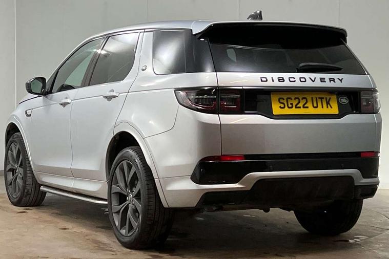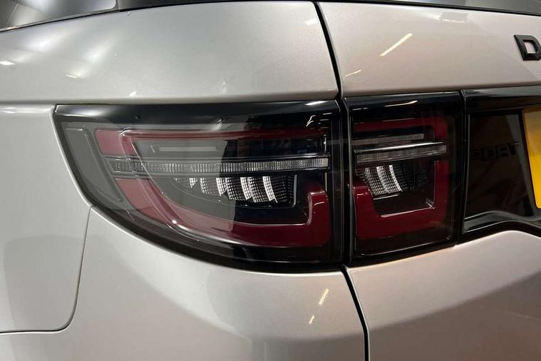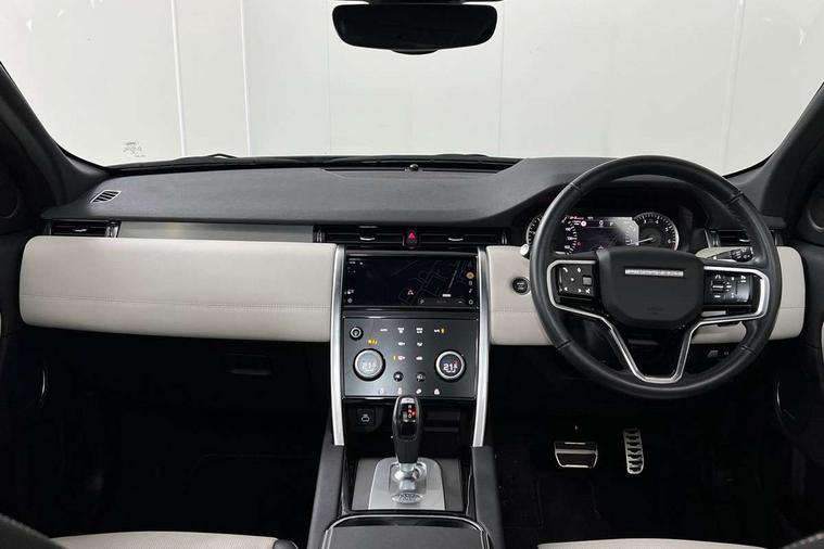 10" touch screen, Adaptive cruise control, Android Auto, Apple CarPlay, Blind spot assist, Clear exit monitor, Driver condition monitor, eCall emergency call system, Front and rear parking aid, InControl remote premium, Lane keep assist, Locking fuel flap, PAS, Pivi Pro connected navigation system with upgraded Infotainment, Powered tailgate/boot lid, Push button start, Rear collision monitor, Rear traffic monitor, Service interval indicator, Traffic sign recognition with adaptive speed limiter, Trip computer, Wade Sensing, All terrain progress control, Coil suspension system, Dynamic stability control, Terrain Response 2, Bluetooth connectivity including audio streaming, Digital Audio Broadcast radio-DAB, Steering wheel mounted audio controls, 3rd brake light, Automatic headlight levelling, Automatic headlights, Electric front/rear windows, Electric heated/power fold door mirrors with approach lights and auto dimming driver side, Fixed panoramic sunroof with powered sunblind, Front and rear recovery eyes, Heated rear window, Heated windscreen including heated washer jets, No badges, Privacy glass, R Dynamic badge, Rain sensing windscreen wipers, Rear fog lights, Rear side wing doors, Rear wing door, Rear wiper, 5 seats, Bright metal pedals, Centre console with armrest, Footwell lights, Front and rear grab handles, Front passenger isofix child seat attachment, Loadspace cover, Loadspace light, Overhead lighting console, Overhead stowage for sunglasses, Rear headrests, Satin chrome gearshift paddles, Sunvisors with illuminated vanity mirrors, Tilt/reach adjustable steering wheel, Black exterior pack - Discovery sport R-Dynamic SE/HSE, Online pack with data plan - Discovery, 3 point seatbelts on all seats, ABS, Brake hold function, Child locks on rear doors, Collision mitigation braking system, Cornering brake control (CBC), Driver/Front Passenger airbags, Drivers knee airbag, Electronic brake force distribution, Electronic parking brake, Emergency brake assist, ESP + traction control, Hill descent control, Hill launch assist, Pedestrian airbag system, Rear seat ISOFIX, Roll stability control, Side and curtain airbags for front and 2nd row seats, Trailer stability control, Tyre pressure monitoring system, Battery Back Up System (BBUS) with tilt sensor, Global lock and unlock switch on driver door, Intrusion sensor, Keyless entry, Locking wheel nuts, Centre stack rails in noble chrome,