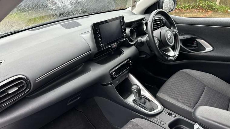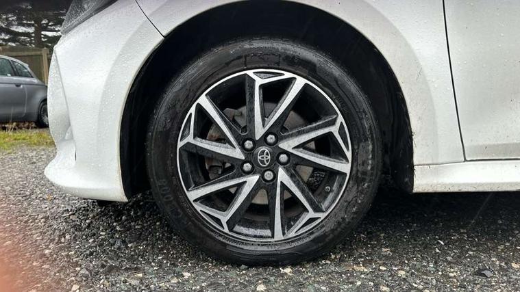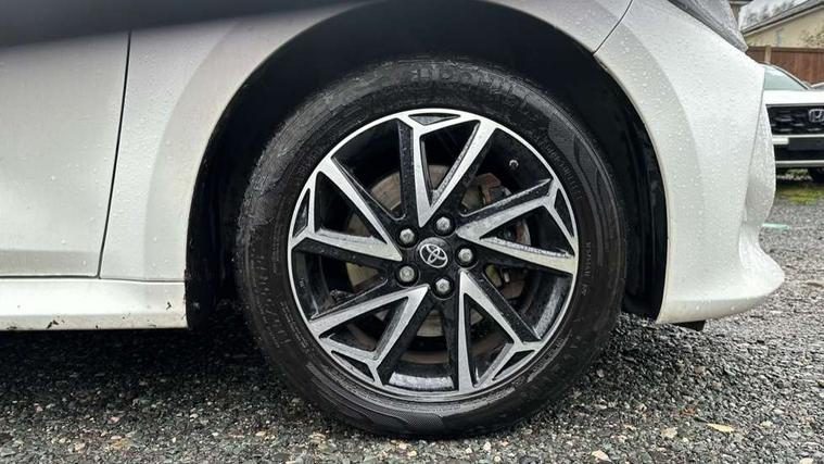 Adaptive cruise control, Adjustable speed limit with speed warning, Bluetooth connectivity, Colour binocular inspired displays with digital speedometer, E-call, Electric power steering, Hybrid energy display, Multi information display switches on steering wheel, Reversing camera, Smartphone integration with Apple CarPlay and Android auto, Tailgate, Voice recognition, Vehicle Stability Control (VSC), 4 speakers, 8" Multimedia display touch screen, USB connection, Acoustic windscreen glass, Auto windscreen wipers, Automatic headlights, Body coloured door mirrors, Electric adjustable heated door mirrors, Follow me home headlights, Front auto power windows with anti jam protection, Full LED rear lights, LED daytime running lights, LED front fog lights, LED front light guide, LED Headlights, LED High mounted stop lamp, LED Indicators, LED rear light guide, Manual headlight levelling, Painted chequered front grille, Rain sensor, Rear auto power windows with anti jam protection, Rear privacy glass, Rear side wing doors, Rear spoiler, Rear wiper, Shark fin antenna, Turning signal integrated indicators in door mirrors, Variable front intermittent wipers, 3 adjustable rear headrests, 3 spoke leather steering wheel, 60/40 split folding rear seat, Active headrests, Adjustable boot height, Auto air conditioning, Coat hooks in rear grab handles, Cup holders (2 front & door), Data Communication Module (DCM) connected services, Fabric upholstery, Front armrest, Glovebox, Grey roof lining, Height adjustable driver's seat, Isofix seat fixing, Leather gearshift, Pollen filter, Shopping bag hooks, Single front passenger seat, Tilt/telescopic steering column, 3 point seatbelts on all rear seats, ABS+EBD+Brake assist, Electronic parking brake, Emergency brake light system (EBS), Front passenger airbag on/off switch, Front seatbelt reminder, Hill start assist control (HAC), Rear child proof door locks, Rear seat belt reminder, Supplemental Restraint System (SRS) 8 airbags: Driver & passenger's airbags, dual side curtain airbags, side impact airbags, front centre airbag, Toyota Safety Sense 2, Precollison + Night time Pedestrian & Cyclist Detection, Lane Trace Assist, Auto High Beam, Intelligent ACC & Road Sign Assist, Tyre pressure warning system, 2x Master key, Alarm/immobiliser, Remote powered central double locking doors, Soft touch instrument panel, Space saver spare wheel,