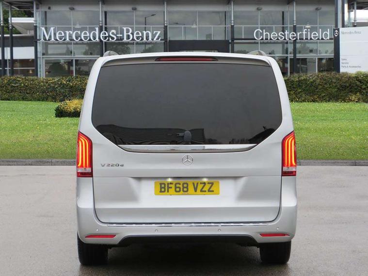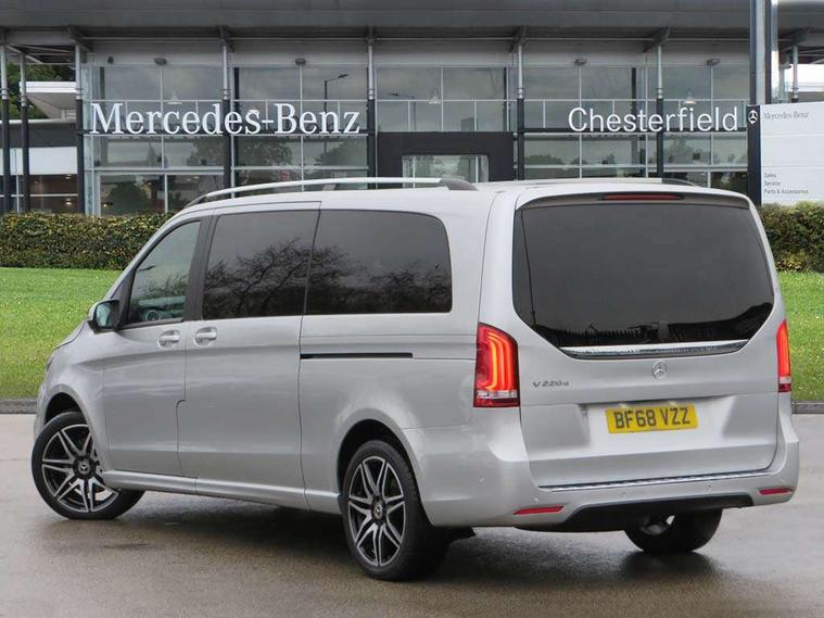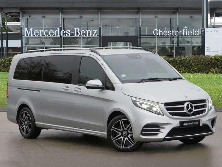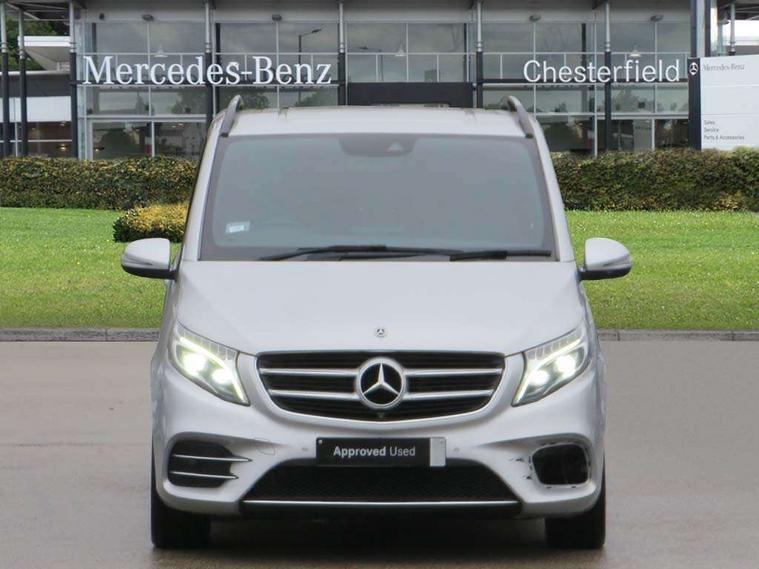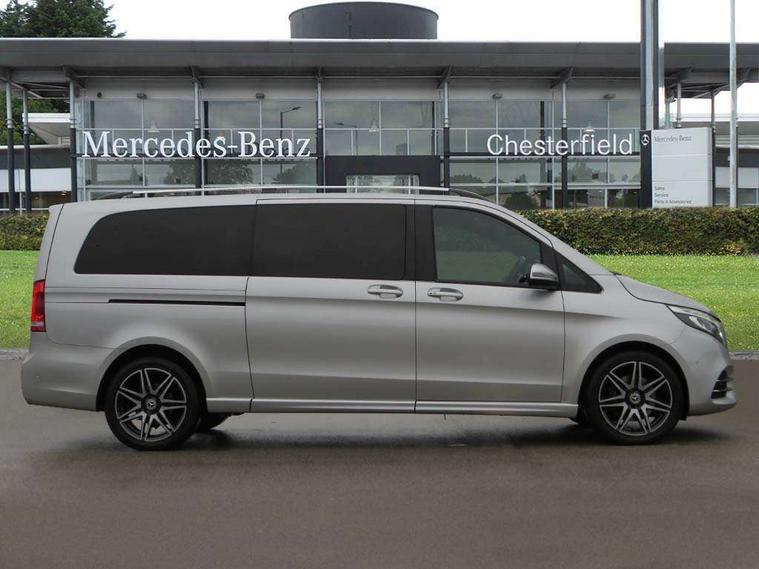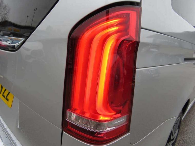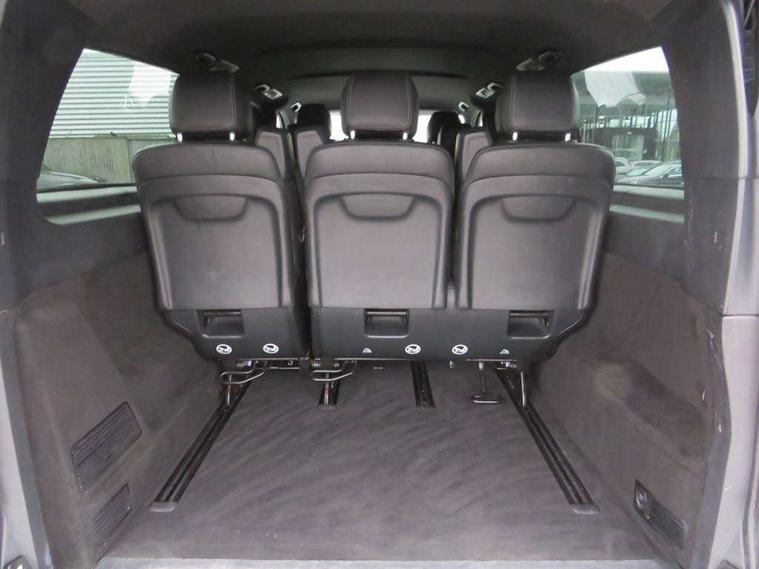 Active parking assist and reversing camera, Agility select with a choice of driving modes (Comfort, ECO, Sport, Individual), Attention assist, Brake wear warning display, Collision prevention assist, Easy-pack tailgate - Powered opening/closing automatically, ECO start/stop function, High resolution 7 inch multimedia colour display, Instrument cluster with 5.5 inch colour display trip computer, Mercedes me connect including emergency call system, accident recovery, breakdown and maintenance management, Outside temperature gauge, Service indicator (ASSYST), Side wind assist system, Speed sensitive steering, Status display for rear seat belts in instrument cluster, 25 litres large AdBlue tank, Agility control comfort suspension, Diesel particulate filter, Audio 20 CD with touch pad + media interface for iPod/iPhone + Bluetooth interface with handsfree function, DAB Digital radio, Integrated radio aerial, Two USB ports and one SD Card slot in centre console, Adaptive brake lights, AMG bodystyling front apron and rear spoiler, AMG bodystyling rear apron and chrome load sill, AMG bodystyling side skirts, Anodised roof rails, Automatic headlamp activation, Black tinted rear windows, Body colour bumpers, Body colour door mirrors, Chrome boot sill trim strip, Electric folding door mirrors + auto dimming rear view + drivers exterior door mirror, Electric front windows, one touch / obstruction sensor, Electric sliding door in both side, Heated door mirrors, Heated windscreen washers, Illuminated front door sill panels with Mercedes-Benz lettering, LED intelligent light system including integral LED daytime running lamps, LED tail lamps/brake lamps and indicators, Metallic paint, Privacy glass, Radiator grille with integral star and two louvres in matt iridium silver, Rain sensitive windscreen wipers, Rear spoiler, Split tailgate in opening rear window with chrome handle, Tailgate wash/wipe, 12V Accessory socket in centre console, 12V socket in boot/load compartment and rear passenger compartment, 2 Isofix seat anchors, 2nd/3rd row height adjustable head restraints, 3 colours ambient lighting, 3 spoke nappa leather steering wheel, Adjustable front seat head restraints, AMG sport pedals, Brushed stainless steel sports pedals with rubber studs, Carpet floor covering in passenger compartment, Driver + front passenger lumbar support, Driver/front passenger seat height adjustment, Electric air heater system - 1.2 kW output, Footwell lighting with reading light and illuminated handle in rear compartment, Front centre armrest, Height/reach adjustable steering column, Illuminated rear door handles, Lockable glovebox, Luxury centre console with retractable cover + two cup holder + 12V socket + multimedia box, Multifunction steering wheel with audio controls and onboard settings, Nappa leather upholstery, Seat occupancy sensor for front passenger seat, Stowage nets behind individual seats, Sunvisors with illuminated vanity mirrors, Thermatic 3 zone automatic climate control, Three stage heated front seats, Anti theft protection pack - V Class, 3 point seatbelts on all seats, Adaptive brake system with HOLD function and brake drying in the wet, Airbags - sidebag for driver and front passenger with combined thorax/pelvis bag, Airbags - windowbag for driver and front passenger, Anti-lock braking system (ABS), Child proof door locks, Electronic parking brake, Electronic Stability Programme, Hill start assist, Perforated front brake discs and brake calipers with Mercedes-Benz lettering, Rear seatbelt warning indicator, Tyre pressure monitoring system, Warning triangle and first aid kit, Central locking with interior switch, Chrome surround in electric key, Carbon trim, Chrome air vent surrounds, Dashboard upper section in artico man-made leather, 19" AMG 7 twin spoke alloy wheels, Space saver spare wheel with jack,