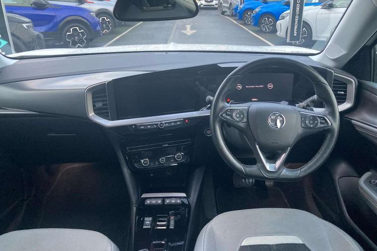 12" digital instrument cluster, Automatic adaptive cruise control, Central facia display with digital clock, outside air temperature and audio information, Driver drowsiness alert system, Engine start/stop button, Exterior temperature display, Front and rear parking distance sensors, Front camera system, Lane keep assist system (LAS) with Lane departure warning system (LDWS), Lane positioning assist, Lights on audible warning, Multi function trip computer, Panoramic rear view camera, Power assisted speed sensitive steering, Side blind spot alert and flank guard, Smartphone integration compatible with Apple CarPlay and Android Auto, Speed sign recognition, Start/stop system, Vauxhall connect with e-Call, 8 speed automatic transmission, Bluetooth A2DP audio streaming function (Advanced audio distribuition profile), Flexible Roof Mounted Radio Aerial, Front USB connection, Mobile phone portal - bluetooth connect, vehicle microphone, handsfree calls, SMS read out and reply, phone book access, Multimedia Navi pro infotainment with satellite nav, 10" colour touchscreen, 6 speakers, DAB radio, 12" instrument panel, Apple carplay/Android auto, Steering wheel mounted controls, Two rear USB sockets, Adaptive brake lights, Automatic lighting control with tunnel detection, Automatically dimming anti dazzle rear view mirror, Black door mirror housings, Black rear roof spoiler, Body colour door handles, Body colour front and rear bumpers, Chrome effect skid plates, Chrome effect upper window moulding, Electrically adjustable, heated and folding door mirrors, Electrically operated front and rear windows with safety auto reverse and one touch up/down facility, Hazard warning lights, Heated rear window+rear wash/wipe, High beam assist, LED 3rd brake light, LED daytime running lights, LED front fog lamps, LED side repeat indicators, LED tail lights, Manual headlamp level control, Rear foglight, Rear side wing doors, Reversing light, Solar heat absorbing windows, Solar heat absorbing windscreen and windows, Two speed rain-sensitive windscreen wipers with variable intermittent wipe, Variable front intermittent wipers, Windscreen and side window demist vents, 12V Accessory socket, 3 seat bench in 2nd row, 3 spoke flat bottomed leather steering wheel with satin chrome bezel, 4 speed fan with illuminated controls, 6 way manual adjustable driver fore/aft, up/down with reclining seatback, 6 way manual adjustable front passenger fore/aft, up/down with reclining seatback, Air recirculation system, Cabin particulate filter - removes dust, airborne particles and pollen, Centre console with two cup holders at front and one in rear, Chrome effect interior door handles, Door pockets with two litre capacity, Driver and passenger sun visors with vanity mirror, Electronic climate control (ECC), Fabric/Leather effect upholstery, Four adjustable facia vents, Four load restraint lashing eyes, Front centre armrest with storage, Front map reading lights, Front seat back storage pockets, Fully carpeted load area, Heated front seats, Heated steering wheel, Height adjustable front/rear head restraints, Illuminated load area, Interior courtesy light, Interior tailgate handle, Luggage compartment cover, Luggage compartment lighting, Reach + rake adjustable steering column, Single front passenger seat, Twin gas assisted tailgate struts, 2x Isofix child seat fitting on outer rear seats, 3x3 point rear seat belts, Anti-lock braking system (ABS), Automatic emergency city braking, Child proof locks on rear doors, Cornering brake control, Deactivation switch for front passenger front and side impact airbags, Drag torque control, Driver and front passenger airbags, front seat side impact airbags, full size curtain airbags, Electronic brake force distribution, Electronic Stability Programme (ESP), Emergency brake assist, Forward collision alert at all speed, Hill start assist, Inertia reel lap and diagonal seatbelts for all seats, Seatbelt unfastened audible warning and warning light, Straight line stability control, Traction control, Tyre pressure monitoring system, Electronically protected audio equipment, Freewheeling door locks, Immobiliser, Key left in ignition audible warning, Keyless entry and start, Locking wheel nuts, Remote control central locking, Remote control ultrasonic security alarm system, Visible vehicle identification number, Atlantis black trim inserts of front doors, Black facia with silver trim insert, Instrument panel bar in Light Gravel, 17" bi colour alloy wheels,