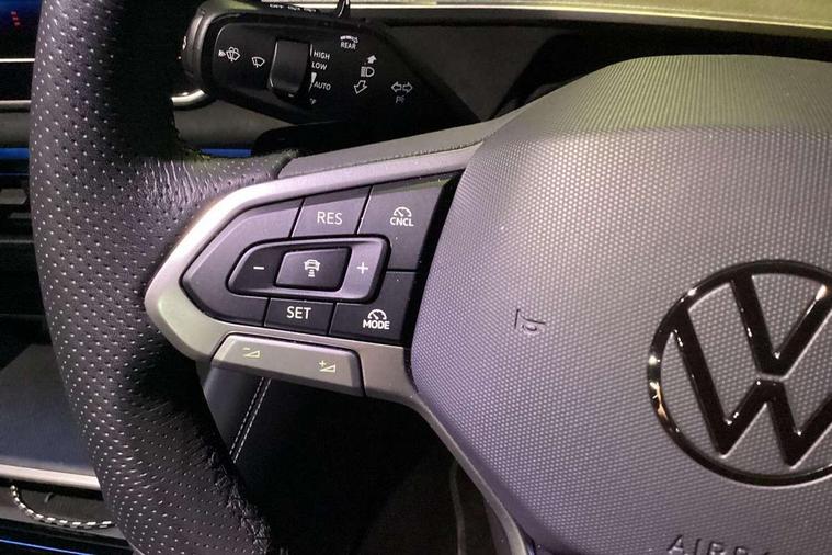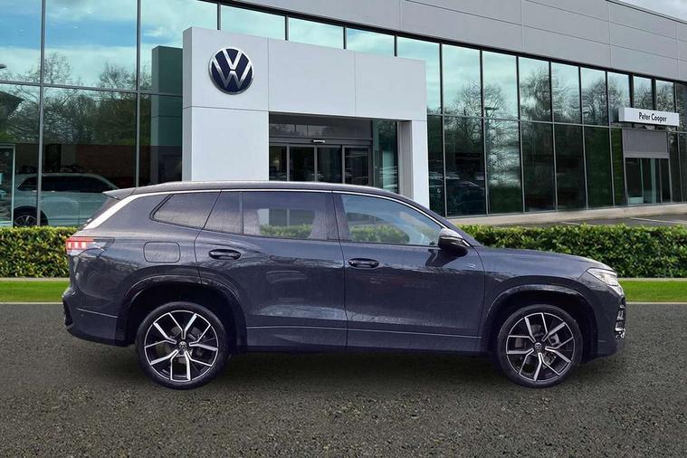 Adaptive cruise control (ACC), Digital Cockpit Pro - 10.25" high resolution dash display screen with customisable menus and information, Driver alert system, Driver attention monitoring system, Dynamic road sign display, E-Sim card for online connectivity, eCall emergency call system, Lane change system, Side assist, Rear traffic alert and Exit warning system, Multifunction front facing camera, Oncoming vehicle braking when turning including swerve support, Start/stop system with regenerative braking, Voice activation spoken voice commands for telephone and navigation system, Warning signal and warning light for front and rear seatbelts not fastened, Wireless App-Connect, Front wheel drive, Digital radio reception (DAB), Diversity antenna for FM reception, Air intake with Chrome trim, Auto dimming interior rear view mirror, Automatic headlight control system, Body colour door handles, Chrome moldings on the side windows, Coming/leaving home lighting function, Dynamic headlight range control with dynamic cornering light, Exterior mirrors convex on the left and aspherical on the right, Heat insulating glass in side and rear windows, Illuminated Volkswagen logo rear with animation, Laminated safety glass winshield, heat insulating, LED 3rd brake light, LED separate signature day time running light, Puddle lights, Rain sensor windscreen wipers, Rear fog light on one side, reversing light on both sides, Rear side wing doors, Rear wiper, Reverse activated passenger's door mirror, Surround lighting with welcome light, Volkswagen logo in front, illuminated lighting animation with wake up/goodbye scenario and illuminated door handles, 10 colour interior ambient lighting, 12V outlet in center console rear and in luggage compartment, 3 rear headrests, 3 rear seat bench in 2nd row, backrest split folding with centre armrest and 2 seats in 3rd row of seats, Black roof lining, Brushed stainless steel pedals, Carpet mats, front and rear, Centre console with illuminated storage compartment with sliding cover and two drinks holders, Chrome elements on the mirror switch and power window switches and door pulls, Door and side trim panel insert in Art velour, Flat luggage compartment floor, Front centre armrest, Front scuff plates in alumium, ISOFIX anchors for child seats on outer rear seats and front passenger seat compatible with i-Size, Mechanical rear seat release, Power adjustable lumbar support in front, Single front passenger seat, Sports comfort seats in front, Sun visors with illuminated vanity mirrors, 3 Point seat belts in front with pretensioners, 3 point seatbelts in outer rear with ECE label, Autonomous emergency braking front assist with pedestrian and cyclist monitoring, Driver and front passenger airbag with front passenger airbag deactivation, Electronic parking brake with auto hold, First aid kit with warning triangle and safety vest, Front and rear curtain airbags, Front and rear side airbags, Front centre airbag, Front disc brakes, Hill start assist, Rear disc brakes, Two tone horn, Decorative material set R-Line, Interior door handle in matte chrome,