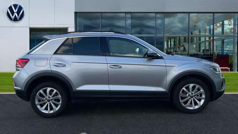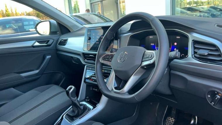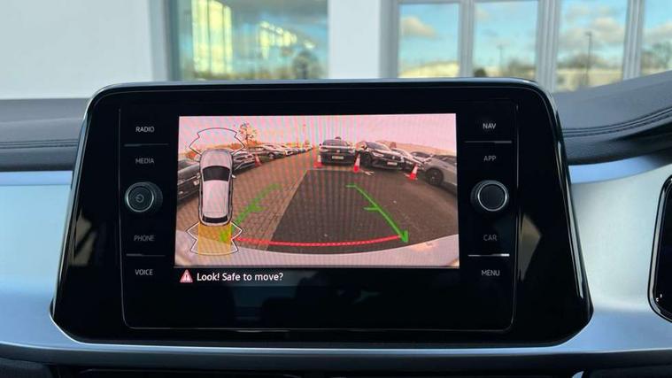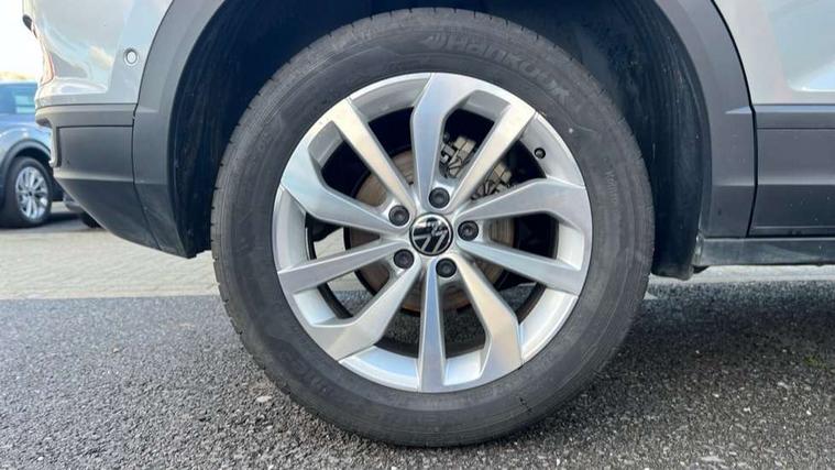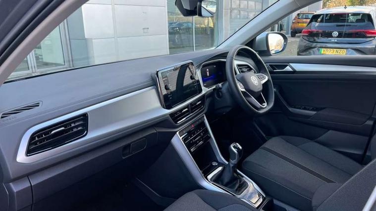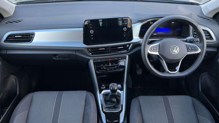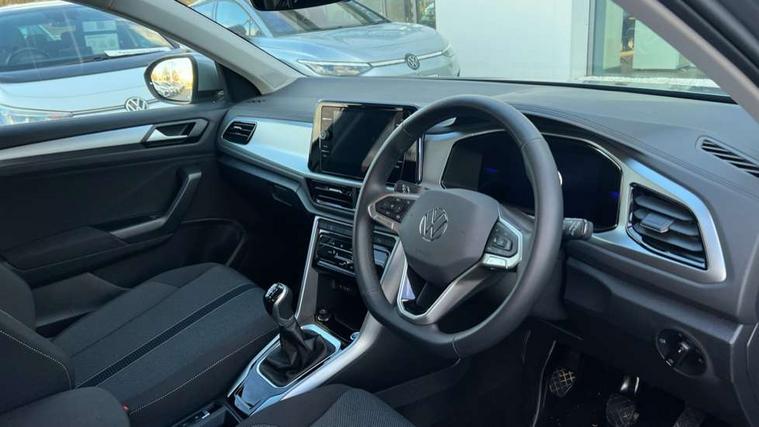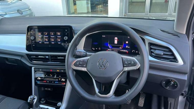 Advanced driver attention and drowsiness monitor, Dynamic road sign display, Emergency call service, Lane keeping system Lane Assist, Mobile phone interface, Modified key software - reduce switch off time for key status change to Long no motion, Online services, Park assist including front and rear parking sensors, Power assisted speed sensitive steering, Rear view camera, Service interval indicator, Tailgate/trunk lid release from outside, Think blue trainer driver tips and journey analysis, Warning sound and light for front seatbelts unfastened, Wireless app connect, Battery regeneration during braking, Front shock absorption, Rear shock absorption chassis with increased ride height, Start/stop function with battery regeneration, DAB Digital radio, Diversity antenna for FM reception, Music playback - MP3, WMA and AAC files, Premium USB cable in choice of either Apple or Android smartphone compatibility, SD card slot, Simultaneous pairing of 2 compatible mobile devices, Title and cover art display, We Connect and We Connect Plus functionality, Auto dimming interior rear view mirror, Automatic hazard lights activation under emergency braking, Automatic headlight control with LED separate daytime running lights with coming/leaving home function, Black roof rails, Body coloured bumpers and radiator grille with chrome trim and front fog lamps with chrome bezel, Body coloured exterior mirror housings and door handles, Electrically adjustable and heated door mirrors, Extended roof spoiler, Exterior mirrors aspherical on driver side, convex on front passenger side, External USB type C socket and charging sockets, Front windscreen wiper with intermittent wipe and 4 position delay, Heated rear window, LED 3rd brake light, LED rear combination lamps, LED rear number plate lights, Power windows with comfort operation and circuit breaker, Privacy glass for rear side windows and rear window, Rain sensor, Rear exhaust tailpipe, Rear fog light on one side and reversing lights on both sides, Rear side wing doors, Rear wash/wipe with intermittent wipe setting, Remote electrically foldable door mirrors, puddle lights and reverse activated passenger's door mirror, 12V power socket in centre console, 3 rear head restraints, 3 seat bench in 2nd row, 4 load lashing points in luggage compartment, Air care climatronic air conditoning system with active combination filter and 2-zone temperature control, Black stitching for floor mats, Ceramique roof liner, Cloth upholstery, Door and side trim panel in cloth, Drawer under drivers seat, Driver/front passenger seat height adjustment, Front centre armrest, Front comfort sports seats, Front cupholders x 2, Front reading light, Front seat back storage pockets, Glove compartment door with light, Instrument lighting, white adjustable panel illumination, Interior ambient lighting and surround lighting, Interior light delay, Isofix child seat preparation, Leather gearshift handle, Load-through provision with cup holder when folded down ('Unsplit rear seat bench, split folding backrest, with centre armrest), Luggage compartment lighting, Lumbar support for driver's and front passengers seat, Non-folding front passenger seat backrest, Single front passenger seat, Storage compartment in left and right luggage area, Storage compartment in rear doors, Storage compartments in driver and front passenger doors, Sunvisors with illuminated vanity mirrors, Variable boot floor, height adjustable and removable, Driver assistance pack without proactive passenger protection - T-Roc Life/Match, 3 point height adj front seatbelts + pretensioners, 3 point seatbelts in outer rear with ECE label, ABS, Child locks on rear doors, City emergency braking and pedestrian monitoring, Driver and front passenger airbag with front passenger airbag deactivation, Driver and front passenger safety-optimised head restraints, Drivers seatbelt reminder, Electronic parking brake, Electronic Stability Control (ESC) inc EDL (Electronic Differential Lock) and ASR (Traction Control), Front and rear passengers curtain airbag system including front side airbags, Front disc brakes, Hill start assist, Predictive pedestrian protection, Rear disc brakes, Two tone horn, Tyre pressure loss indicator, Volkswagen roadside assistance, Alarm with interior protection, Keyless locking and starting system keyless access with safelock, Pewter matt decorative inserts for intrument panel, centre console and door panels at the front, Trims for alloy wheels,