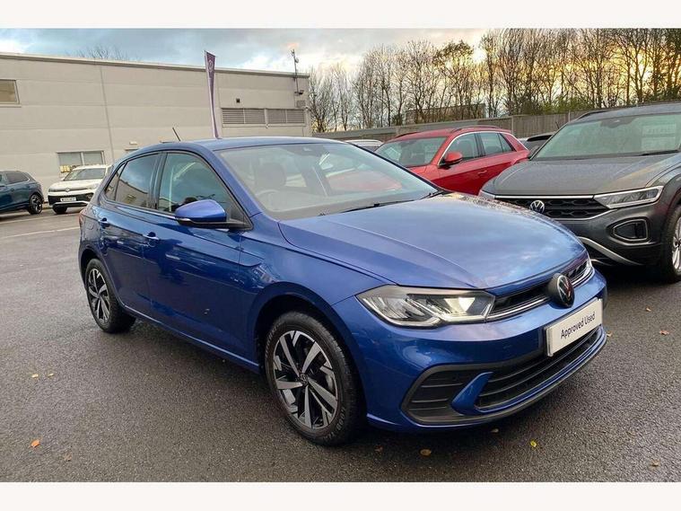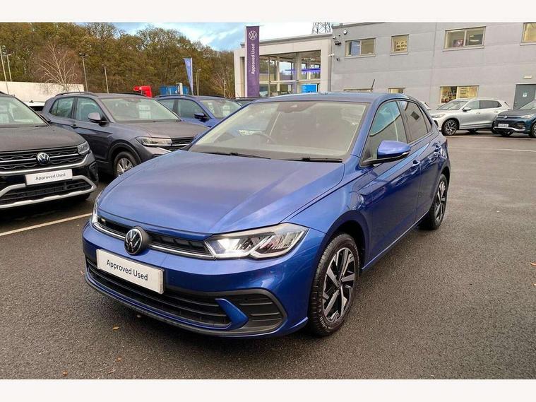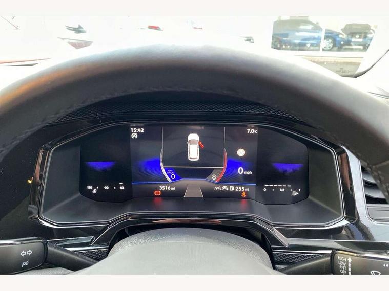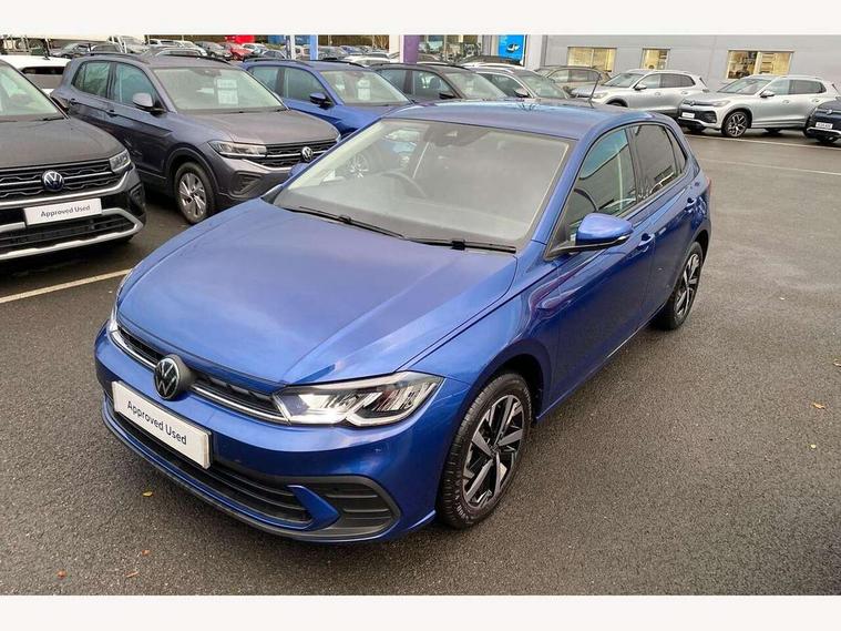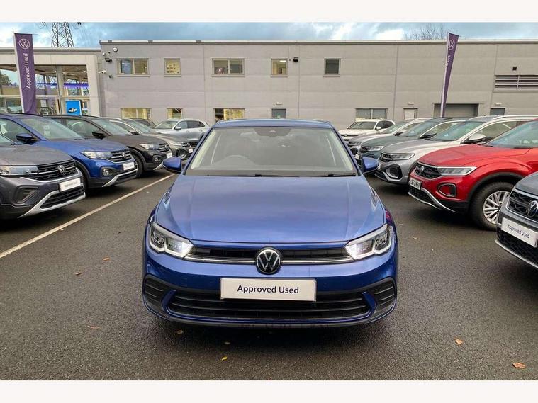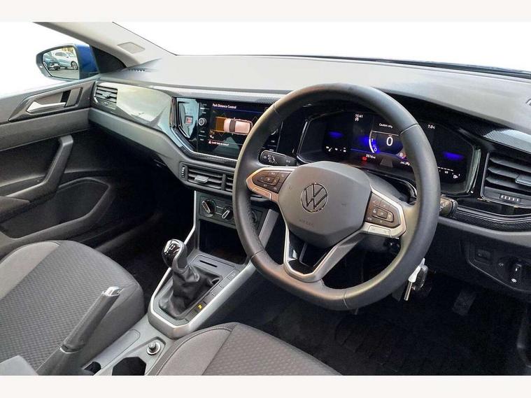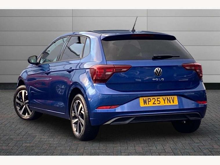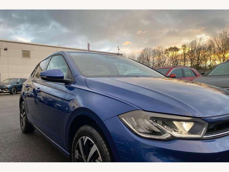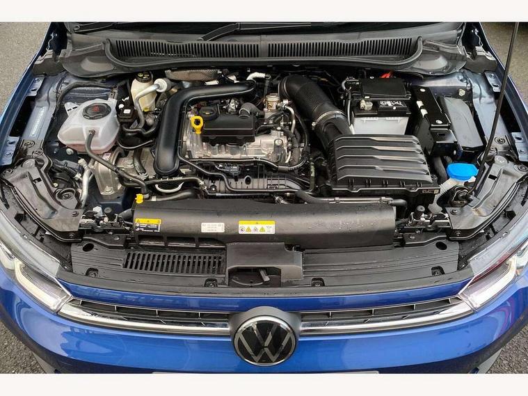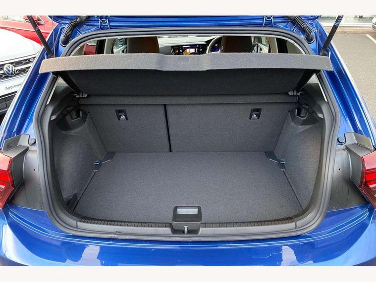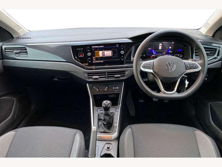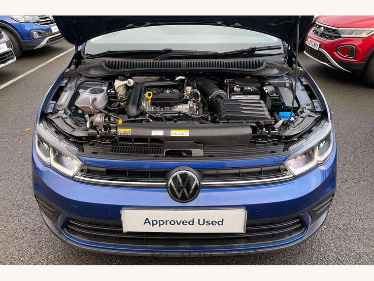 Adaptive cruise control without follow-to-stop and speed limiter, Advanced driver attention and drowsiness monitor, Bluetooth mobile phone interface, Dynamic road sign display, Emergency call service, Multifunction front facing camera for distance control, Park distance control, Power assisted speed sensitive steering, Preparation for navigation system with media and internet package, Preparation for We connect and We connect plus, Rear view camera, Speedo and rev counter, electronic odometer, trip, service interval display and exterior temperature gauge, Standard rear axle, Travel Assist - Lane keeping system and traffic jam assist, Travel assist including emergency assist, Trip computer, Warning signal and warning light for front and rear seatbelts not fastened, Washer fluid level indicator, Wireless app connect, Front wheel drive, Rear shock absorpion, Start-stop system with battery regeneration (recuperation - energy recovery during braking), DAB Digital radio, Diversity antenna for FM reception, Front and rear 6 speakers, Automatic dimming interior rear view mirror, Automatic headlight control with LED separate daytime running lights with coming/leaving home function, Body colour bumpers with chrome inserts, Body colour door handles, Body colour door mirrors, Electric front windows, Engine badge deletion, Headlight range adjustment, Heat insulating and laminated safety glass windshield, LED Headlights, LED rear combination lamps, Power folding adjustable/heated exterior mirrors and front passenger exterior mirror lowering function, Rain sensor, Rear electric windows, Rear fog light, Rear side wing doors, Rear tinted glass from B-pillar backwards approx 65% tinted, Rear windscreen washer and wiper with interval delay, Third brake light, 12V power socket in centre console, 2 front and 2 rear reading lights with switch off delay and dimmer, 2 USB-C ports in the front, 2 USB-C charging sockets on the center console in the rear, 3 rear head restraints, 60/40 split folding rear seat and rear seat bench not split, Ceramique roof lining, Chrome plated radiator grille inserts, air vent surrounds and light switch surrounds, Door and side trim panel, Driver and front passenger seat height adjustment, Driver/passenger sunvisors with illuminated vanity mirrors, Front centre armrest, Front seat backrest storage pockets, Front standard seats, Handbrake lever handle in leather, Hartley/Thomas cloth upholstery, Headliner in recycled material, Isofix child seat preparation easy-fit (for two outer rear seats, and front passenger seat) compatible with I-size, Leather trimmed gear knob, Luggage compartment cover, Luggage compartment lighting, Removable luggage compartment floor, Single front passenger seat, Standard climatic zones, Standard pedal cluster, Three spoke leather wrapped multifunction steering wheel, Light and vision pack - Polo, 3 point height adj front seatbelts + pretensioners, 3 point seat belt for centre rear seat, 3 point seatbelts, outer rear with ECE lable, ABS, Driver and front passenger airbag with front passenger airbag deactivation, Drivers and front passengers safety optimised head restraints, ESC (Electronic stability control) + EDL (Electronic Differntial lock) and ASR (Traction control), Extended and predictive pedestrian/ cyclist protection, Front assist with autonomous emergency braking (for Adaptive Cruise Control ACC up to 130 mph), Front curtain and side airbags with center airbag, Front disc brakes, Hill hold control, Manual child lock in rear doors, Rear drum brakes, Single tone horn, Tyre pressure loss indicator, Alarm with interior protection, Anti-theft alarm system with interior monitoring, backup horn, and towing protection, Anti-theft wheel bolts, Electronic engine immobiliser, Lava stone black gloss/matt decorative inserts in dash and front door panels, 16" Torsby alloy wheels, Low rolling resistance tyres,
