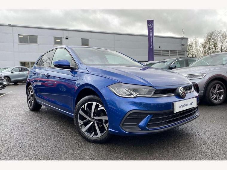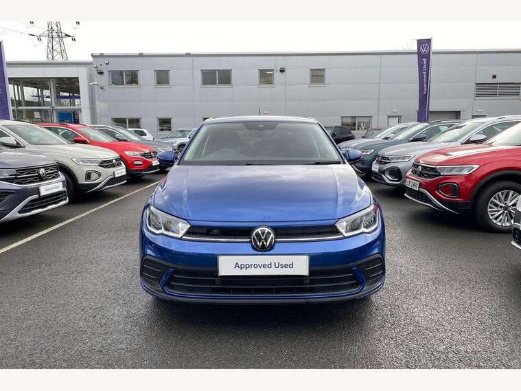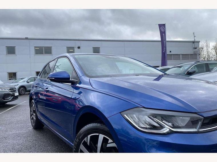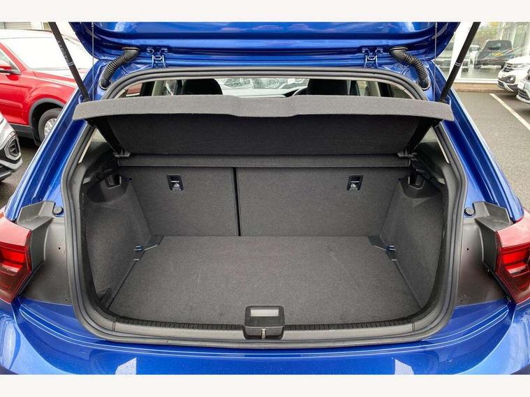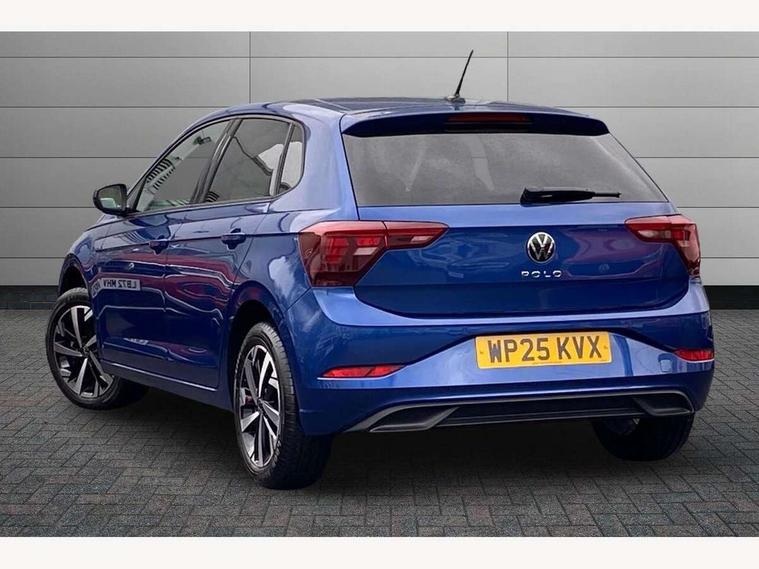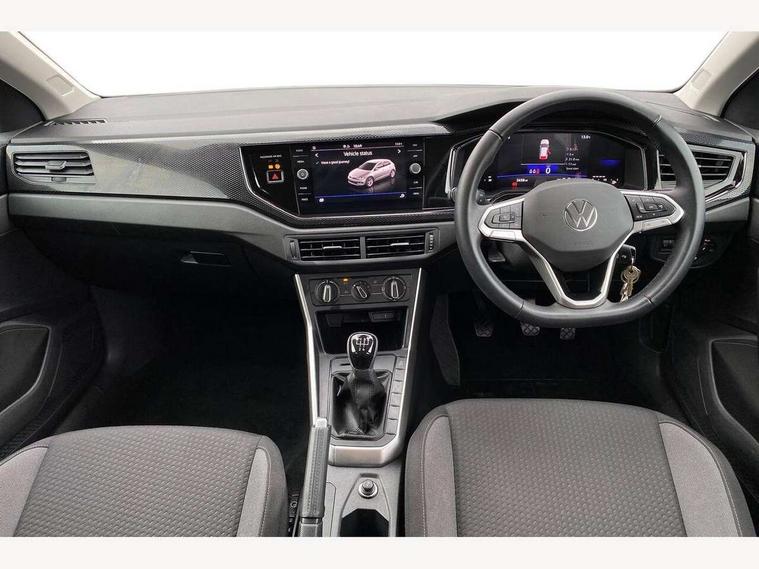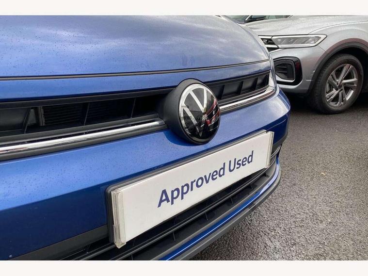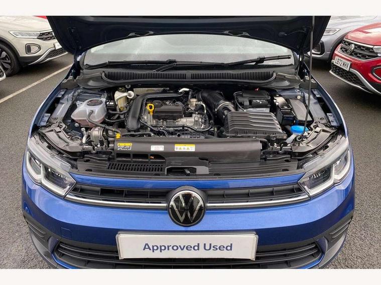 Adaptive cruise control without follow-to-stop and speed limiter, Advanced driver attention and drowsiness monitor, Bluetooth mobile phone interface, Dynamic road sign display, Emergency call service, Multifunction front facing camera for distance control, Park distance control, Power assisted speed sensitive steering, Preparation for navigation system with media and internet package, Preparation for We connect and We connect plus, Rear view camera, Speedo and rev counter, electronic odometer, trip, service interval display and exterior temperature gauge, Standard rear axle, Travel Assist - Lane keeping system and traffic jam assist, Travel assist including emergency assist, Trip computer, Warning signal and warning light for front and rear seatbelts not fastened, Washer fluid level indicator, Wireless app connect, Front wheel drive, Rear shock absorpion, Start-stop system with battery regeneration (recuperation - energy recovery during braking), DAB Digital radio, Diversity antenna for FM reception, Front and rear 6 speakers, Automatic dimming interior rear view mirror, Automatic headlight control with LED separate daytime running lights with coming/leaving home function, Body colour bumpers with chrome inserts, Body colour door handles, Body colour door mirrors, Electric front windows, Engine badge deletion, Headlight range adjustment, Heat insulating and laminated safety glass windshield, LED Headlights, LED rear combination lamps, Power folding adjustable/heated exterior mirrors and front passenger exterior mirror lowering function, Rain sensor, Rear electric windows, Rear fog light, Rear side wing doors, Rear tinted glass from B-pillar backwards approx 65% tinted, Rear windscreen washer and wiper with interval delay, Third brake light, 12V power socket in centre console, 2 front and 2 rear reading lights with switch off delay and dimmer, 2 USB-C ports in the front, 2 USB-C charging sockets on the center console in the rear, 3 rear head restraints, 60/40 split folding rear seat and rear seat bench not split, Ceramique roof lining, Chrome plated radiator grille inserts, air vent surrounds and light switch surrounds, Door and side trim panel, Driver and front passenger seat height adjustment, Driver/passenger sunvisors with illuminated vanity mirrors, Front centre armrest, Front seat backrest storage pockets, Front standard seats, Handbrake lever handle in leather, Hartley/Thomas cloth upholstery, Headliner in recycled material, Isofix child seat preparation easy-fit (for two outer rear seats, and front passenger seat) compatible with I-size, Leather trimmed gear knob, Luggage compartment cover, Luggage compartment lighting, Removable luggage compartment floor, Single front passenger seat, Standard climatic zones, Standard pedal cluster, Three spoke leather wrapped multifunction steering wheel, Light and vision pack - Polo, 3 point height adj front seatbelts + pretensioners, 3 point seat belt for centre rear seat, 3 point seatbelts, outer rear with ECE lable, ABS, Driver and front passenger airbag with front passenger airbag deactivation, Drivers and front passengers safety optimised head restraints, ESC (Electronic stability control) + EDL (Electronic Differntial lock) and ASR (Traction control), Extended and predictive pedestrian/ cyclist protection, Front assist with autonomous emergency braking (for Adaptive Cruise Control ACC up to 130 mph), Front curtain and side airbags with center airbag, Front disc brakes, Hill hold control, Manual child lock in rear doors, Rear drum brakes, Single tone horn, Tyre pressure loss indicator, Alarm with interior protection, Anti-theft alarm system with interior monitoring, backup horn, and towing protection, Anti-theft wheel bolts, Electronic engine immobiliser, Lava stone black gloss/matt decorative inserts in dash and front door panels, 16" Torsby alloy wheels, Low rolling resistance tyres,