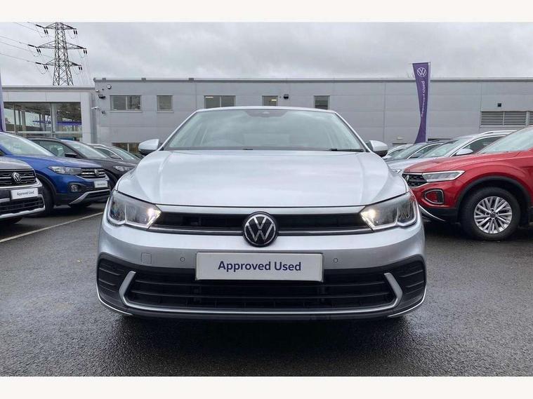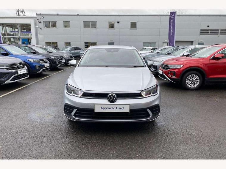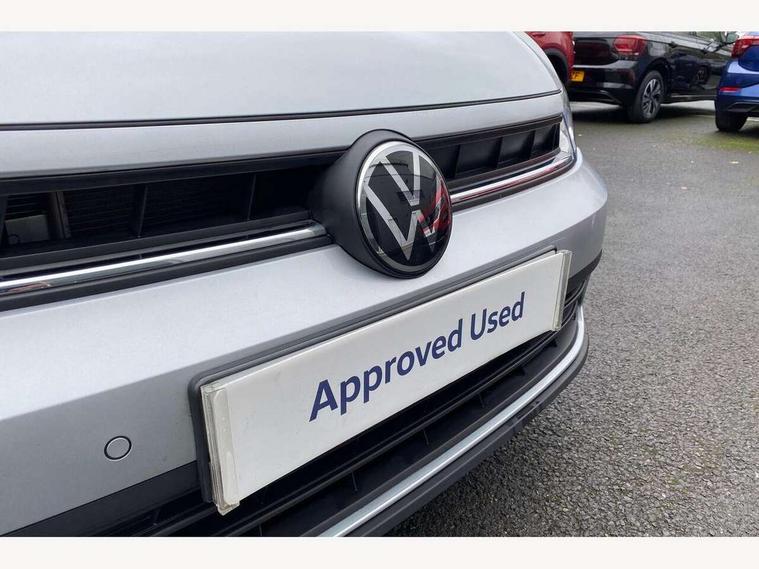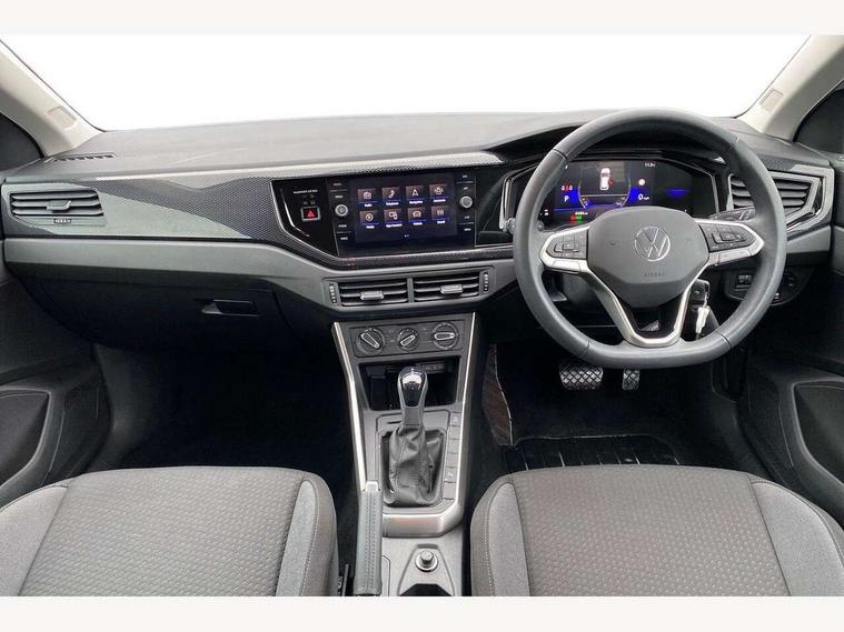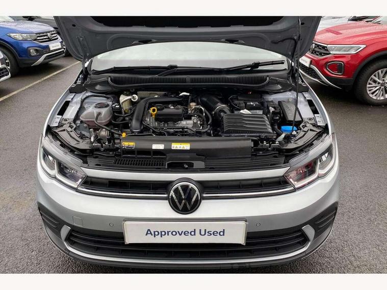 Advanced driver attention and drowsiness monitor, Bluetooth mobile phone interface, Dynamic road sign display, Emergency call service, Multifunction front facing camera for distance control, Park distance control, Power assisted speed sensitive steering, Predictive adaptive cruise control without follow-to-stop and speed limiter, Preparation for navigation system with media and internet package, Preparation for We connect and We connect plus, Rear view camera, Speedo and rev counter, electronic odometer, trip, service interval display and exterior temperature gauge, Standard rear axle, Travel Assist - Lane keeping system and traffic jam assist, Travel assist including emergency assist, Trip computer, Warning signal and warning light for front and rear seatbelts not fastened, Washer fluid level indicator, Wireless app connect, Front wheel drive, Rear shock absorpion, Start-stop system with battery regeneration (recuperation - energy recovery during braking), DAB Digital radio, Diversity antenna for FM reception, Front and rear 6 speakers, Automatic dimming interior rear view mirror, Automatic headlight control with LED separate daytime running lights with coming/leaving home function, Body colour bumpers with chrome inserts, Body colour door handles, Body colour door mirrors, Electric front windows, Engine badge deletion, Headlight range adjustment, Heat insulating and laminated safety glass windshield, LED Headlights, LED rear combination lamps, Power folding adjustable/heated exterior mirrors and front passenger exterior mirror lowering function, Rain sensor, Rear electric windows, Rear fog light, Rear side wing doors, Rear tinted glass from B-pillar backwards approx 65% tinted, Rear windscreen washer and wiper with interval delay, Third brake light, 12V power socket in centre console, 2 front and 2 rear reading lights with switch off delay and dimmer, 2 USB-C ports in the front, 2 USB-C charging sockets on the center console in the rear, 3 rear head restraints, 60/40 split folding rear seat and rear seat bench not split, Ceramique roof lining, Chrome plated radiator grille inserts, air vent surrounds and light switch surrounds, Door and side trim panel, Driver and front passenger seat height adjustment, Driver/passenger sunvisors with illuminated vanity mirrors, Front centre armrest, Front seat backrest storage pockets, Front standard seats, Handbrake lever handle in leather, Hartley/Thomas cloth upholstery, Headliner in recycled material, Isofix child seat preparation easy-fit (for two outer rear seats, and front passenger seat) compatible with I-size, Leather trimmed gear knob, Luggage compartment cover, Luggage compartment lighting, Removable luggage compartment floor, Single front passenger seat, Standard climatic zones, Standard pedal cluster, Three spoke leather wrapped multifunction steering wheel with shifting paddles, Light and vision pack - Polo, 3 point height adj front seatbelts + pretensioners, 3 point seat belt for centre rear seat, 3 point seatbelts, outer rear with ECE lable, ABS, Driver and front passenger airbag with front passenger airbag deactivation, Drivers and front passengers safety optimised head restraints, ESC (Electronic stability control) + EDL (Electronic Differntial lock) and ASR (Traction control), Extended and predictive pedestrian/ cyclist protection, Front assist with autonomous emergency braking (for Adaptive Cruise Control ACC up to 130 mph), Front curtain and side airbags with center airbag, Front disc brakes, Hill hold control, Manual child lock in rear doors, Rear drum brakes, Single tone horn, Tyre pressure loss indicator, Alarm with interior protection, Anti-theft alarm system with interior monitoring, backup horn, and towing protection, Anti-theft wheel bolts, Electronic engine immobiliser, Lava stone black gloss/matt decorative inserts in dash and front door panels, 16" Torsby alloy wheels, Low rolling resistance tyres,