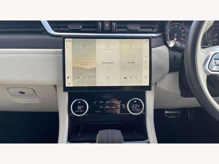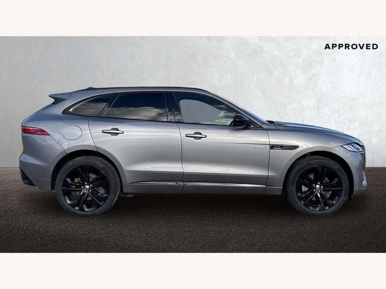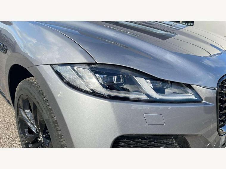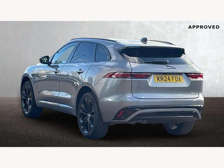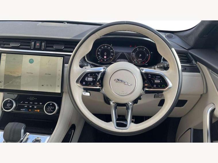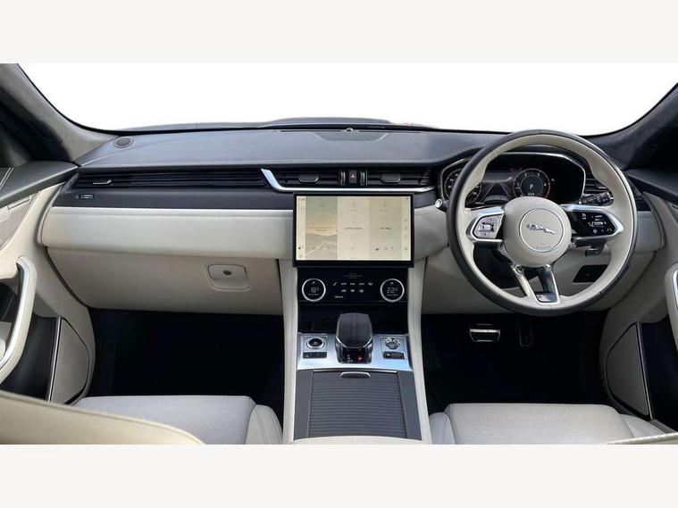 11.4" touchscreen, Adaptive cruise control with steering assist, Android Auto, Apple car play, Blind spot assist, Bluetooth connectivity, Clear exit monitor, Driver alert system, Driver condition monitor, eCall emergency call system, Eco driving style assistant, Electric power assisted steering, InControl remote, Interactive driver display digital with 12" TFT display, Jaguar Toggle shift selector, Lane departure warning system, Lane keep assist, Outside temperature gauge, Personalisation profile management, Pivi pro connected navigation system with app interface and media storage, Pro services and wifi hotspot, Push button starter, Rear collision monitor, Rear traffic monitor, Service interval indicator, Speed proportional steering, Start up sequence with movement in dials and lighting, Traffic sign recognition with adaptive speed limiter, Trip computer, Voice control system, Wireless device charging, 8 speed automatic transmission, Adaptive dynamics, All terrain progress control, All Wheel Drive (AWD), Configurable dynamics, Open differential with torque vectoring by braking, AM/FM radio, Bluetooth streaming, DAB Radio (Digital Audio Broadcasting), Dynamic volume control, InControl apps, InControl protect, iPod integration, 3 flash lane change indicators, AHBA and animated directional indicators, Approach Illumination, Auto dimming rear view mirror, Automatic headlights, Electric heated/power fold memory door mirrors with approach lights and auto dimming driver side, Electric windows with one touch open/close and anti trap, F-Pace and R Dynamic badge, Green tinted glass, Heated front windscreen + heated washer jets, Heated rear window with timer, Illuminated metal tread plates with Jaguar script, Jaguar script and leaper, LED High level third brake light, LED tail lights, Metal load space scuff plates, Non acoustic front windscreen, Privacy glass (rear side windows and rear screen), R Dynamic badge on side door, Rain sensor windscreen wipers, Rear fog lights, Rear metal tread plates, Rear side wing doors, Rear wiper, Trailer stability assist, Variable front intermittent wipers, 12V power point front, 3 rear headrests, 3 seat bench in 2nd row, Additional power sockets - Two additional USB sockets in rear centre console and one 12V socket in trunk, Air distribution speed, Bright metal foot pedals, Centre armrest console, Centre console with side storage, Configurable cabin lighting, Deletion loadspace storage rails, Door sill tread plates, Ebony suede cloth headlining, Electrically adjustable steering column, Fold flat front seats, Front centre armrest with storage compartment, Front door storage space, Glovebox finisher with jaguar script, Heated steering wheel, Hooks in loadspace, Illuminated glovebox, Interior front door handles with separate locking switches, ISOFIX on outer rear seats, Jaguar sense, Leather steering wheel, Luggage tie downs in loadspace, Mist sensing, Multifunction steering wheel, Overhead lighting console, Overhead stowage for sunglasses, Passive front head restraints, Premium carpet mats, Rear air vents, Rear armrest with twin cupholders, Rear centre headrest, Rear door storage space, Reversible boot floor, Satin chrome gearshift paddles, Shopping bag hook, Single front passenger seat, Sunvisors with illuminated vanity mirrors, Twin front cupholders with cover, Online Pack with data plan - F-Pace, 355mm front brakes and 325mm rear brakes, 3x3 point rear seatbelts, ABS, All surface progress control (ASPC), Brake pad warning light, DSC - Dynamic Stability Control, Electric parking brake (EPB), Emergency brake assist, Front airbags with passenger seat occupant detector, Front and rear seatbelt reminder, Front side airbags, Full length side window curtain airbag, Hill launch assist, Power operated child locks, Traction control, Tyre pressure monitoring system, Immobiliser, Keyless entry, Keyless Start, Locking wheel nuts, Perimeter alarm, Remote central locking, Valet mode,