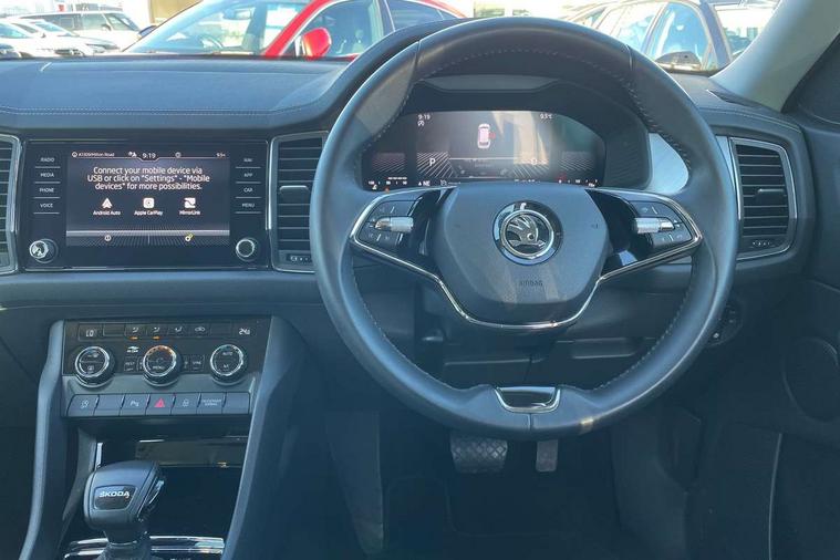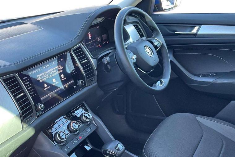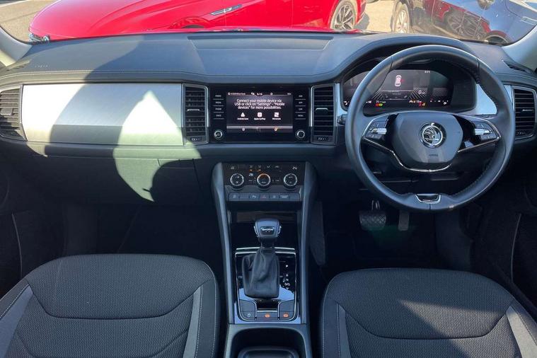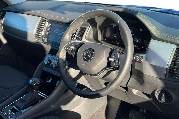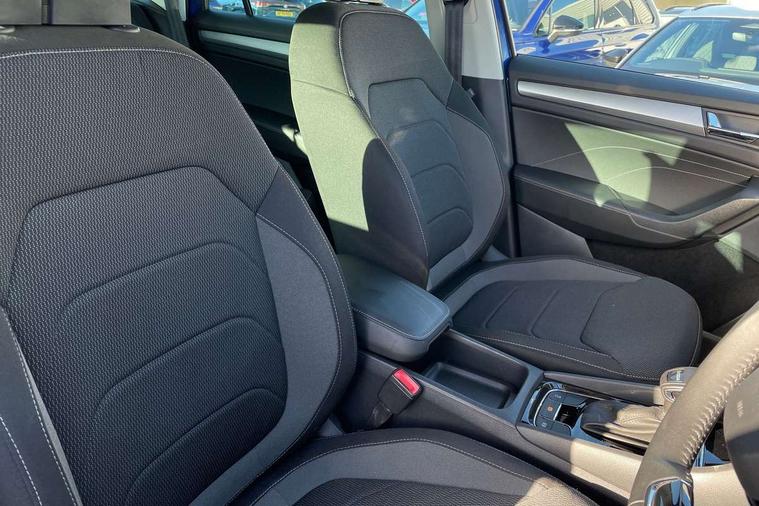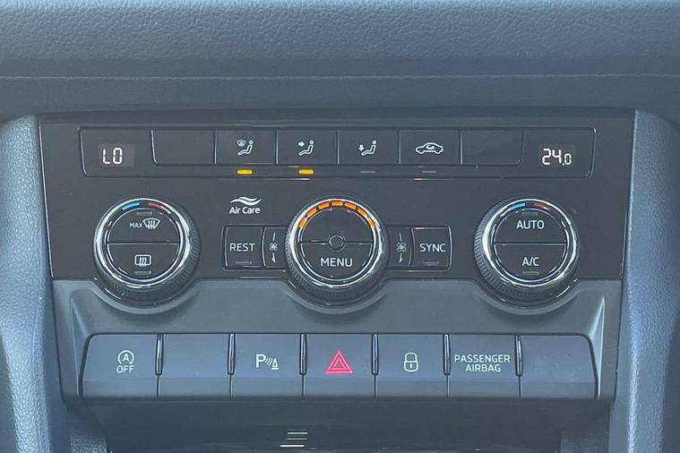 8" Digital display, Amundsen satellite navigation with 8" touchscreen, integrated Wi-Fi, web radio, Bluetooth system, Digital voice enhancement, e call+, ECO Stop/start function, Exterior temperature indicator, Power assist steering, Rear view camera, Smartlink wireless for apple carplay and wired for android auto, Speed limiter, Tailgate unlocking from outside, USB C Port x 2 in front centre console, 8 Speakers, DAB Digital radio, Aero front windscreen wipers with intermittent function, Aero rear window wiper, Auto dimming rear view mirror, Black wheel arch surrounds, Body colour bumpers, Body colour door mirrors and handles, Electric front and rear windows, Extended rear spoiler with finlets in gloss black, Front fog lights, Headlight washers, Heated rear window, Invisible tailpipe, LED rear fog light, LED third brake light in rear spoiler, Light assistant (coming/leaving home/tunnel light), Off-road style lower front bumper element, Privacy glass, Radiator grille frame in matt black with chrome strip, Rain and light sensors, Rear LED lights (high functionality) with welcome effect and dynamic indicators, Rear side wing doors, Safety reflectors on front and rear doors, Window control switches with black trim, 12V socket in boot, 2 rails with 2 hooks, 2 spoke multi-function leather steering wheel with paddle shift, 3 seat bench in 2nd row, 4 foldable roof handles with rear coat hooks, 60:40 foldable rear seat with sliding adjustment and backrest angle adjustment, Bottle holders in door panel in the 1.5 litre front and 1 litre rear, Chrome interior door handles, Cloth upholstery, Coat hooks on B pillar, Covered storage compartment on driver side, Dual zone automatic air conditioning with humidity sensor and control, Front and rear door armrest with black adductor trim, Front centre armrest with storage compartment, cup holder and 12V socket, Gear shift lever with chrome frame and black gloss insert, Grey headlining, Grey stitching in front and rear armrests and door armrests + door inserts, Height adjustable front headrests, Height adjustable front seats, Illuminated glovebox, Illuminated luggage compartment, Isofix child seat fittings in outer rear seats with top tether, Manually adjustable steering column, Net programme in boot (1x horizontal Net, 2x vertical Nets), Overhead glasses storage compartment, Pollen filter, Rear centre armrest with cupholders, Single front passenger seat, Sliding trunk cover, Small Bags on the inner sides of the front backrests, Sunvisors with illuminated vanity mirrors, Three rear height adjustable headrests, Ticket holder on A Pillar, Umbrella in door panel, Auto door release and activation of warning lights in the event of an accident, Driver and front passenger airbag with knee airbag and front passenger airbag deactivation, Electronic parking brake with hill start assist, Emergency rear braking signal, ESC (incl. ABS+MSR+ASR+EDS+HBA+DSR+RBS+MKB), Front assist with autonomous emergency braking, Front side airbags with curtain airbags, Fuel cut off safety device, Height adjustable front 3 point seatbelts + pretensioners, Hill hold control, Rear disc brakes, Safety vest holder in door, Seat belt reminder for all seats, Three point rear seat belts, Two tone horn, Tyre pressure monitor, Alarm with interior monitoring and tilt sensor with safe function, Anti-theft wheel bolts, Immobiliser, Keyless entry and start system (KESSY), Remote central locking with 2 keys, Grey stitching in dashboard,