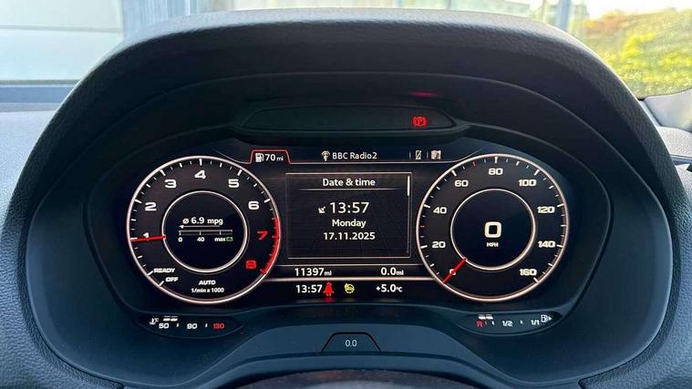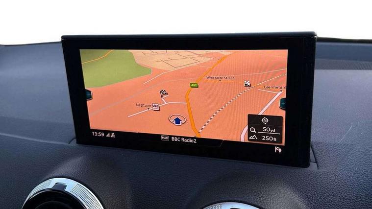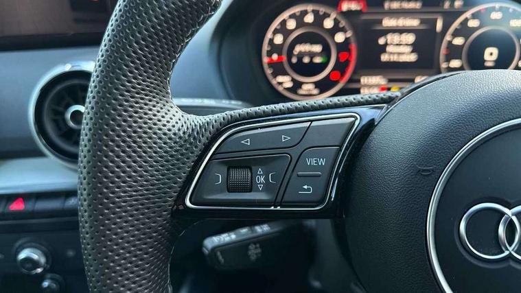 3D map display, Audi connect navigation and infotainment includes innovative services, Audi connect remote and control connects your vehicle to your smartphone, Audi drive select: power steering assistance + engine (modes: comfort, auto, dynamic, individual), Audi smartphone interface - Apple carplay/Android Auto, USB connect, 2xSDXC card readers, voice control for navi, telephone, music and 3rd party apps, Audi virtual cockpit, Automatic start/stop system with recuperation, Bluetooth interface includes bluetooth audio streaming, Cruise control, E-call, Jukebox hard drive memory for music (10GB), MMI navigation plus with 8.3" colour MMI screen and MMI touch, Natural voice recognition, Power operated tailgate, Progressive steering, Rear parking sensors, Sport suspension, 6 passive loudspeakers, DAB Digital radio, Auto dimming rear view mirror, Black window trims, Body colour door mirrors, Electrically adjustable, folding, auto dimming and heated door mirrors with integrated LED side indicators, Front windscreen with grey tinted sunband, LED daytime running lights, LED headlights with dipped beam, high beam, position lights, indicators, LED rear lights, LED third brake light, Privacy glass - dark tinted rear and rear side windows from B-pillar backwards, Rear side wing doors, Rear wiper, S Line badges on the front wings, S Line body styling - front and rear bumpers, side skirts, radiator grille, rear diffuser insert and front air intakes, Variable front intermittent wipers, Wheel arch trims in manhattan grey, 12v socket in front, 3 seat bench in 2nd row, 3 spoke multi-function leather steering wheel with S badging, 4-way electric lumbar support for front seats including manual seat height adjustment for both front seats, 60/40 split folding rear seat bench, Black carpets, Black cloth headlining, Front and rear head restraints, Front centre armrest, Front sport seats, Front/rear floor mats, Height/reach adjust steering wheel, Illuminated door sill trims with S logo, ISOFIX child seat mounting in front passenger and rear outer seats, Manual air conditioning, Single front passenger seat, Stainless steel pedals, Tool kit, 3x3 point rear seatbelts, 6 airbags - Front, curtain and front side airbags, Electromechanical parking brake, Electronic stabilisation control including ABS, ASR and EDL, Front passenger airbag deactivation, Hill hold assist, Pre-sense front with pedestrian recognition, Seatbelt monitoring, Tyre pressure warning light with visual and acoustic warning, Warning triangle and first aid kit, Anti theft alarm, Anti theft wheel bolts, Electronically operated child locks, Remote central door locking, Aluminium interior element, Black dashboard, Matt brushed aluminium trim inlays,