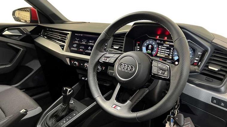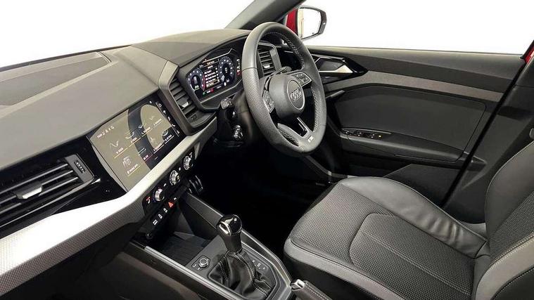 10.25" Digital instrument cluster display classis style instrument dials + speed, odometer, time, outside temperature, telephone menu + fuel level warning, Advanced driver attention and drowsiness monitor, Audi connect emergency call and service, Audi drive select, Audi remote connect and control, Audi smartphone interface, Bluetooth interface, Camera based traffic sign recognition, Cruise control, Driver's information system, Electromechanical power steering, Lane departure warning system, Rear parking sensor, Service interval indicator, Speed limiter, Start stop system with recuperation, Voice control system, Washer fluid level indicator, Sports suspension, 2 x USB type C connection points, 6 loudspeakers, DAB Digital radio, MMI radio plus with 10.1" colour MMI display screen and MMI touch, Auto dimming rear view mirror, Body coloured door mirrors, Door sill trims with aluminium inlays and S line logo in front, Electric front and rear windows, Electrically adjustable, heated, folding door mirrors with integrated LED side indicator, Front side air inlets in grained matt black and C frame in anthracite black, Headlight cleaning system, Heat insulating glass windscreen and side windows, Heated rear windscreen, High level LED brake light, LED daytime running lights, LED headlights with range control LED rear lights + dynamic rear indicators, Light and rain sensors, Privacy glass, Radiator grille and rear diffuser in matt anthracite black, Radiator protective grille frame in matt aluminium silver, Rear fog lights, Rear side wing doors, Rear wiper, S line badges on front wings, Side front spoiler lips in grained matt black, 12V socket in centre console with two cup holders, 3 rear seats with headrests, 3 seat bench in 2nd row, 3 spoke leather multi-function plus steering wheel features S badging and grips in perforated leather with contrast stitching, 40:60 Split folding rear seat or fully collapsed, Black cloth headlining, Front and rear velour black floor mats with contrast stitching in fine silver, Front head restraints, Front passenger seat, Height and reach adjustable steering wheel, Interior lighting includes roof module, front and rear reading lights and right luggage compartment lighting, ISOFIX child seat mounting for front passenger and outer rear seats including top tether attachment point of outer rear seats, Leather gear knob with aluminium trim, Leather handbrake grip, Manual air conditioning, Manual height adjustable for driver and front passenger seat, Manually adjustable lumbar support in front seats, Stainless steel pedals, Ambient lighting package - A1, Luggage compartment pack - A1, S line exterior styling pack - A1 Sportback, 3x3 point rear seatbelts, Audi pre-sense front with pedestrain and cyclist recognition, Brake assist function, Driver and front passenger airbag with front side and head airbags, Electronic Stability Control including ABS, EBD, ASR and EDL, Front passenger airbag deactivation switch, Hill hold assist, Manual rear child locks, Seatbelt height adjustment for front seats, Seatbelt monitoring, Tyre pressure loss indicator, Warning triangle and first aid kit, Anti theft alarm, Anti theft wheel bolts, Immobiliser, Remote control key with safelock, Aluminium trim for control switches, air vents and digital instrument cluster, Black dashboard, Silver grey inlays polygon structure in diamond paint finish, Structured grey accent surfaces insert of air vents, interior door handle recesses and centre console in quartz paint finish,