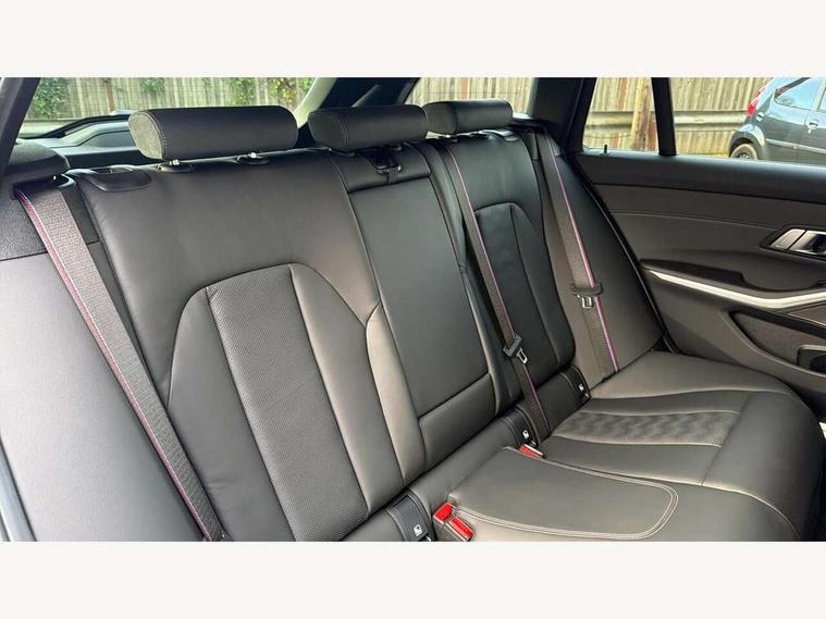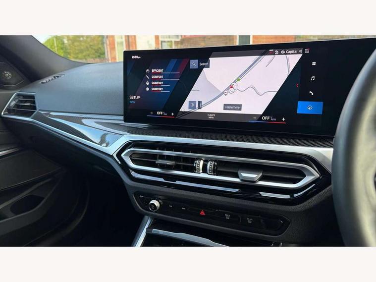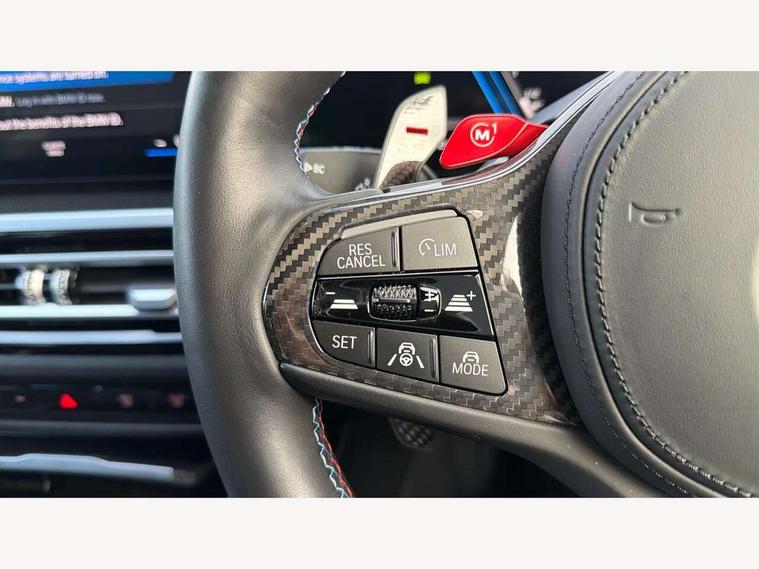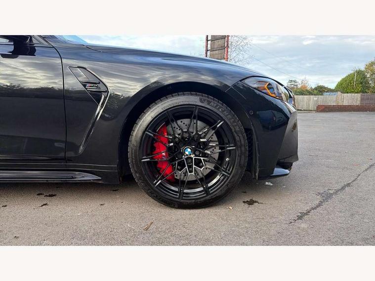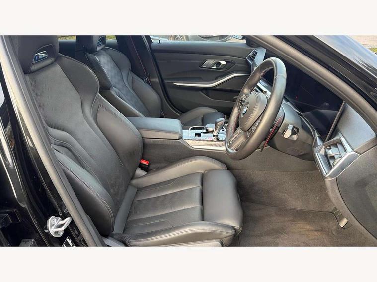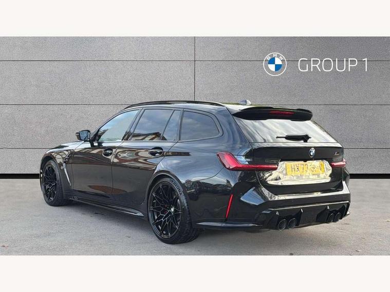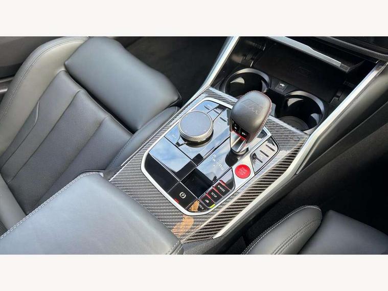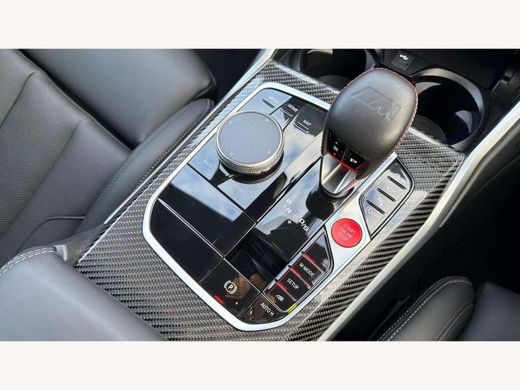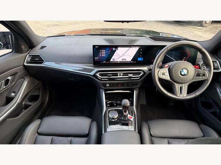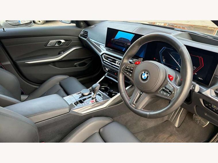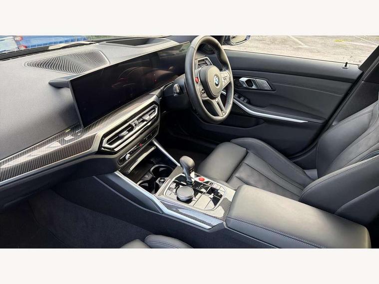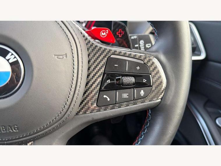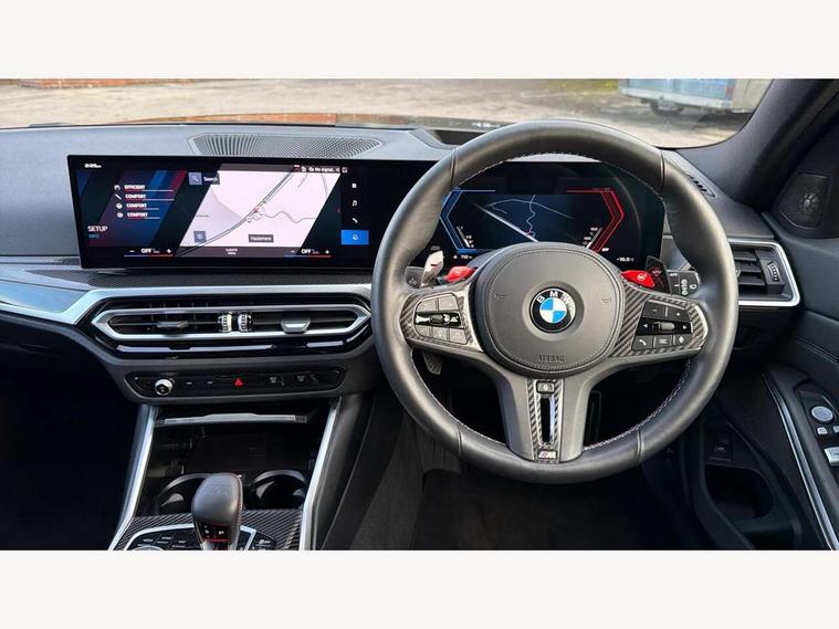 Active guard plus, Automatic start/stop system, Bluetooth functionality with Apple CarPlay/Android Auto, BMW ConnectedDrive online services, BMW iDrive controller on centre console, BMW legal emergency call, BMW Live Cockpit Professional sat nav system with 12.3" instrument display and high resolution control display, BMW Online services, BMW Teleservices, Brake pad wear indicator warning light, Condition based service, Door/boot open warning light, Driving experience switch, Electric boot lid, Head up Display, Illuminated control elements, Instrument cluster with extended contents, Lights on warning, M drive buttons, Oil sensor for level and grade, warning by check control system, Oil temperature gauge, On board computer, On board diagnostics, Optimum shift indicator, Outside temperature display, Pull away assistant, Run flat indicator, Service interval indicator, Shifting point display, Speed limiter, Variable sport steering, Adaptive M Sport suspension, Double joint spring strut front axle, M Drive Professional including track mode, laptimer, traction control & Drift analyser, M Sport differential, M steptronic sport transmission with drivelogic, Safety battery terminal clamp, 8 programmable favourite buttons, Auxiliary point for auxiliary devices, DAB Digital radio, Harman/Kardon loudspeaker system, Personal eSim, 3rd brake light, Acoustic glazing, Auto dimming driver's door mirror, Auto dimming rear view mirror, Automatic headlights + automatic windscreen wipers, Automatic parking function on front passenger's exterior mirror, Black model designation badges, BMW emblem on engine compartment lid and tailgate, BMW high gloss shadow line with extended contents, BMW Individual shadowline lights, Body colour bumpers, Carbon fibre reinforced plastic (CFRP) roof with high gloss black roof aerial bulge and roof mouldings, Day time running light, Door mirror integrated indicators, Door sill finishers with aluminium inserts, Dynamic brake lights, Electric adjustable heated door mirrors, Electric folding door mirrors, Electric front and rear windows with one touch/convenient open/close function, Follow me home headlights, Front and rear apron plastic in body colour, Front and rear bumper system, Headlight beam throw control, Heat protection, sun protection glazing, Heated rear window with automatic switch off, Heated washer jets, High beam assistant, High gloss black frameless kidney grille with M badge, High gloss black lower bumper edges, side sills and diffuser edge binding, High gloss black M roof rails, Illuminated bow type door handles in body colour drivers side with door lock, LED number plate light, LED tail lights with 3D L-shaped LED light design, M designation, M Sport entry door sill strips, Mirror glass aspheric on driver's side, convex on passenger side, Rear fog lights, Rear reflectors, Rear right M3 competition inscription, Rear side wing doors, Rear wiper, Reversing light, Shark fin roof aerial, Strakes in front side panel, black matt/black high-gloss, with model badge, Visible VIN plate, Welcome lighting, 2 front cupholder in centre console with clamping elements and matt black inlay, 2 x 12 V Power sockets (luggage compartment and front centre console), 2 x USB Type C ports for charging and data transmission in front centre console, 3 folding rear headrests, 3 seat bench in 2nd row, Ambient inside door handle light, Ambient lighting for instrument panel, Ambient lighting for storage compartment, Ambient lighting front and rear, Ambient lighting in door panels, Anthracite headlining, Battery in luggage compartment, Carbon fibre centre console incl. cover for cupholders and storage compartment, Carbon fibre decorative steering wheel finishers, Carbon fibre shift paddles, Carbon fibre strip in instrument panel on front passenger side, Centre console armrest with storage compartment, Compartment in front of cupholder, Driver/passenger sunvisors with illuminated vanity mirrors + covers, Dynamic ambient interior lighting, Electric front seats + driver memory, English handbook, Floor mats in velour, Folding rear centre armrest with 2 cupholders, Front door storage bins with bottle holder, Front isofix attachment + airbag deactivation, Front seat backrest width adjustment, Front seats lumbar support, Front/rear door armrests, Gearshift lever with embossed M badge, Heated front seats, Height adjustable front headrests, Isofix on 2nd row outer seats, Lockable/illuminated glovebox, Luggage compartment lighting, Manual 40:20:40 split folding rear seat with two tilt positions for backrest, Multifunction steering wheel, Rake/reach adjustable steering wheel, Single front passenger seat, Storage compartment in rear doors, Three zone automatic air conditioning, Through loading system, Toolkit located in luggage compartment, Wireless charging tray, Additional storage compartment pack - M3, Connected package professional - M3, High gloss shadowline exterior trim pack - M3, 3 point seatbelts on all seats, Anti-lock braking system (ABS), Automatic Stability Control (ASC), Brake energy regeneration, Brake fade compensation, Compound structure brake discs, Cornering brake control (CBC), Crash sensor, Driver/Front Passenger airbags, Dry braking, Dynamic brake control, Dynamic stability control + (DSC+), Dynamic Traction Control - DTC, Electromechanical parking brake, Electronic differential lock control (EDLC), Front and rear head airbags, Front seat side impact airbags, Front seatbelt pretensioners + load limiters, Hill start assist, M Sport seat belts, Rear child proof door locks, Seat occupancy detection for driver and passenger side, Seatbelt warning, Side impact protection, Two tone horn, Tyre pressure sensor, Warning triangle and first aid kit, Centre lock switch, Closing system with central locking, Digital key, Electronic immobiliser, Thatcham cat 1 remote alarm, Vehicle Key with 4 buttons including the integrated key, Galvanic finish to control surrounds, High gloss black interior trim, T