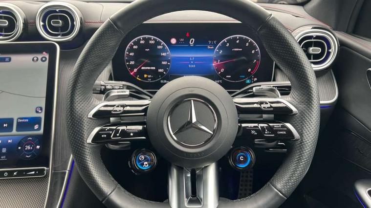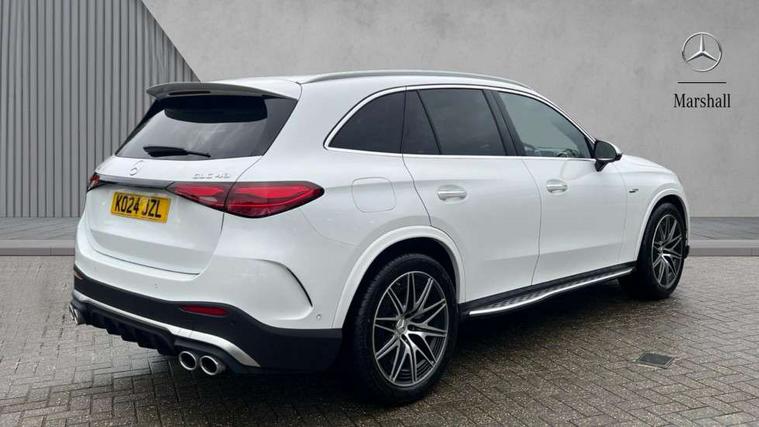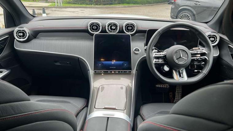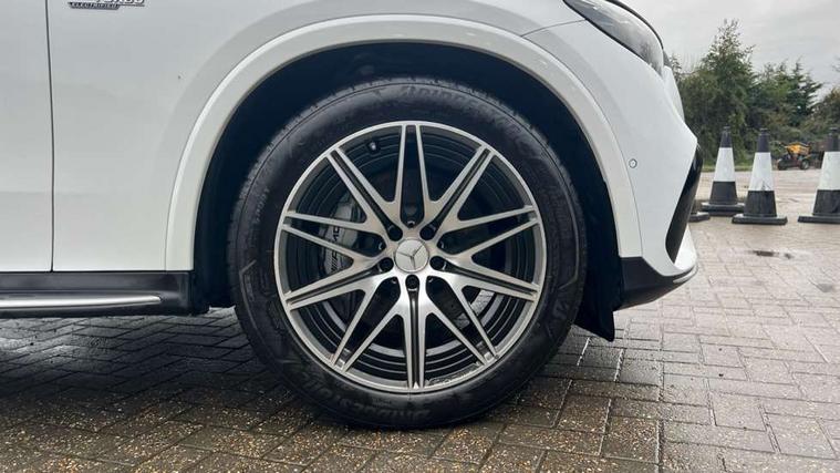 11.9" high resolution multimedia colour display, 12.3" Digital individually configurable instrument display, 360 degree camera, Active brake assist plus, Active parking assist with parktronic system, AMG DYNAMIC SELECT with a choice of driving modes (Slippery, Comfort, Sport, Sport+, Individual), Attention assist, Blind spot assist, Bluetooth interface for hands free telephone, Dashcam - front camera for video recording, Easy pack automatic powered tailgate, eCall emergency call system, MBUX augmented reality for navigation, MBUX navigation premium, MBUX voice control activated by keywords "Hey Mercedes", Mercedes connect me with remote online services, Outside temperature display, Pre-installation for digital key transfer, Rear axle steering, Remote boot release, Service indicator (ASSYST), Smartphone integration, Speed limit assist, Sports direct steer system with speed sensitive steering, Status display for rear seat belts in instrument cluster, Traffic sign assist, Trip computer, Wireless charging surface integrated into quick stowage tray in front of centre console, 4MATIC permanent four wheel drive, 63 litre fuel tank, 9G TRONIC plus automatic transmission, Agility control comfort suspension, Petrol Particulate Filter (PPF), DAB digital radio tuner, MBUX extended functions, Adaptive brake lights, AMG bodystyling front apron, rear apron and side skirts, AMG exhaust system with sporty engine sound, AMG fuel cap, AMG radiator grille with vertical struts in high gloss chrome and AMG logo, AMG spoiler lip, Auto dimming rear view mirror, Auto headlights, Body colour door mirrors, Chrome roof rails, Digital light LED headlights, Electric windows with one touch opening/closing and obstruction sensors, Electrically adjustable and heated door mirrors, Headlight washers, Heat and noise insulating acoustic glass, Heated rear window, High level LED brake light, Illuminated front door sill panels, Integrated LED daytime running lights, LED indicator lights, LED rear fog lights, LED tail lamp, Mercedes AMG exterior, Rain sensor windscreen wipers, Range adjustable headlights, Rear side wing doors, Rear wiper, Tinted glass all round green, Variable front intermittent wipers, Welcome and follow-me home light functionality, 3 seat bench in 2nd row, 3 Spoke multi function AMG steering wheel in black nappa leather, 40:20:40 split folding rear seats, Ambient lighting, AMG sports seats, AMG steering wheel buttons, Artico leather dashboard with contrast stitching, Audio and onboard settings control on multifunction steering wheel, Automatic child seat recognition sensor, Black floor mats with AMG lettering, Double cup holder in centre console, Electrically height/reach adjustable steering column, Front centre armrest with stowage compartment, Front head restraints, Gearshift paddles on steering wheel, Heated front seats, Illuminated door sill panels with AMG lettering and with exchangable cover, Illuminated glove compartment, Load compartment cover, Mercedes AMG interior, Rear head restraints, Rear top tether child seat ISOFIX attachment, Single front passenger seat, Sports pedals with stainless steel surfaces and rubber studs, Sun visors with illuminated vanity mirrors, THERMATIC 2 zone automatic climate control, Interior lighting pack - GLC AMG, Memory pack - GLC, Mirror pack - GLC AMG, Seat comfort package - GLC AMG, Stowage pack - GLC AMG, USB Plus Pack - GLC, 3 rear 3 point seatbelts, Active bonnet, Adaptive brake system with HOLD function and brake drying in the wet, Anti-lock braking system (ABS), Child proof door locks, Dual-stage airbags - driver and front passenger, sidebags in front seats, driver kneebag, pelvis bag and window bags for driver, Electronic key chrome surround, Electronic parking brake, Electronic Stability Programme (ESP), Front and rear seatbelt reminder, Front passenger seat occupancy sensor, Front seatbelt pretensioners, Hill start assist, Silver brake calipers, Tyre pressure monitoring system, Warning triangle and first aid kit, Central locking with interior switch, automatic locking and crash sensor with emergency opening function, Guard 360 degree vehicle protection, Immobiliser, Keyless Go comfort access, Anthracite linestructure lime wood trim, Black open-pore aluminium lines wood trim, Centre console in metal structure finish, 21" AMG Y spoke light alloy wheels painted in tantalum grey with high sheen rim finish, TIREFIT with tyre inflation compressor,
