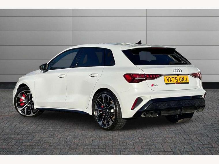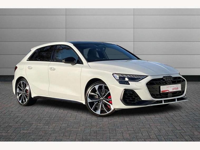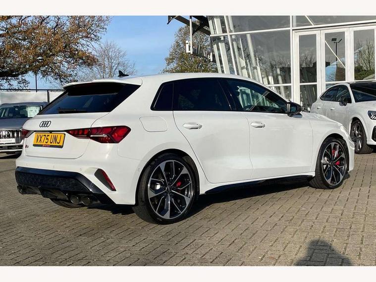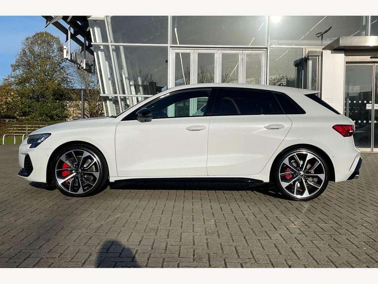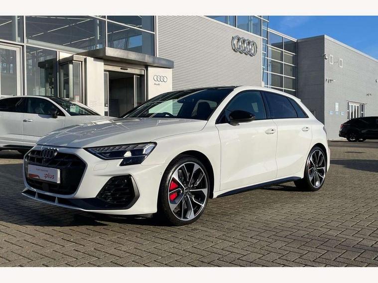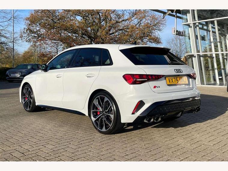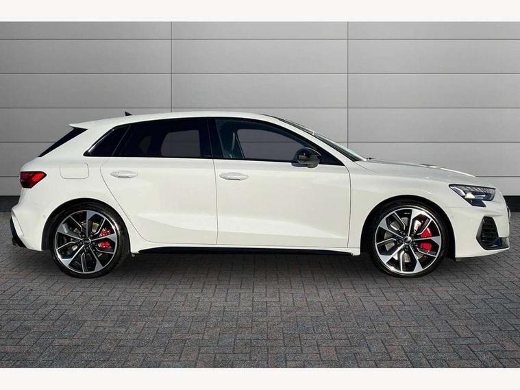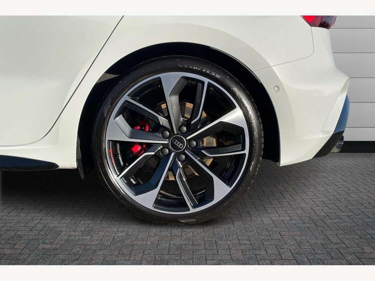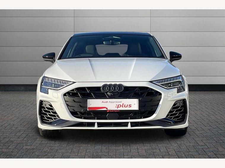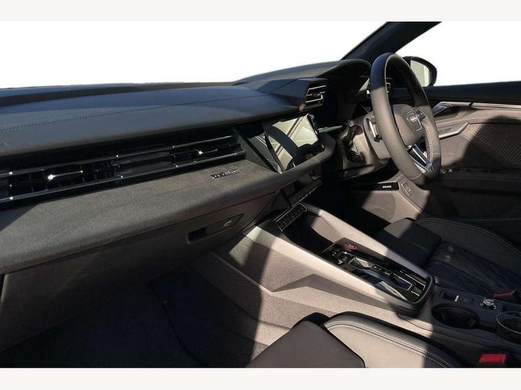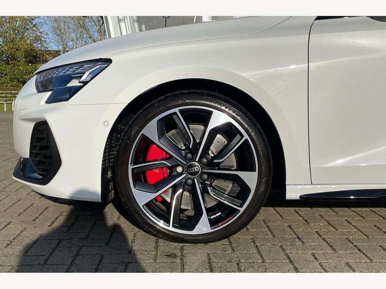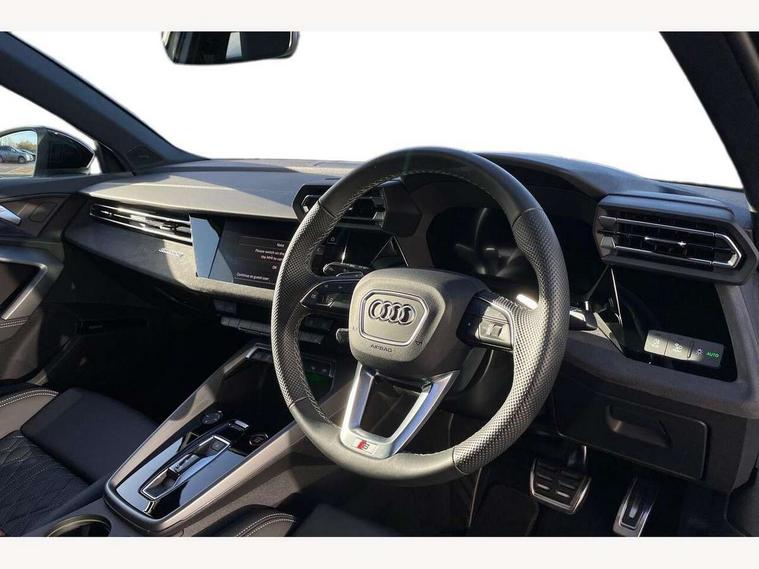 Adaptive cruise control (ACC), Adjustable speed limiter, Audi drive select (Auto, Comfort, Dynamic, Efficiency and Individual), Audi virtual cockpit plus - 12.3" full HD resolution dynamic digital instrument cluster, Automatic start/stop system with recuperation, Bluetooth interface, Camera based traffic sign recognition, Collision avoidance assistant, Driver attention and fatigue detection, e-Call (emergency call), Emergency assist, Intersection assist, Lane departure warning system, MMI Navigation Plus with high resolution 10.1" colour touch screen display, Park Assist with parking system Plus, Progressive steering, Reversing camera, Service indicator, Smartphone interface with app store includes wireless Apple carplay, Android auto and Amazon alexa integration, Trip computer, Voice control system with natural language interaction, quattro permanent all-wheel drive with torque splitter, S sport suspension with spring damper adjustment and lowering by 15mm, Audi Phonebox light with wireless charging, DAB Digital radio, USB ports with charging function in the rear, Anthracite grey Audi rings (front and rear), Audi Beam uses LEDs to project the rhombus S logo onto the ground as you exit your S3, Auto dimming frameless rear view mirror, Black accents front and rear bumpers including air inlets, Black accents in front grille and frame, Black accents in window trims, Electrically adjustable/heated/folding/auto dimming door mirrors with integrated LED indications + kerb view function for passenger side, Exterior model badging, Front and rear side air inlets in grained matt black with dark liquid chrome frame, Front electric windows, Front radiator grill in high gloss dark chrome, Heat insulating glass windscreen, Illuminated door sills with aluminium inserts at the front with S logo, LED 3rd brake light, Light and rain sensors, Privacy glass - dark tinted rear window, rear door and side windows, Rear diffuser and grill in grained matt black with inlay in dark liquid chrome, Rear electric windows, Rear side wing doors, Rear wiper, S grille, S3 front bumper with S specific air intake grilles, S3 roof spoiler, Side sill trim in dark liquid chrome, 12V socket and storage compartment in front centre console, 3 seat bench in 2nd row, 3 spoke flat bottomed leather multifunction sport steering wheel with gear shift paddles, 3-zone deluxe automatic air conditioning, 4 way electrically adjustable lumbar support for driver and front passenger, 40/20/40 split folding rear seat bench, Black cloth headlining, Black front and rear floor mats, Fine Nappa leather upholstery with front sports seats S embossed logo, Front and rear centre armrest in artificial leather with contrasting stitching on armrests and instrument panel, Front and rear headrests, Heated front seats, Height and reach adjustable steering wheel, i-Size child seat mounting on the front passenger side and outer rear seats, i-Size and top tether on the outer rear seats, Manual boot compartment lid, Manually adjustable front seats, Rear centre armrest with cupholder, S badging on the steering wheel, Seat side bolsters, Single front passenger seat, Stainless steel pedals and front footrest in black, Aluminium interior elements pack - A3, Storage package - A3, Technology pack with Matrix LED headlights - A3, 3x3 point rear seat belts, Driver and front passenger airbag with passenger airbag deactivation, Electronic Stabilisation Control (ESC) including ABS, ASR and EDL, First aid kit with warning triangle and 2 safety vests, Front side airbags with head airbags and interaction airbag, Hill hold assist, Pre-sense front with pedestrian and cyclist detection, Seatbelt monitoring, Tyre pressure loss indicator, Anti theft alarm, Anti-theft wheel bolts, Electronically operated child locks, Immobiliser, Black dashboard, Tyre repair kit,