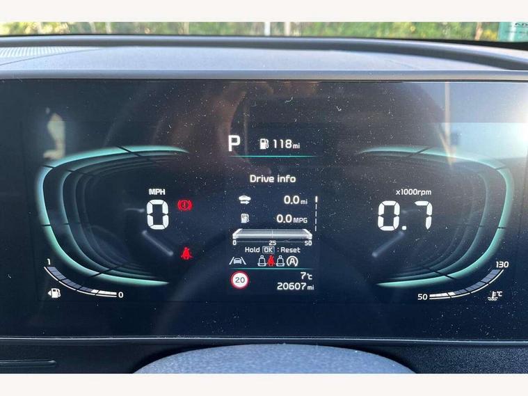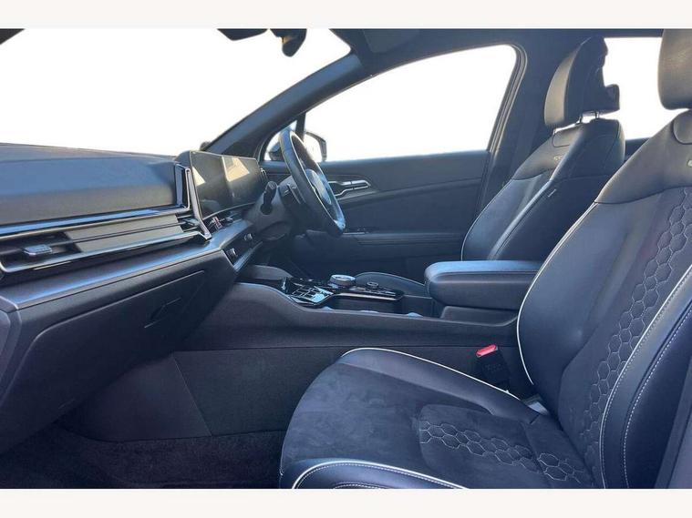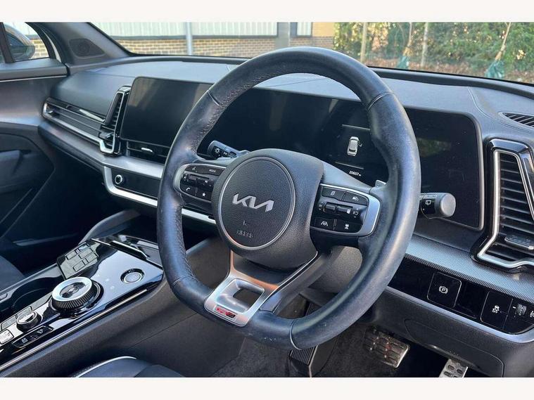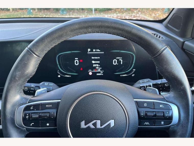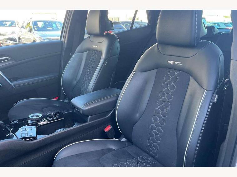 12.3" Display with navigation, 4.2" supervision colour cluster display, Apple car play/Android Auto with voice control, Drive mode selector, E-call, Forward collision avoidance assist (FCA) - city/pedestrian/cyclist/junction covering, Front and rear parking sensors, Highway Driving Assist (HDA), Intelligent speed limit assist, Kia Connect (UVO), Lane Following Assist (LFA), Lane keep assist, Low washer fluid warning, Rear view monitor, Reversing camera system integrated into centre fascia screen, Smart cruise control with stop and go functionality, Speed sensitive power steering, Trip computer, Windscreen washer level indicator, Intelligent Stop and Go, 6 speaker audio system, Bluetooth audio streaming, DAB Radio with MP3, Rear USB port, Steering wheel mounted audio controls, USB C type charging ports on centre console, USB C type charging ports on side of front seats, USB port for connection of a media device, All round electric windows with drivers and front passenger auto up/down function, Automatic headlight control system, Automatic window defogger, Backlite glass heated with timer, Black bumpers, Body colour exterior door handles, Body colour radiator upper garnish and door garnish, Electrically adjustable/heated/folding door mirrors with LED indicators, Front and rear chrome skid plates, Gloss black door mirrors, Gloss black radiator grille, Gloss black side sill and wheel arch body mouldings, Glossy black roof rack, High beam assist, Interior electrochromic mirror, LED daytime running lights, LED front fog lamps, LED headlamps (low and high beam - MFR type), LED High mounted stop light, LED rear combination lamp, Rain sensing wipers with aero blades, Rear fog lamp, Rear privacy glass, Rear side wing doors, Rear spoiler, Rear wiper, Satin finished beltline, Silver coloured inserts to bumpers, Tinted rear glass, Trailer stability assist, 12V power socket in front centre fascia and luggage compartment, 2nd row personal lamps, 3 seat bench in 2nd row, 3 x passenger assist grips, 40/20/40 split folding rear seat, All-round height adjustable headrests, Black headlining, Centre console storage box, Cupholders in rear armrest, D-Shaped sports leather steering wheel and perforated inserts with GT-Line logo, Door courtesy lamps, Drink holder at centre armrest, Driver and front passenger side sunvisors with illuminated vanity mirrors, Driver's seat manual height adjust, Drivers seat power lumbar support, Front and rear door storage, Front seat and rear pockets, Front/rear centre armrests, Gear shift indicator, Glovebox illumination, Heated front seats, Heated steering wheel, Interior door lock/unlock function, ISOFIX Child seat top tethers and anchor fixings outer rear seats, Luggage area light, Luggage area load cover, Luggage net with hooks, Metal paint interior door handles, Overhead console lamp, Paddle shift controls, Rear cabin light, Rear coat hooks, Single front passenger seat, Sports pedals, Suede leather upholstery, Three zone climate control, Tilt/telescopic adjustable steering wheel, Ventilation ducts to rear compartment, Active front headrests, All round 3-point seatbelts, Anti-lock braking system (ABS), Dual front side airbags, Dual horn, Electronic parking brake, Electronic stability control with downhill brake control, Front passenger airbag cut-off switch, Front seatbelt pretensioners + load limiters, Height adjustable front seatbelts, Hill start assist control (HAC), Impact sensing auto door unlocking, Multi collision brake assist, Rear door child safety locks, Rear seat alert system, Traction control, Twin curtain airbags, Twin front airbags, Tyre pressure monitoring system, Advanced anti-theft system including immobiliser and alarm, Door deadlocks, Engine Start/Stop Button with Smart Entry System, Locking wheel nuts, Speed sensitive auto door locking, Visible vehicle identification number, Aluminium pattern finish centre fascia and door garnish, 19" GT-Line alloy wheels, Tyre mobility kit,