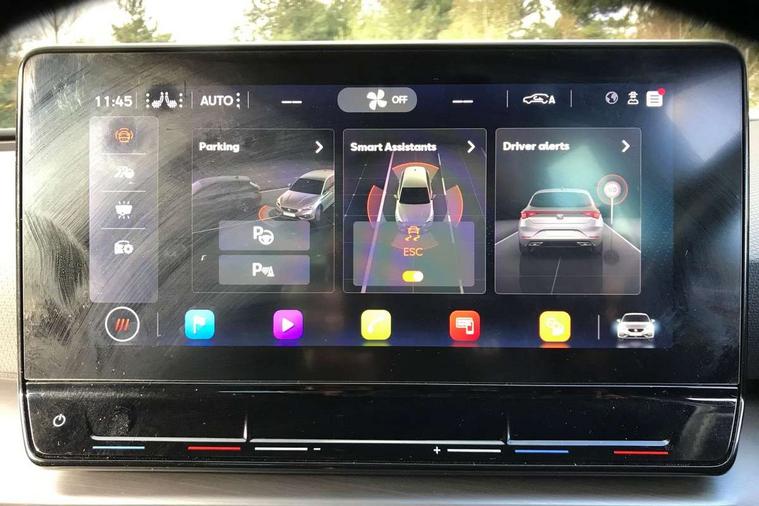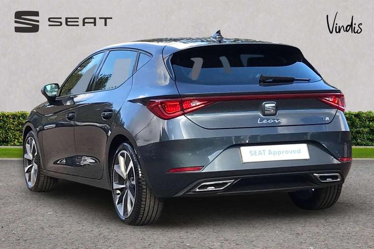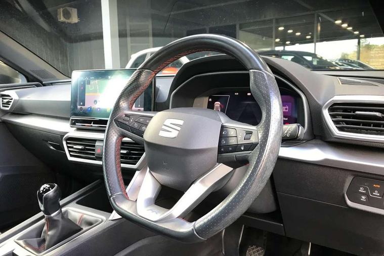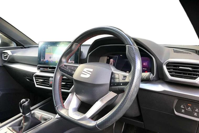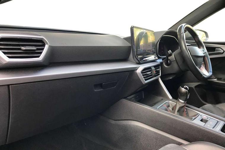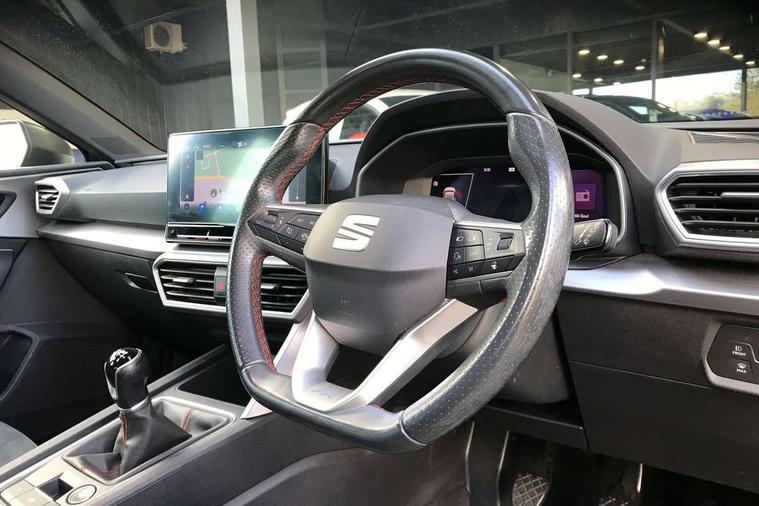 Digital cockpit, Four x USB Type C ports, Front assist with forward collision warning braking reaction to vehicles, pedestrians and cyclists, Full link smartphone integration with Mirror Link, wireless Apple CarPlay and wired Google Android Auto, Lane assist, Lockable tailgate, Park assist (inc front/rear parking sensors), Power assisted speed sensitive electro-mechanical steering, RPM, trip computer, outside temp gauge, instrument light brightness, low fuel warning light, lights on reminder, gearshift indicator, SEAT drive profile with 4 modes (Eco/Normal/Sport/Individual), throttle response, Service interval indicator, Start/stop system with regenerative braking, Sports suspension, XDS electronic differential lock and dynamic traction support, 7 speakers, Auxiliary input socket, Auto dimming rear view mirror, Body colour door handles, Body coloured bumpers, Dark tinted rear windows, Door mirror LED indicator lights, Electric adjustable/heated/folding door mirrors with memory, Electric front/rear windows, FR sports bumper, Illuminated front door sill, LED front fog lamps with cornering function, LED headlights and tail lights with dynamic turn signals, welcome light silhouette from exterior mirrors and dynamic headlight range control, LED rear fog lamp, Rain sensing wipers, Rear wash/wipe, Separate daytime running light with automatic headlight control and coming home feature, 12v power point in centre console, 60/40 split rear bench seat with armrest, Ambient lighting with glovebox, footwell and single monocolour, Black headlining, Dust/pollen filter, Electric driver lumbar support + passenger manual lumbar support, Folding boot cover, Front and rear height adjustable headrests, Front and rear reading lights X 4, Front centre armrest, Front seatback storage pockets, Heated front seats, Heated leather steering wheel with leather gearstick, Height/reach adjust steering wheel, ISOFIX points in outer rear seats with top tether anchorage points, Luggage tie-down hooks, Microsuede cloth upholstery, Power driver seat with memory and manual height adjustable passenger seat, Sunvisors with covered illuminated mirror, Three zone climate control, Wraparound lighting, Media system plus with navigation - Leon, 3 point seatbelts on all rear seats, ABS, Brake control system - ESC and brake booster, Child proof door locks, Driver and front passenger airbags with front passenger airbag de-activation, front side and curtain airbags, Electronic parking brake, Extended safety system - seat belt tensioner, window closure and hazard lights, Hill hold control, Rear disc brakes, Seat belt reminder for front and rear seats, Tiredness recognition system, driver alert system, Tyre pressure monitoring system, Anti theft alarm system with interior monitoring in cab, backup horn and towing protection, KESSY Go (Keyless start), Locking wheel bolts, Wireless phone charging, Chrome interior detailing, 18" Performance machined alloy wheels with 92Y tyres, Tool kit,