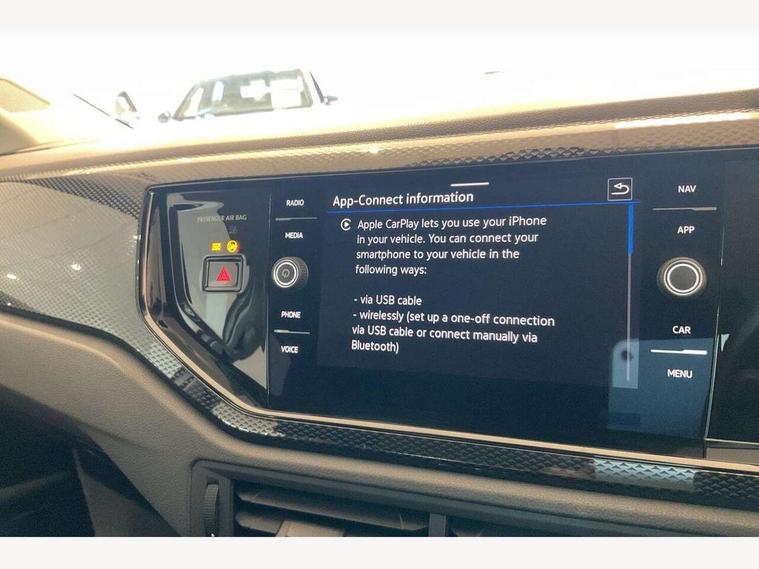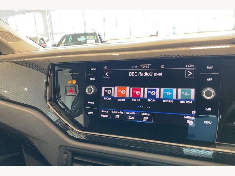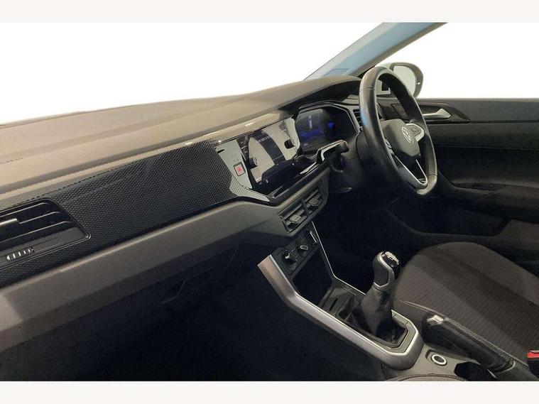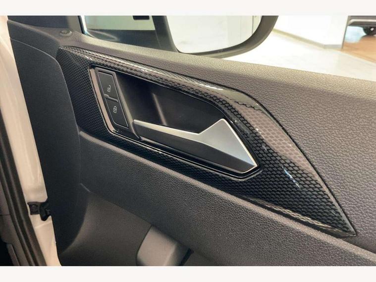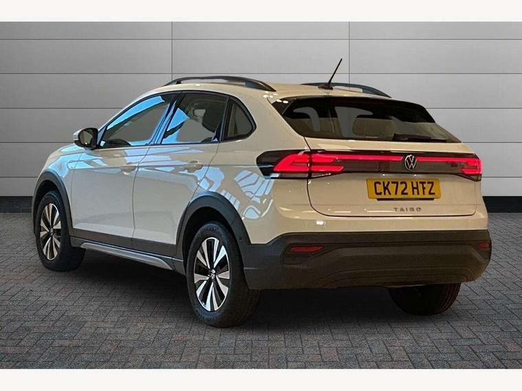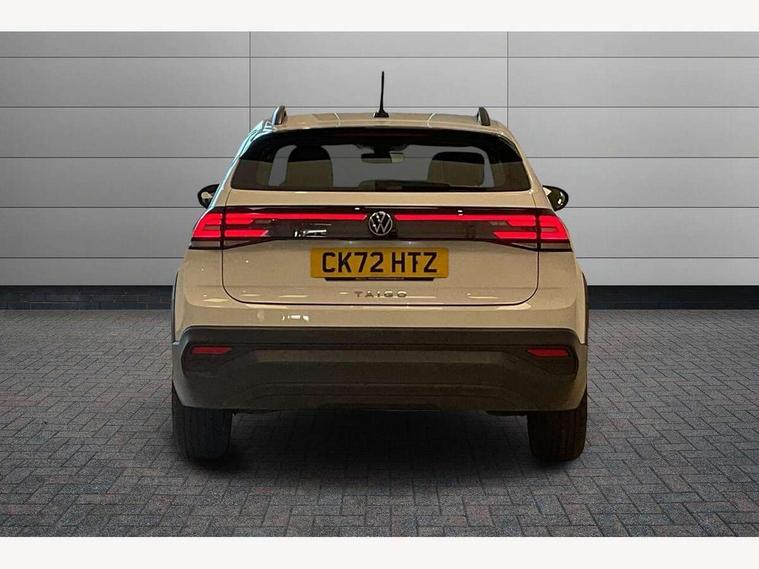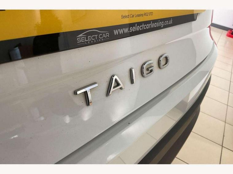 App-Connect including App-Connect Wireless, Driver alert system, e-Call (emergency call), Power Steering, Travel assist including emergency assist, Washer fluid level indicator, Wireless Charging including Bluetooth, Start-stop system with battery regeneration (recuperation - energy recovery during braking), Digital radio reception (DAB+), Diversity antenna for FM reception, WeConnect plus, Ambient lighting with logo projection, Aspherical driver's exterior mirror, Auto headlights, Body coloured bumpers, Body coloured exterior mirror housings and door handles, Electric windows, External USB type C socket and charging sockets, Front fog lamps with cornering function, Headlight range control, Heat insulating glass windscreen, LED headlamps, LED rear combination lamp, LED third brake light, Left convex exterior mirror, Power folding adjustable/heated exterior mirrors and front passenger exterior mirror lowering function, Rear fog light on one side, reversing light on both sides, Rear side wing doors, Rear wash/wipe with intermittent wipe setting, 'Slash/ Austin' Cloth upholstery, 12V socket in centre console, 2 front reading lights, 3 rear head restraints, 3 seat bench in 2nd row, Black carpets, Child seat anchor for child seat system i-Size, 2x top tether and child seat anchor in front on front passenger side, Door and side trim panels in titan black, Driver and front passenger seat height adjustment, Front centre armrest, Handbrake lever handle in leather, Height and reach adjustable steering wheel, Leather trimmed gear knob, Leather wrapped multifunction steering wheel, Luggage compartment floor, Luggage compartment light, Lumbar support for driver's and front passengers seat, Seat covers in titanium black, Single front passenger seat, Split folding backrest with centre armrest and unsplit rear seat bench, Storage compartment under front seats, Sun visors with illuminated vanity mirrors, Chrome Package - Taigo, Drivers assistance pack - Taigo, Light and Sight pack including High beam assist - Taigo, 2 x 3-point seatbelts/outer rear seats with ECE label, 3-point seat belts in front with pretensioner and height adjustment, 3-point seatbelt for centre rear seat, Driver and front passenger airbags with front passenger airbag de-activation, front side and curtain airbags, Driver and front passenger safety-optimised head restraints, Electronic stability control, Extended and predictive pedestrian/ cyclist protection, Front and rear disc brakes, Front curtain and side airbags with center airbag, Hill start assist, Manual rear child locks, Single tone horn, Tyre pressure loss indicator, Anti-theft alarm system with interior monitoring, backup horn, and towing protection, Anti-theft wheel bolts, Lava stone black gloss/matt decorative inserts in dash and front door panels, Low rolling resistance tyres,