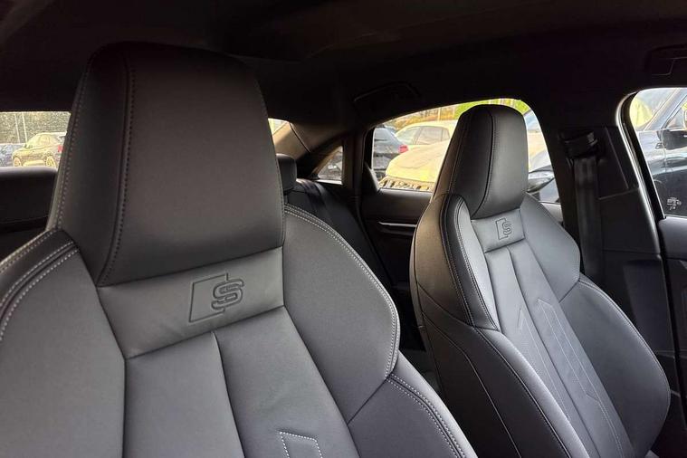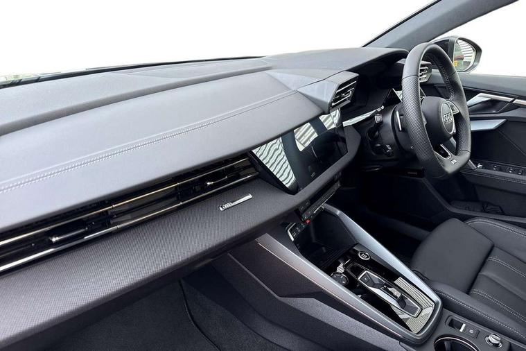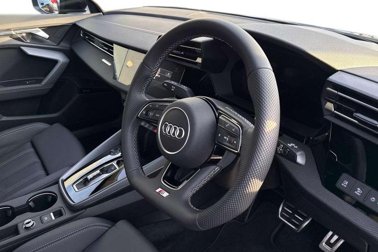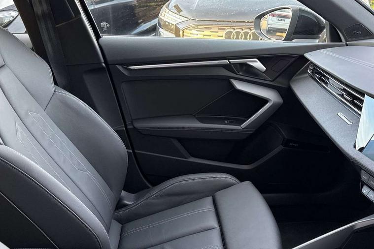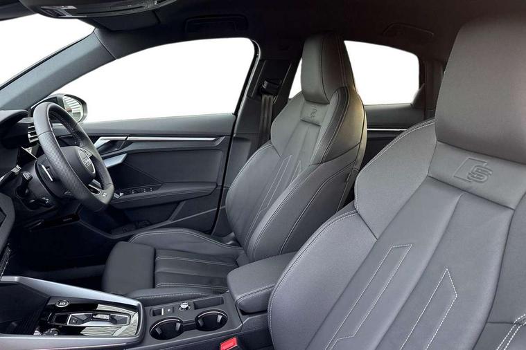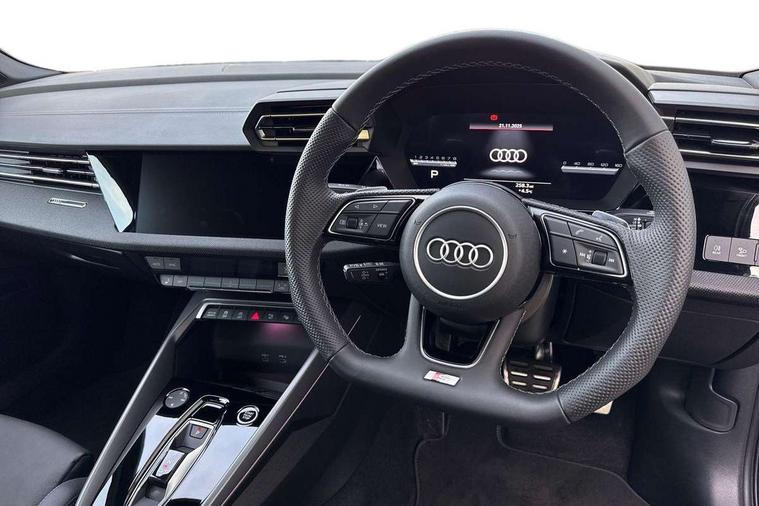 Adjustable speed limiter, Audi drive select, Audi smartphone interface with app store includes wireless Apple carplay, Android auto and Amazon alexa integration, Audi virtual cockpit plus - 12.3" full HD resolution dynamic digital instrument cluster, Automatic start/stop system with recuperation, Bluetooth interface, Camera based traffic sign recognition, Collision avoidance assistant, Cruise control, Distraction and Fatigue warning, e-Call (emergency call), Electromechanical power speed sensitive steering, Emergency assist, Lane departure warning system, MMI Navigation Plus with high resolution 10.1" colour touch screen display, Park Assist with parking system Plus, Service indicator, Trip computer, Voice control system with natural language interaction, Sports suspension, Audi Phonebox light with wireless charging, Audi sound system - 10 loudspeakers including centre loudspeaker and subwoofer, DAB Digital radio, USB ports with charging function in the rear, Acoustic glass windscreen, All weather light, Anthracite grey Audi rings (front and rear), Audi beam uses LEDs to project the Audi logo onto the ground as you exit your A3, Auto dimming frameless rear view mirror, Automatic dynamic range control, Black accents front and rear bumpers, Black accents in the area of the Audi single frame grille, Black accents window trims strips, Dipped beam, main beam, position light and turning light, Electrically adjustable/heated/folding/auto dimming door mirrors with integrated LED indications + kerb view function for passenger side, Exterior model badging, Front and rear side air inlets in grained matt black with dark liquid chrome frame, Front electric windows, Heat insulating glass windscreen, Illuminated door sills with aluminium inserts at the front with S logo, Intersection light, LED 3rd brake light, LED brake lights, LED daytime running x3, LED headlights with LED rear lights and dynamic rear indicators, LED rear number plate lights, LED reverse light, LED tail lights, Light and rain sensors, Manoeuvring light, Motorway light, Privacy glass - dark tinted rear window, rear door and side windows, Rear boot, Rear diffuser and grill in grained matt black with inlay in dark liquid chrome, Rear electric windows, Rear side wing doors, Static Cornering lights, 12V socket and storage compartment in front centre console, 3 seat bench in 2nd row, 3 spoke flat bottomed leather multifunction sport steering wheel with gear shift paddles, 3-zone deluxe automatic air conditioning, 4 way electrically adjustable lumbar support for driver and front passenger, 40/20/40 split folding rear seat bench, Black cloth headlining, Black front and rear floor mats, Front and rear centre armrest in artificial leather with contrasting stitching on armrests and instrument panel, Front and rear headrests, Heated front seats, Height and reach adjustable steering wheel, Manual boot compartment lid, Manually adjustable front seats, Rear centre armrest with cupholder, S badging on the steering wheel, Seat side bolsters, Single front passenger seat, Stainless steel pedals and front footrest in black, Twin leather upholstery with front sports seats S embossed logo, Aluminium interior elements pack - A3, 3x3 point rear seat belts, Driver and front passenger airbag with passenger airbag deactivation, Electronic Stabilisation Control (ESC) including ABS, ASR and EDL, First aid kit with warning triangle and 2 safety vests, Front side airbags with head airbags and interaction airbag, Hill hold assist, Pre-sense front with pedestrian and cyclist detection, Seatbelt monitoring, Tyre pressure loss indicator, Anti theft alarm, Anti-theft wheel bolts, Electronically operated child locks, Immobiliser, Remote central locking with safelock, Black dashboard,
