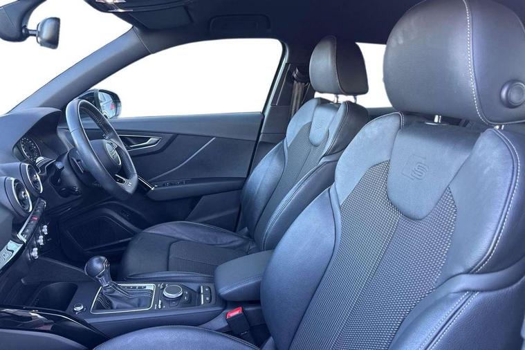 Audi drive select, Audi smartphone interface, Automatic start/stop system with recuperation, Bluetooth interface includes bluetooth audio streaming, Cruise control, MMI - Multi Media Interface control system, MMI SD card integrated nav with 3D map display, dynamic route guidance with TMC, MMI search, natural voice recognition and myAudi special destinations, Power operated tailgate, Progressive steering, Service interval indicator, Dynamic suspension, 2 x SDXC card reader, Audi music interface - apple iPod, apple iPhone, USB storage media, compatible MP3 players, 2 x USB charging points and 1 x Aux-in, CD Drive, DAB digital radio and AM/FM radio, MMI radio plus with 7" colour MMI screen and MMI controller, Black window trims, Bumper in full body colour paint finish, Chrome exhaust tailpipe, Electrically adjustable and heated door mirrors with integrated LED side indicators, Front and rear electric windows, Front underbody guard and rear diffuser trim in selenite silver, Front windscreen with grey tinted sunband, Headlight washers, Interior mirror, LED headlights with LED rear lights + dynamic rear indicators, LED indicator lights, Manual folding door mirrors, Privacy glass - dark tinted rear and rear side windows from B-pillar backwards, Rain and light sensors, Rear wiper, S Line body styling - front and rear bumpers, side skirts, radiator grille, rear diffuser insert and front air intakes, 3 spoke flat bottomed high multi-function leather sport steering wheel with gearshift paddles, 60/40 split folding rear seat bench, Black cloth headlining, Floor mats with contrast stitching, Front centre armrest, Front headrests, Front sport seats with S embossed logo, Height/reach adjust steering wheel, Illuminated door sill trims with S logo, ISOFIX child seat mounting for front passenger with airbag deactivation and outer rear seat including top tether attachment point for outer rear seats, Manual seat adjustment including seat height adjustment for front seats, Stainless steel pedals, Storage compartments - Glovebox, cupholder compartment in centre console, storage compartment in rear centre console, front and rear door pockets, Three rear headrests, Black styling pack - Q2, LED interior lighting pack - Q2, Non smoking pack - Q2, 3x3 point rear seatbelts, 6 airbags - Front, curtain and front side airbags, Electromechanical parking brake, Electronic stabilisation control including ABS, ASR and EDL, Extended and proactive pedestrian protection, Hill hold assist, Multi collision brake assist, Pre-sense front with pedestrian recognition, Seatbelt monitoring, Tyre pressure warning light, Warning triangle and first aid kit, Anti theft alarm, Anti theft wheel bolts, Central locking system with remote control key, Electronically operated child locks, Aluminium interior element, Black inlays - decorative trims in black for centre console and front and rear door pull handles,